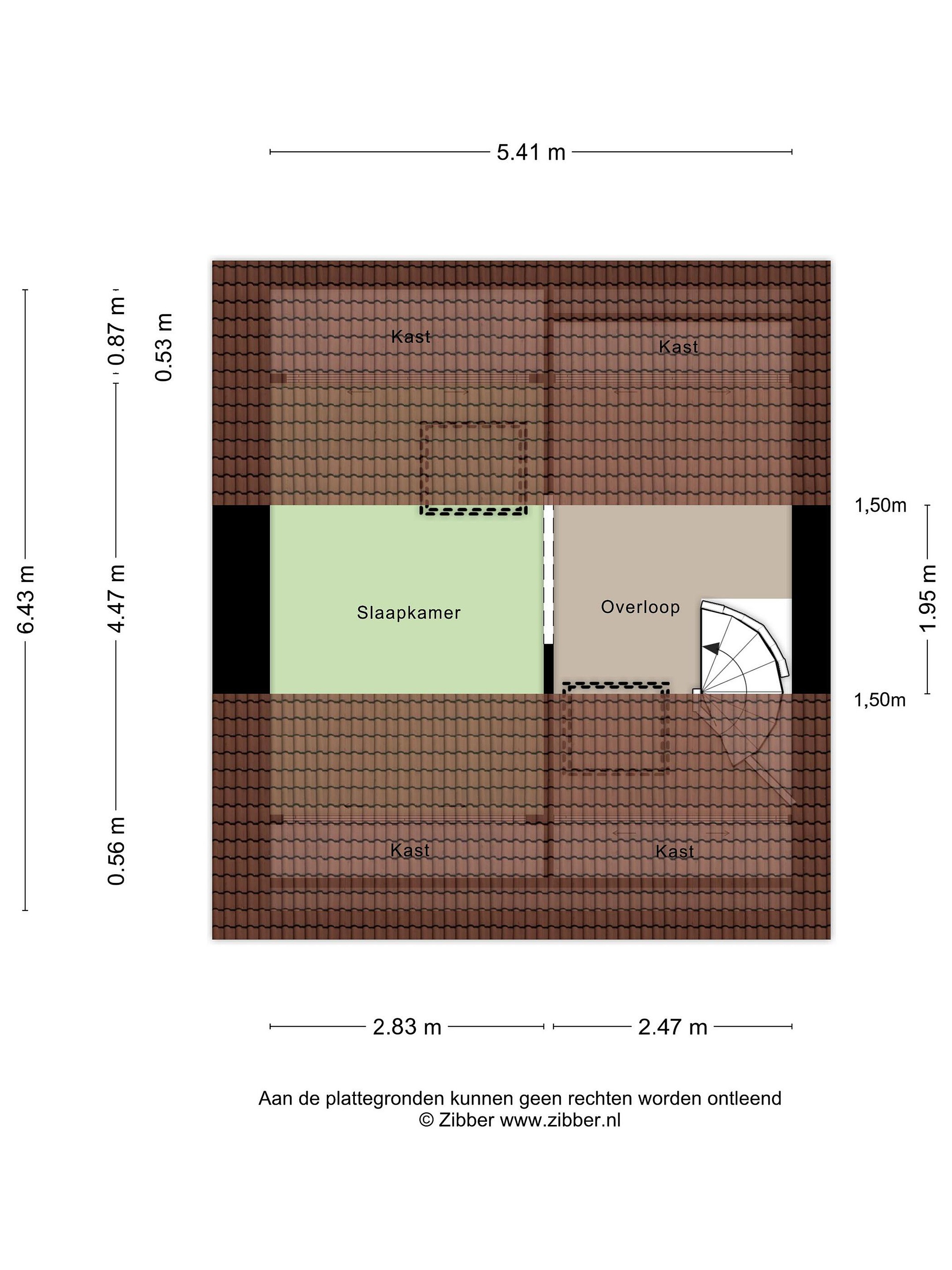 Omdat er 2,7 m2 in plaats van minimaal 4 m2 boven de 2 meter hoogte aanwezig is, is deze etage niet meegenomen in de gebruiksoppervlakte wonen.