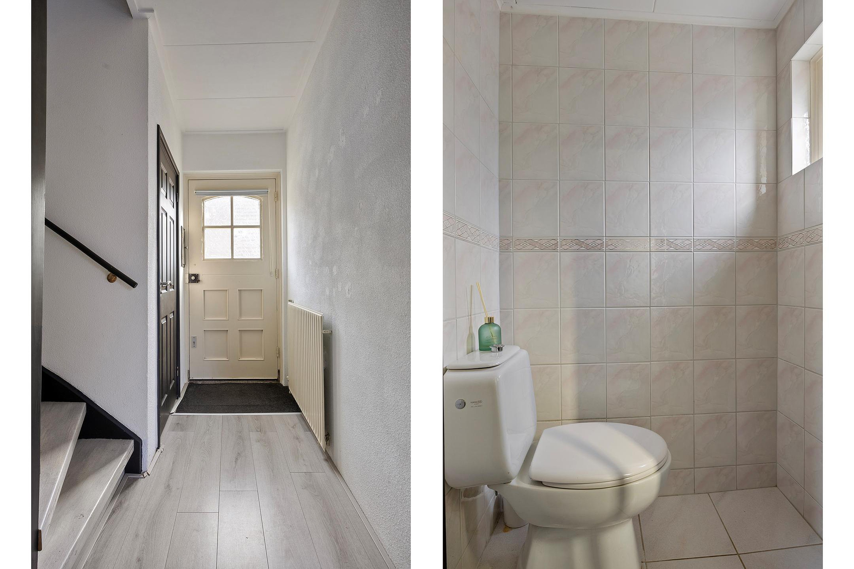 Aan de voorzijde valt direct de breedte van deze woning op. Dat is dan ook het voordeel van deze bouw: met wat meer breedte heb je wat minder diepte nodig, waardoor het heerlijk licht is in de woning. De hal geeft toegang tot het toilet, de trapopgang naar de verdieping, de trapkast en de woonkamer. De woonkamer is heerlijk licht met zowel aan de voor- als achterzijde grote raampartijen. Een ruime doorgang geeft toegang tot de moderne lichte keuken, voorzien van een