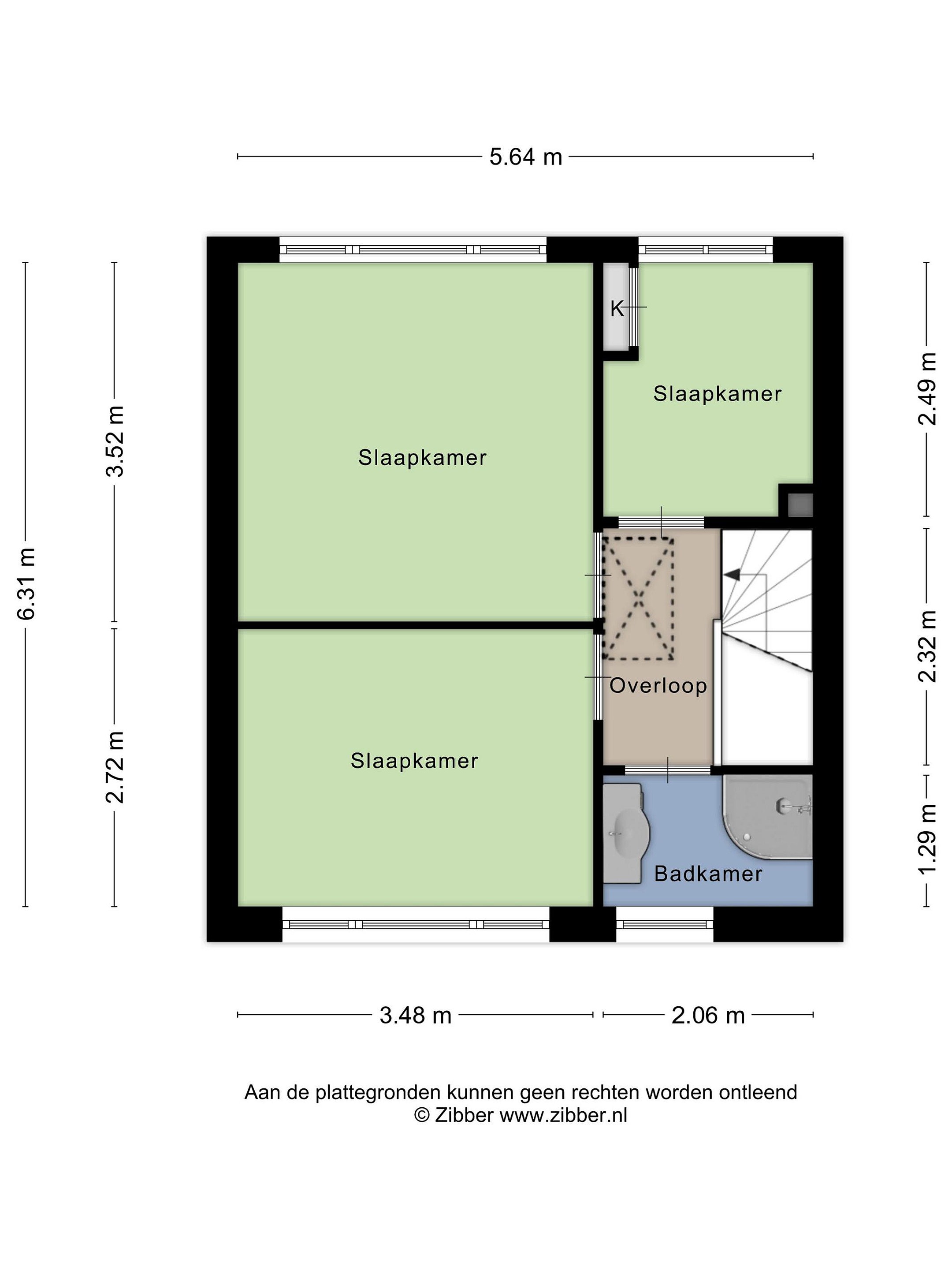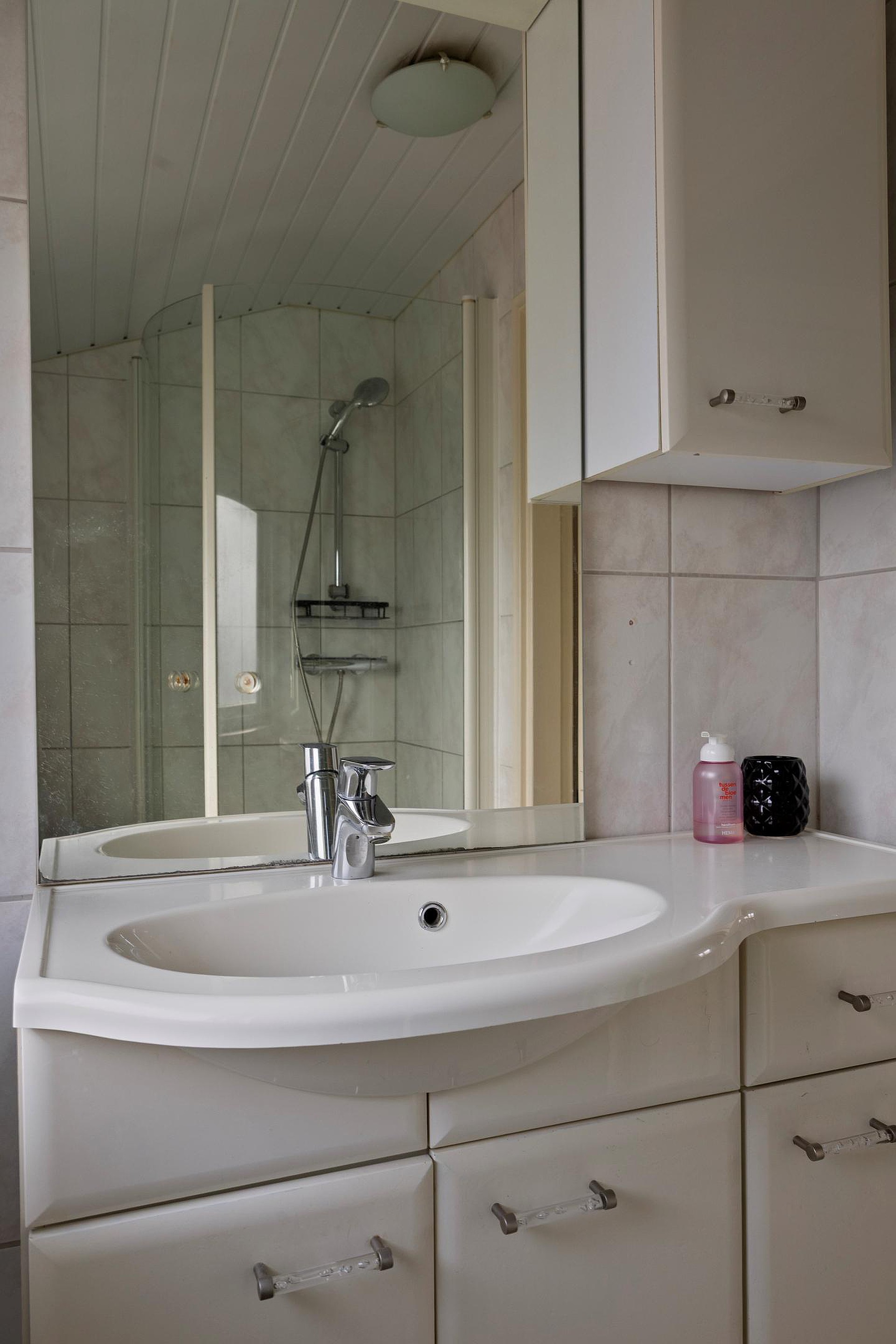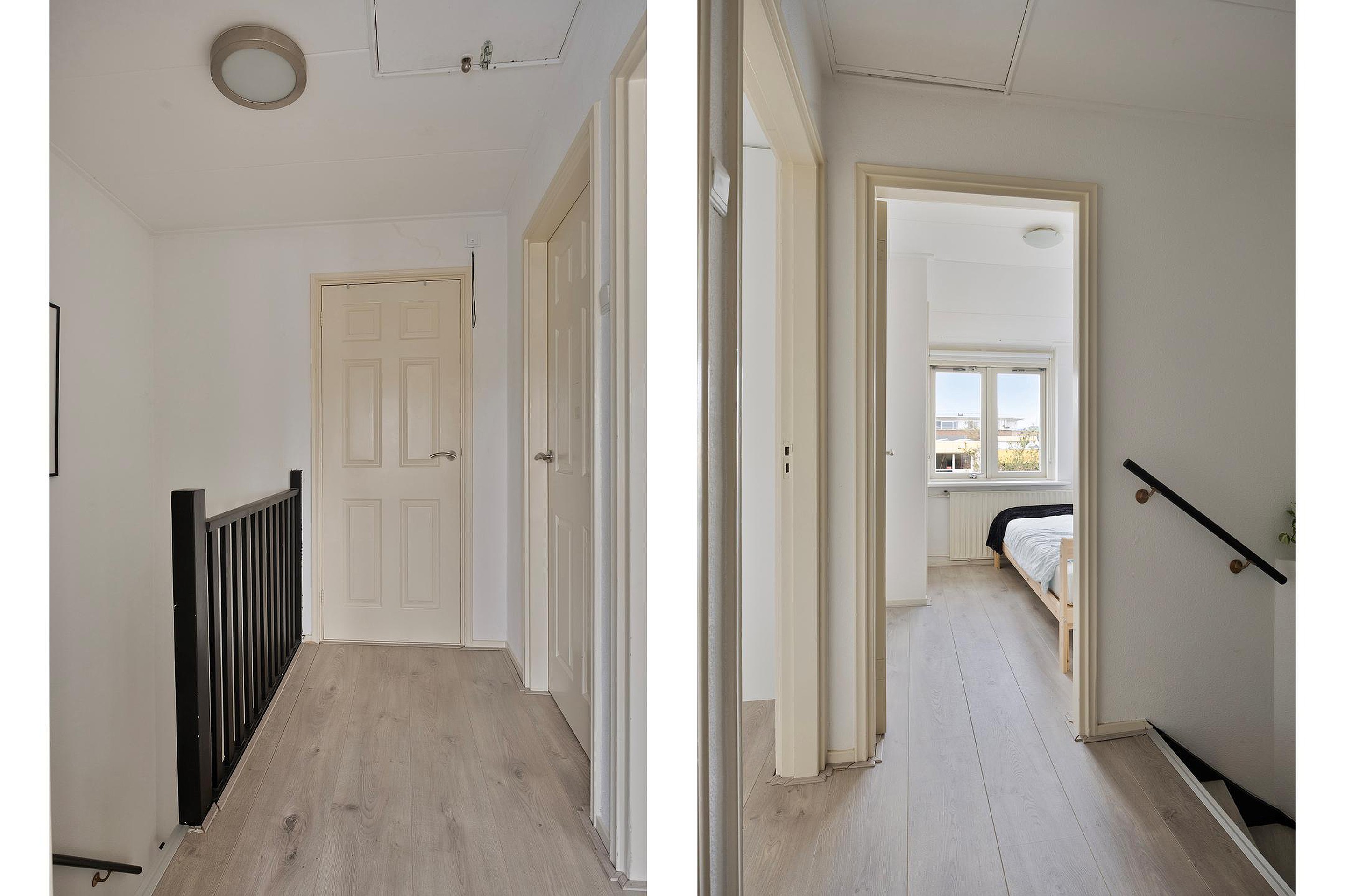 De overloop geeft toegang tot de 3 slaapkamers en de badkamer. Twee slaapkamers zijn gesitueerd aan de achterzijde van de woning. De derde slaapkamer en de badkamer zijn gelegen aan de voorzijde van de woning. De lichte badkamer is voorzien van een douchecabine, een wastafelmeubel en designradiator. Vanuit de overloop kunt u middels een vlizotrap de bergzolder bereiken.