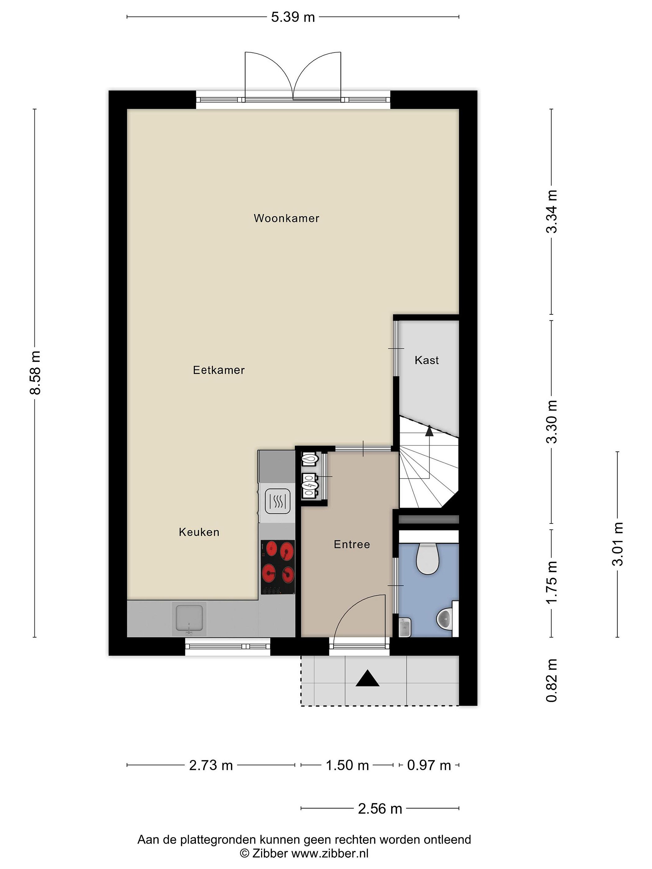 Na de verzorgde voorzijde volgt de entree van de woning. De hal is voorzien van een meterkast, moderne toiletruimte met wandcloset, fonteintje en urinoir en de trap naar de eerste verdieping. Daarna volgt de woonkamer met luxe open keuken. De moderne keuken is gesitueerd aan de voorzijde en is uitgerust met de volgende inbouwapparatuur: inductiekookplaat, afzuigkap, combi-oven, koel-vriescombinatie en Quooker.