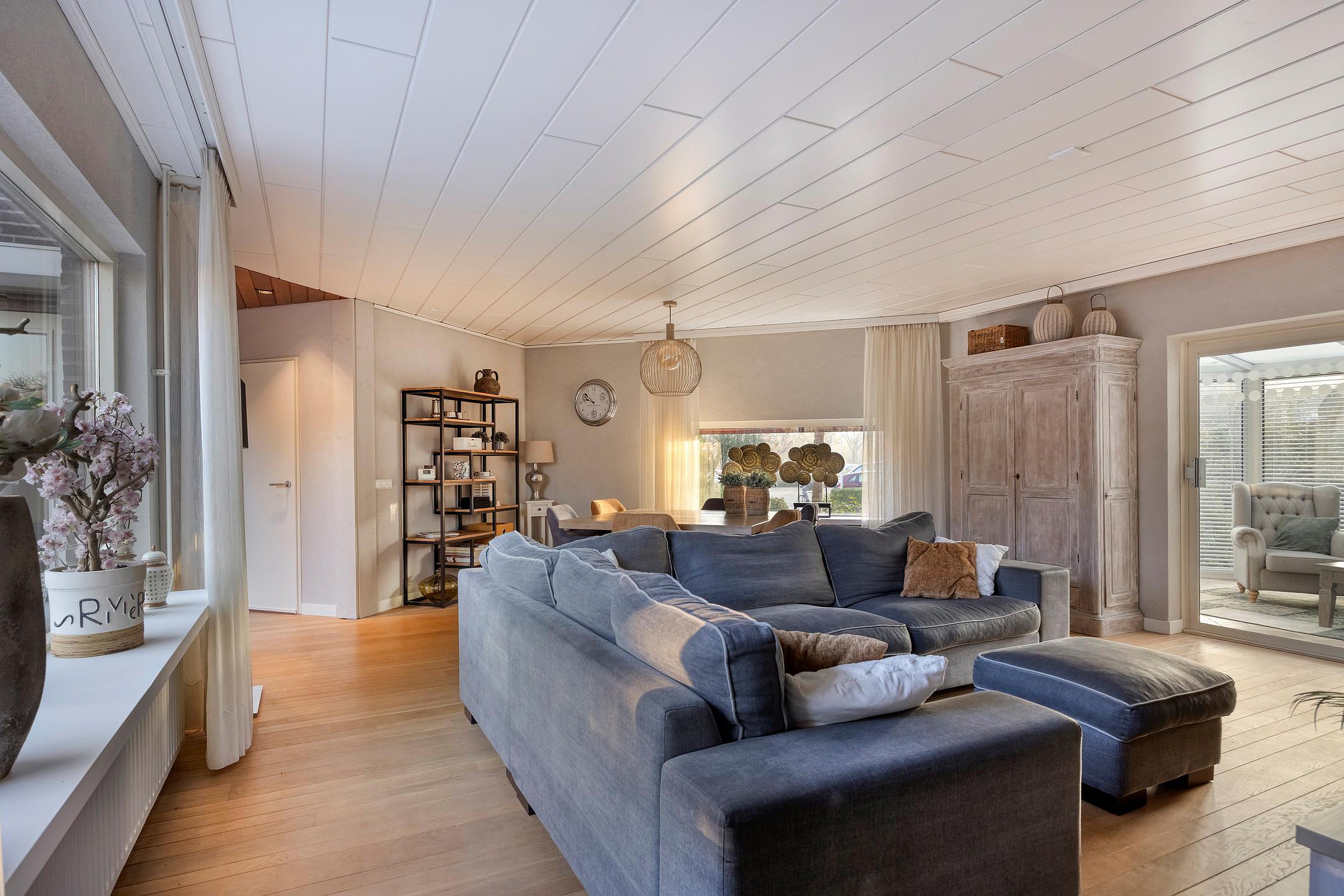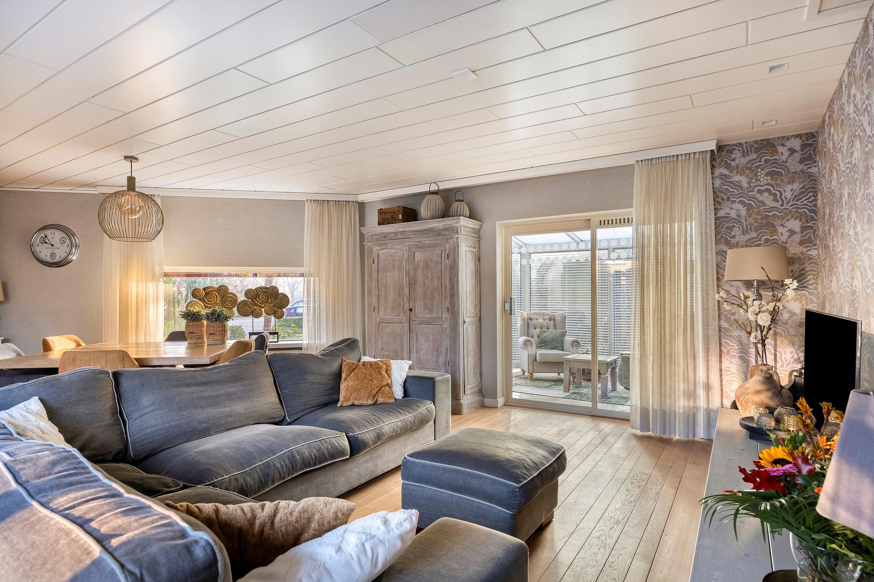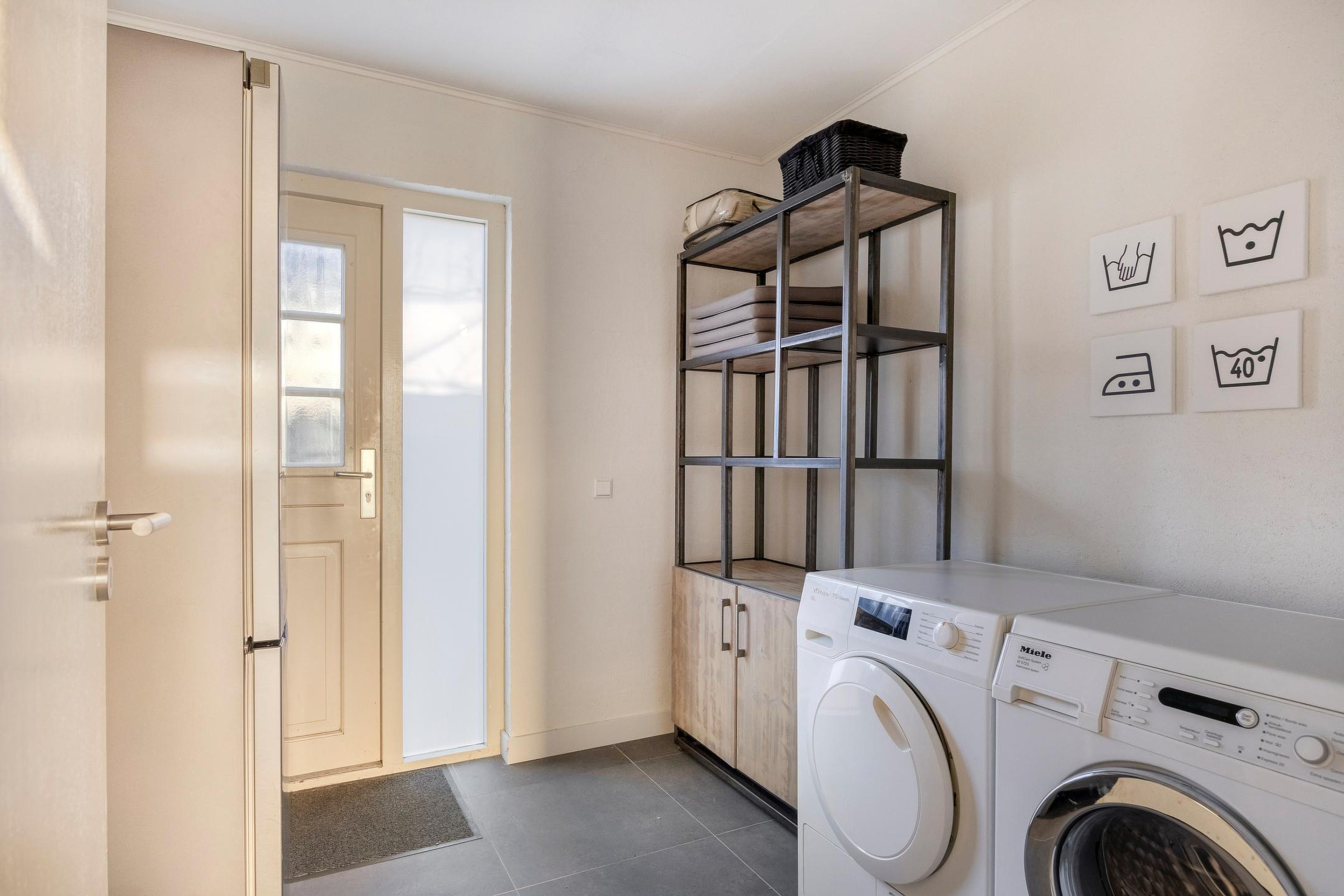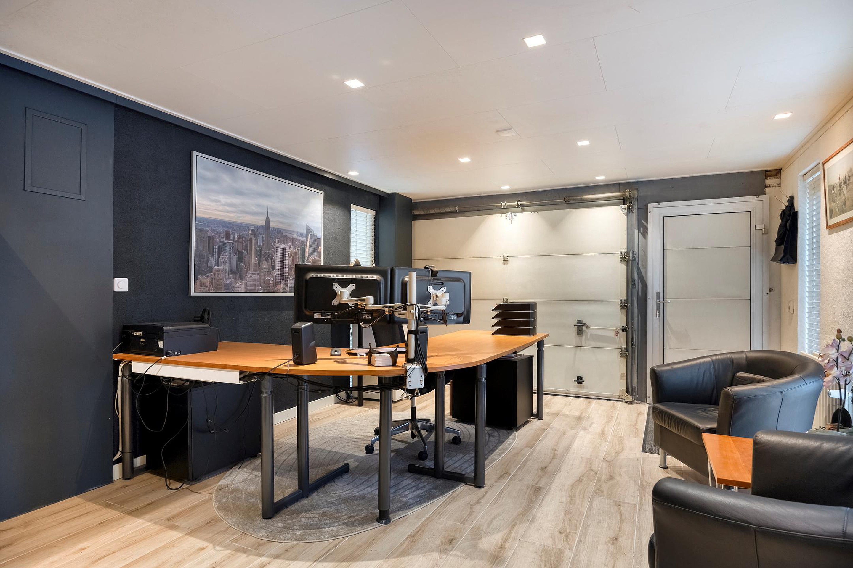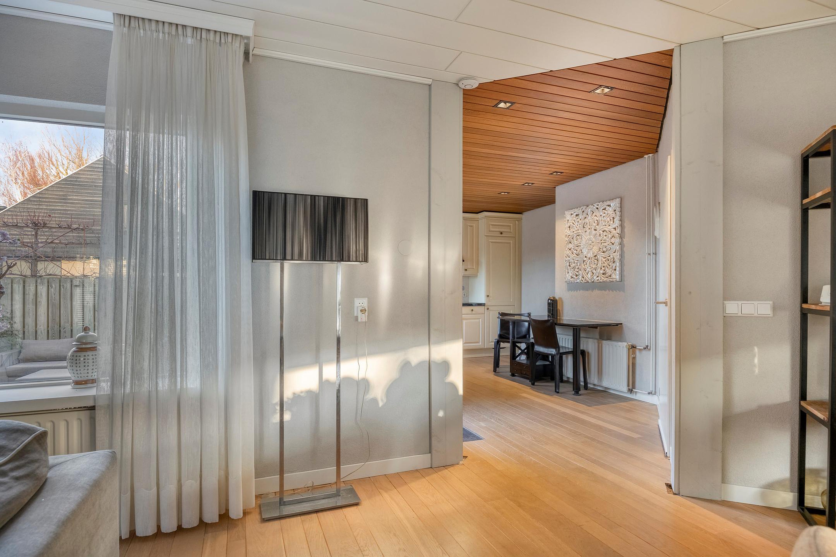 Via de voortuin bereikt u de voordeur die toegang biedt tot een speels gevormde entree. Vanuit de entree heeft u toegang tot de meterkast (9 groepen en 2 a.l.s.), de berging/wasruimte en de keuken. De halfopen keuken is voorzien van diverse inbouwapparatuur (elektrische kookplaat, afzuigkap, koelkast, vaatwasser en combi-magnetron) en biedt toegang tot de achtertuin. De woonkamer heeft veel ramen die zorgen voor een mooie lichtinval. Een schuifpui geeft toegang tot de serrekamer met vloerverwarming. Vanuit de woonkamer heeft u via een gang toegang tot het luxe toilet met wandcloset (2024) en de kantoorruimte. Deze heeft een eigen entree.