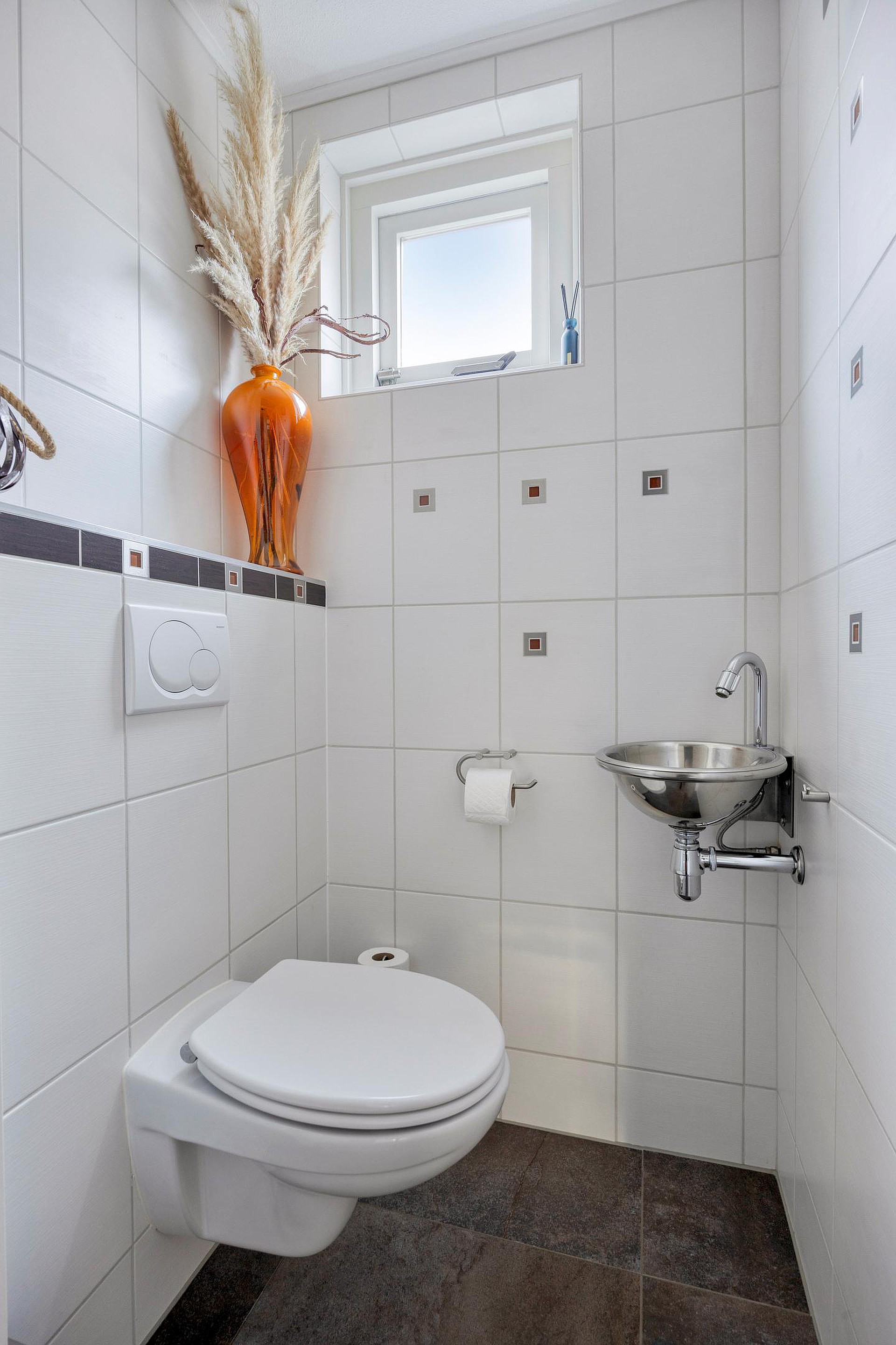 Afgescheiden door een lage wand is hier in 2020 de tweede badkamer gerealiseerd.