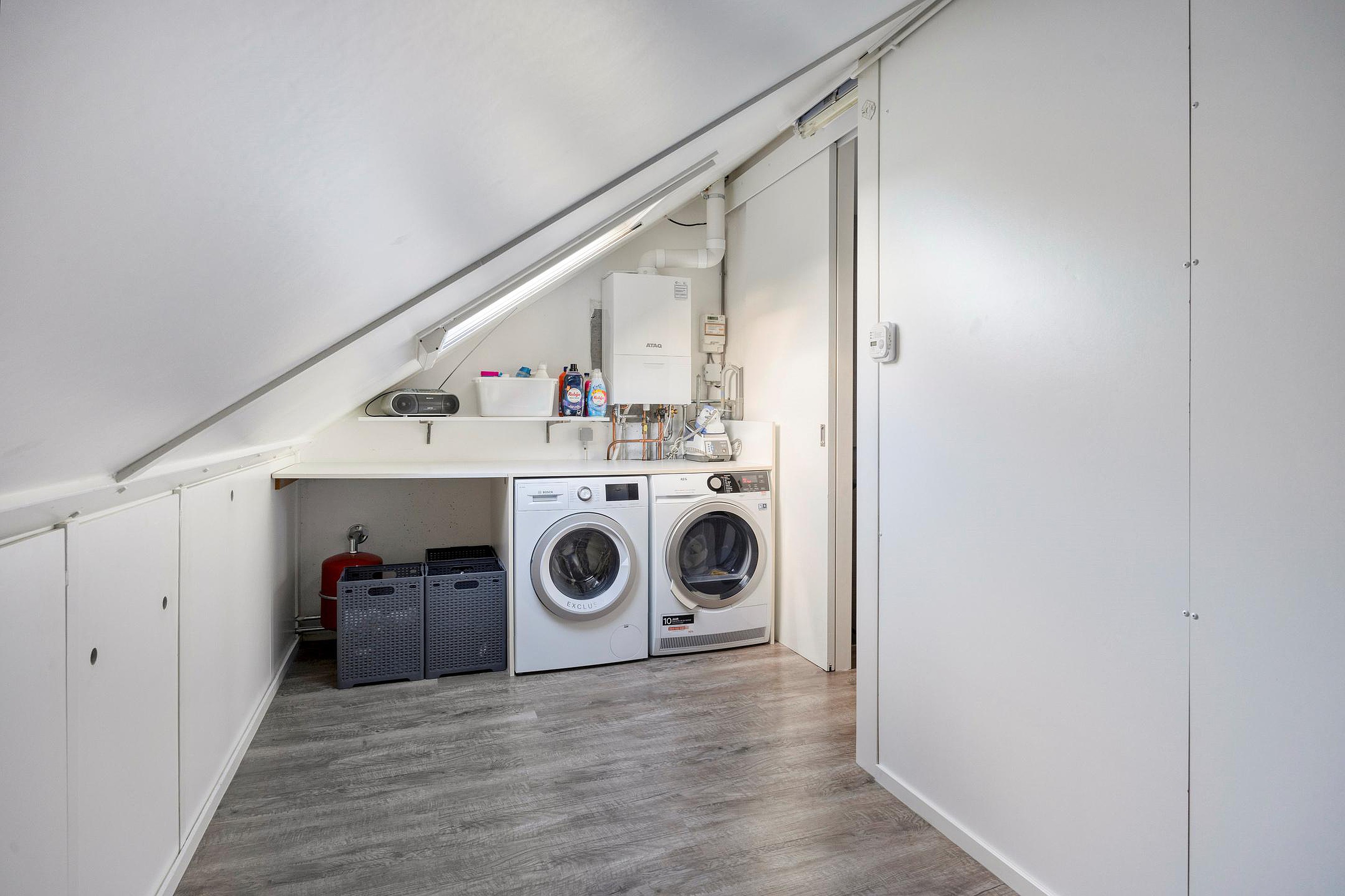 Hier vindt u ook de opstelplaats voor de wasmachine en droger en de HR-combiketel (Atag 2025).