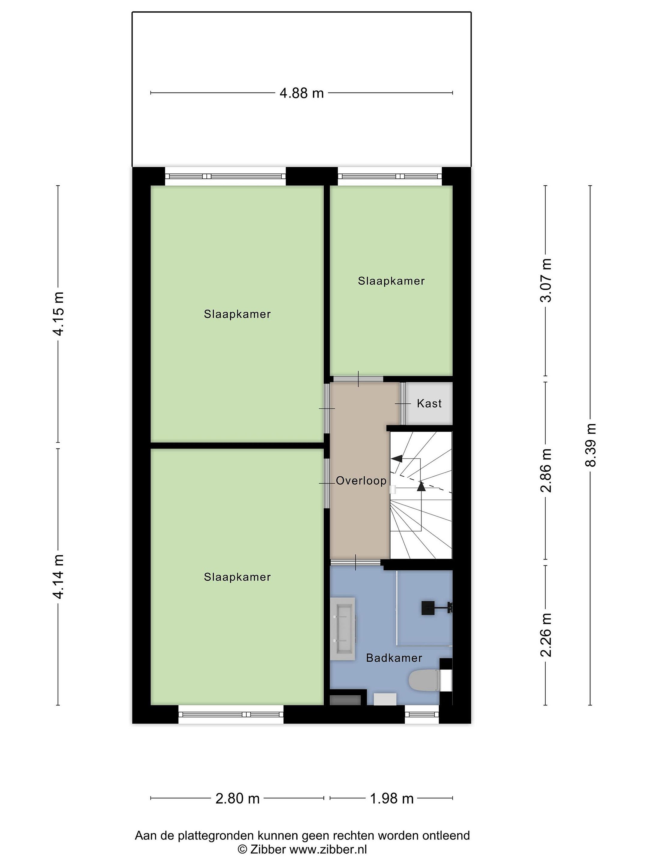 Op deze etage kunt u goed merken dat de doorgetrokken voorgevel veel extra ruimte geeft.