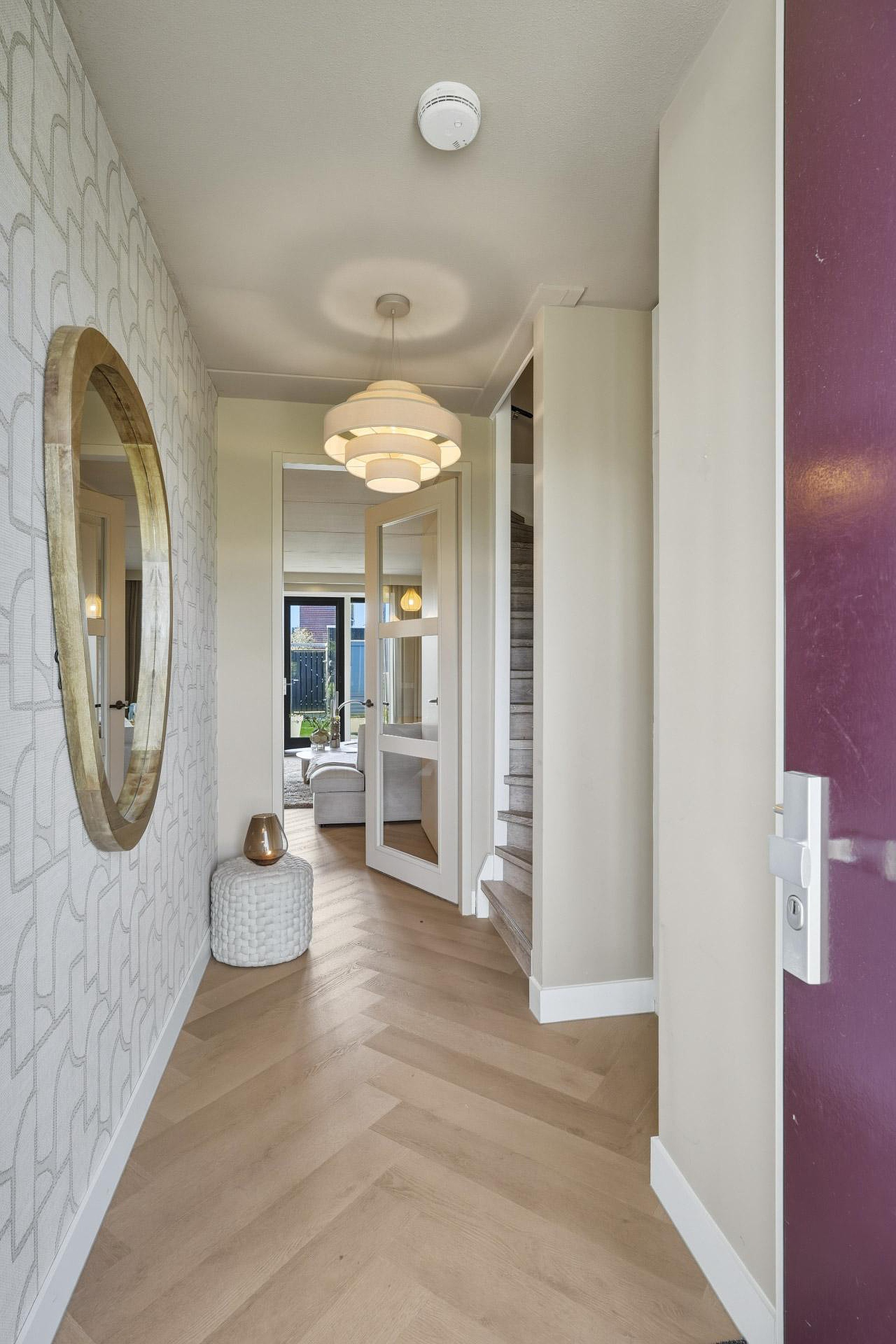 Bij binnenkomst betreedt u de hal, waar zich het toilet en de trapopgang met trapkast bevinden.