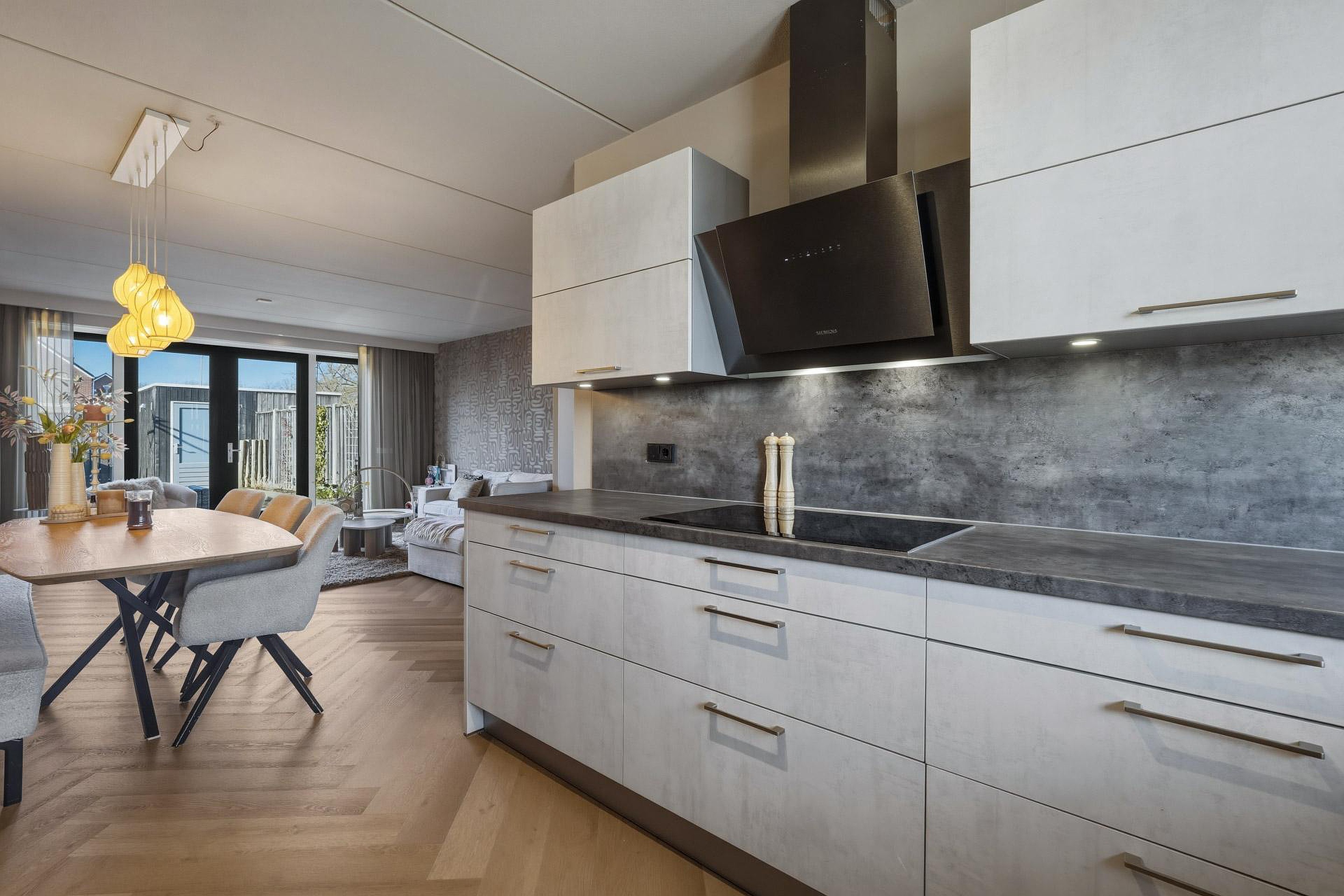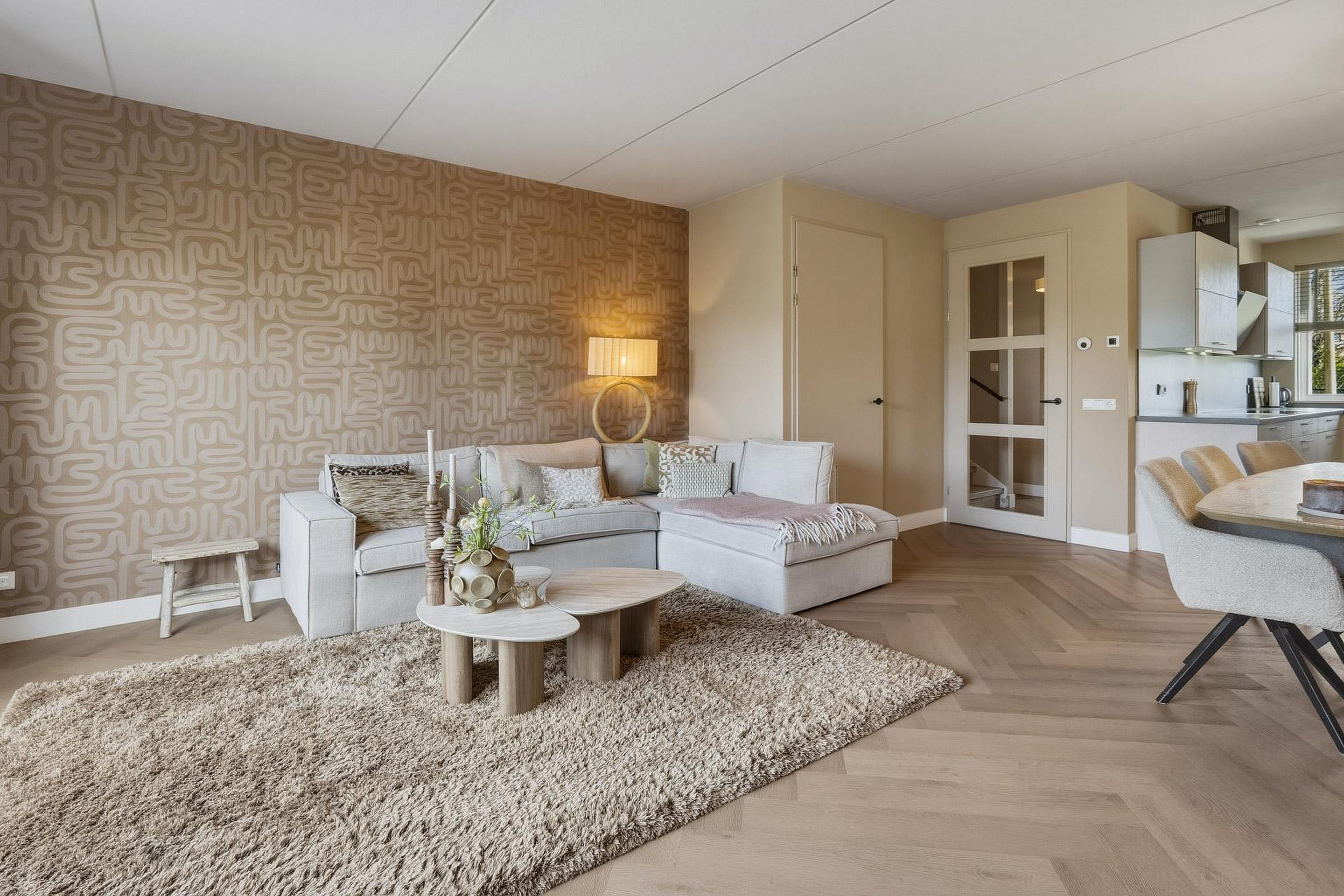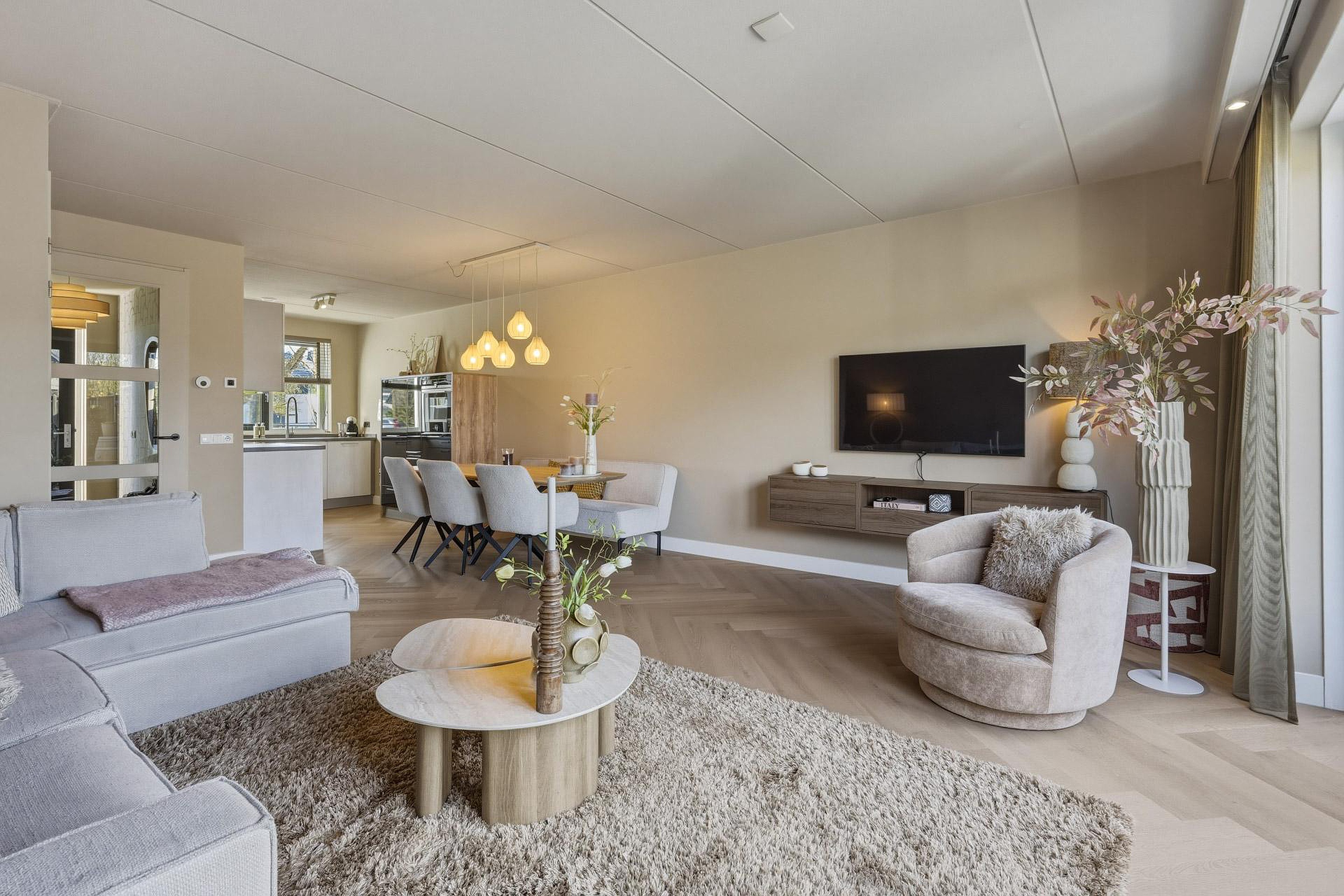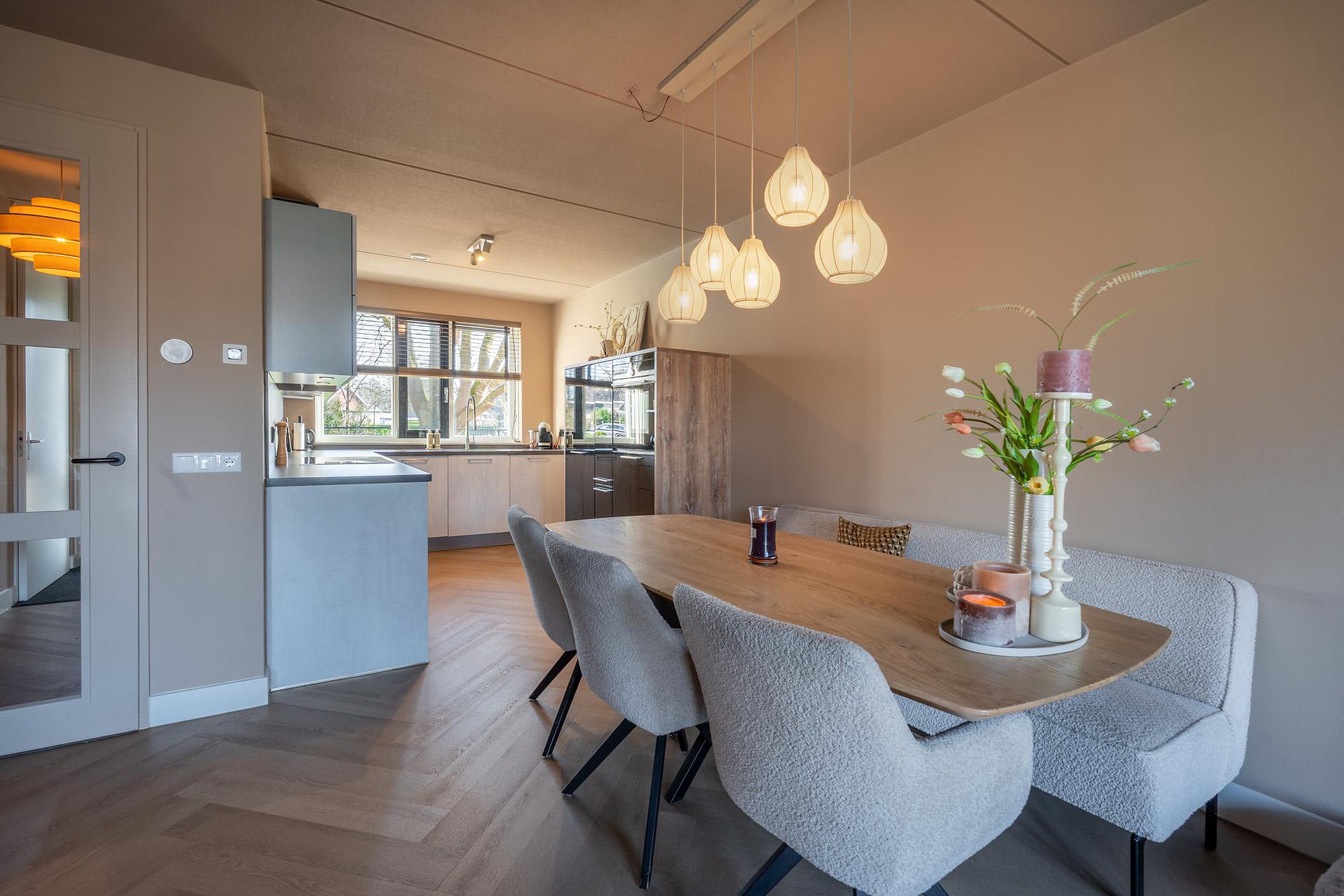 Vanuit de hal bereikt u de tijdloze en goed onderhouden keuken voorzien van diverse inbouwapparatuur. Vanuit de keuken is de woonkamer te bereiken, welke voorzien is van veel natuurlijke lichtinval.