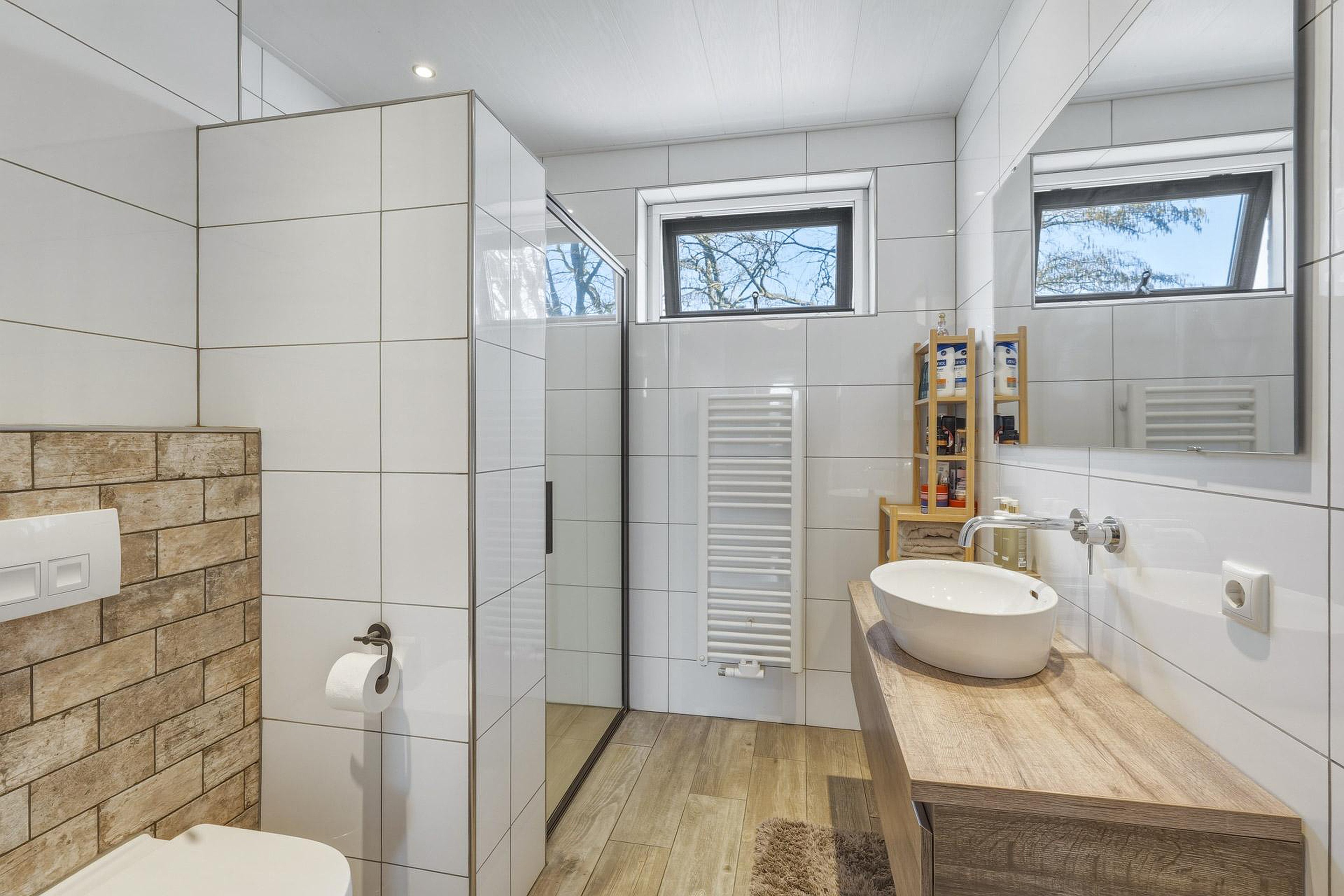 Middels de vaste trap bereikt u de overloop welke toegang biedt tot drie slaapkamers, een wasruimte en de badkamer. De badkamer is voorzien van o.a. inloopdouche, wandcloset en wastafelmeubel.