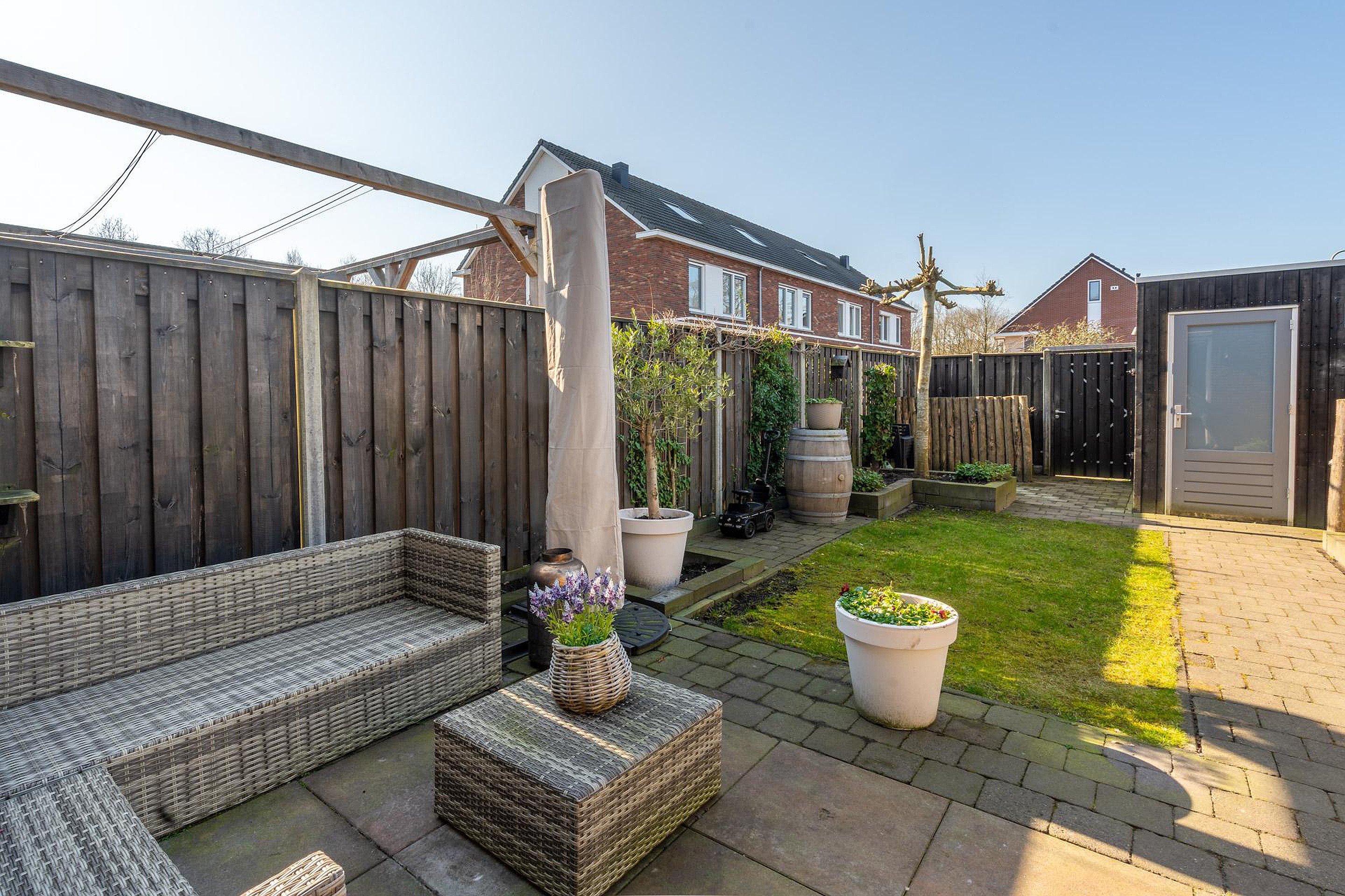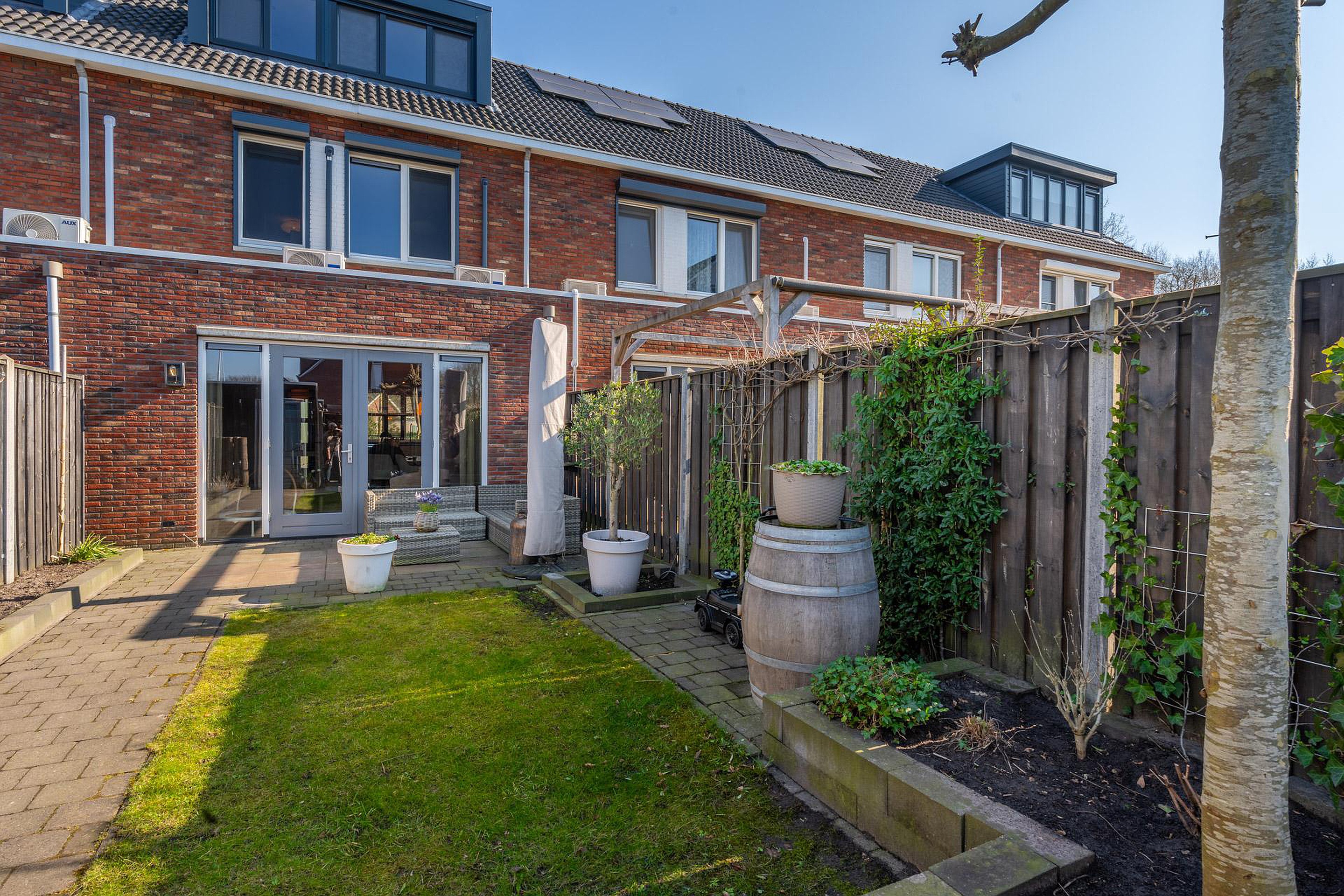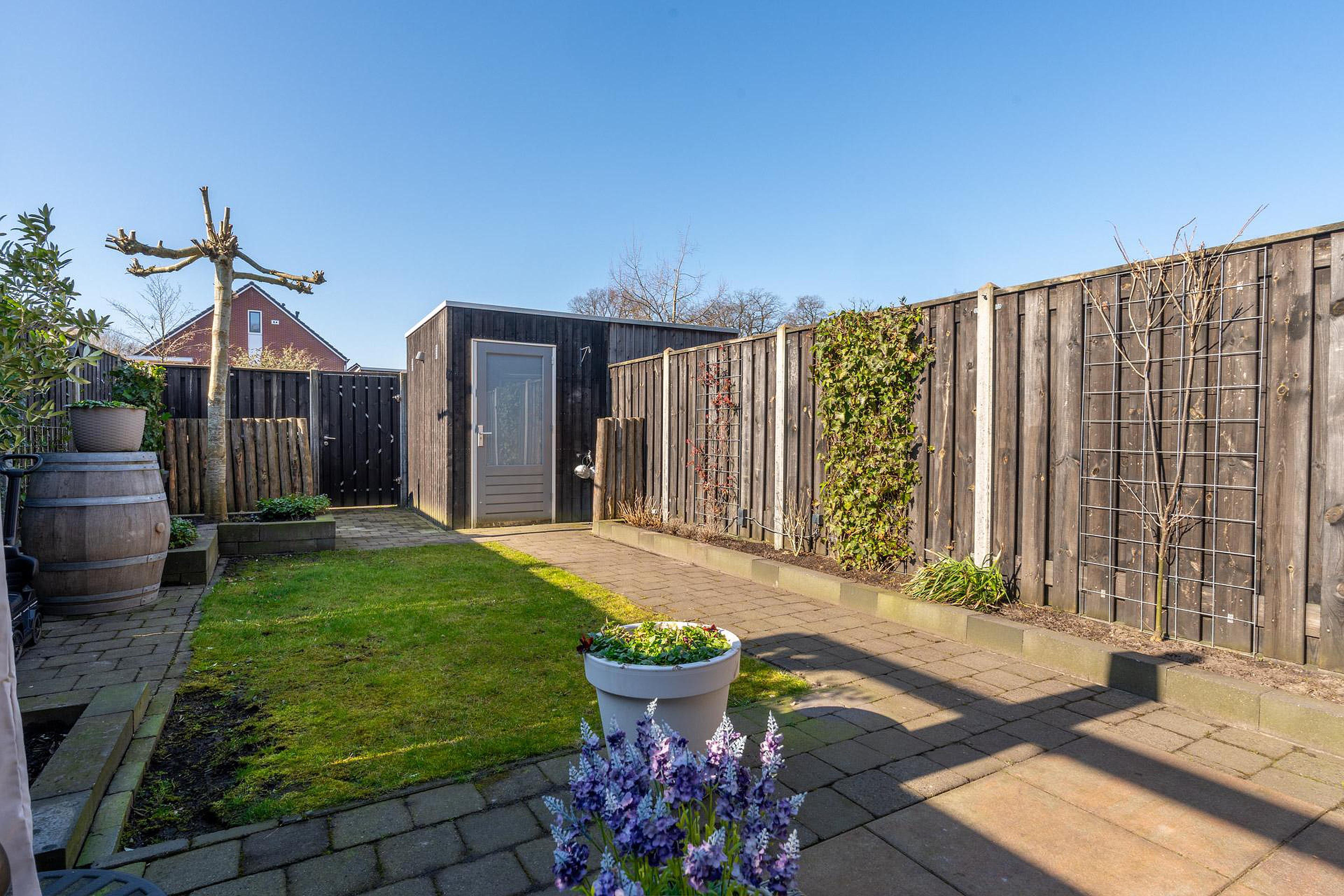 De onderhoudsvriendelijke achtertuin is gelegen op het zuidwesten en beschikt over diverse terrasmogelijkheden. De tuin is deels aangelegd met terrastegels en deels voorzien van perkjes.