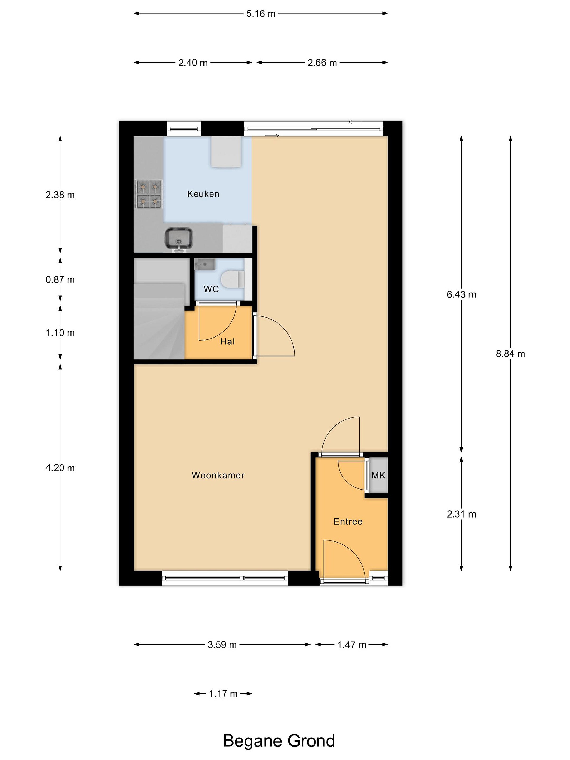 - Begane grond heeft vloerverwarming met plavuizen