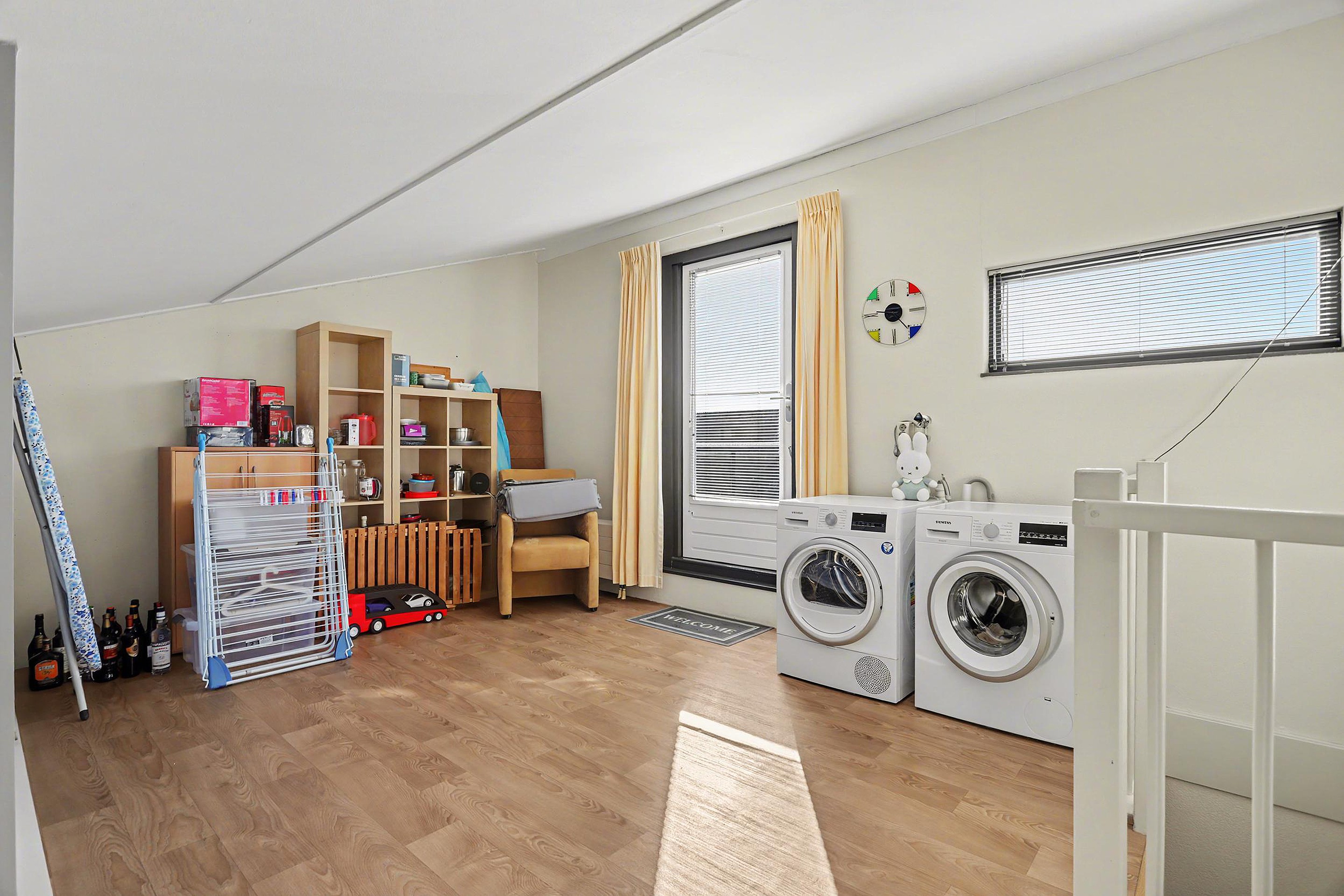 Tweede verdieping Ruime zolderverdieping (ca. 3,3x5,1m) met opstelplaats van de wasmachine, droger, cv-combiketel en mechanische ventilatie. Het is mogelijk om hier een 4e slaapkamer te maken en een dakkapel te plaatsen. Via een deur toegang naar het ruime dakterras (ca. 4,2x5,2m) aan de voorzijde.