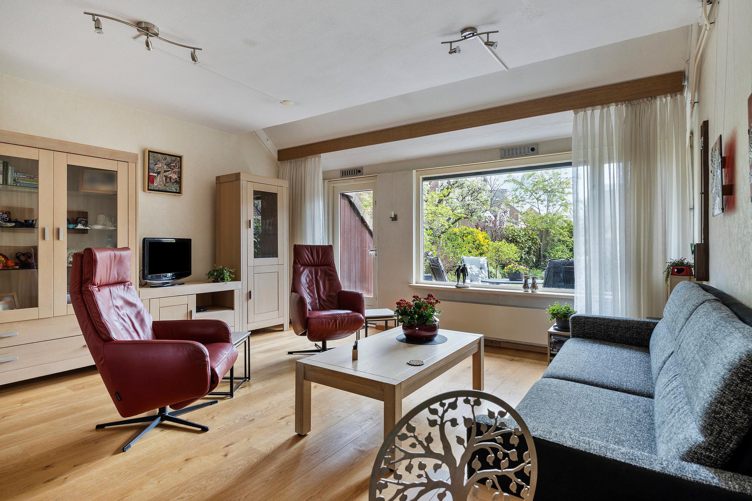 * De woning is aan de achterzijde op de begane grond voorzien van een uitvalscherm en een screen;