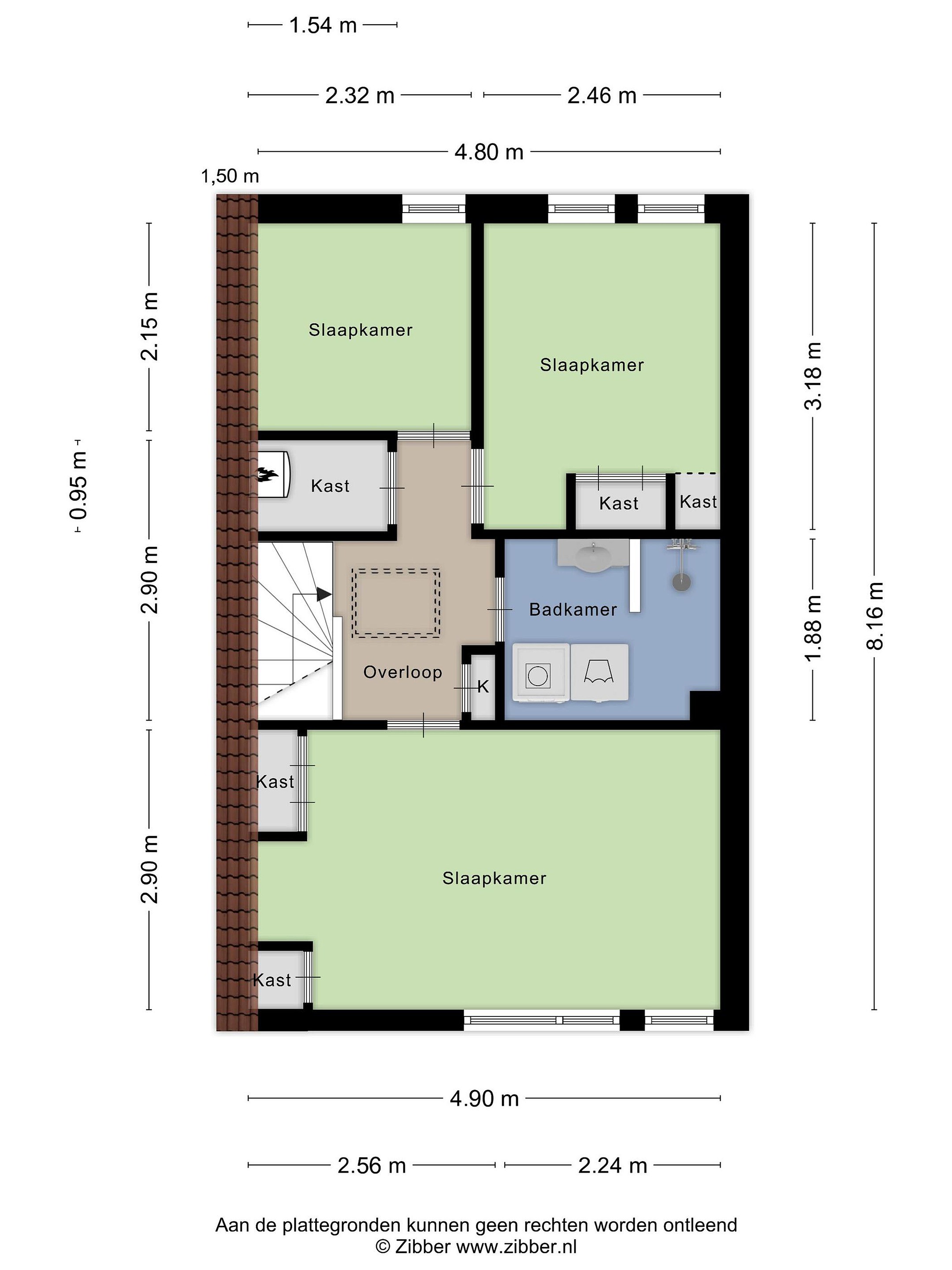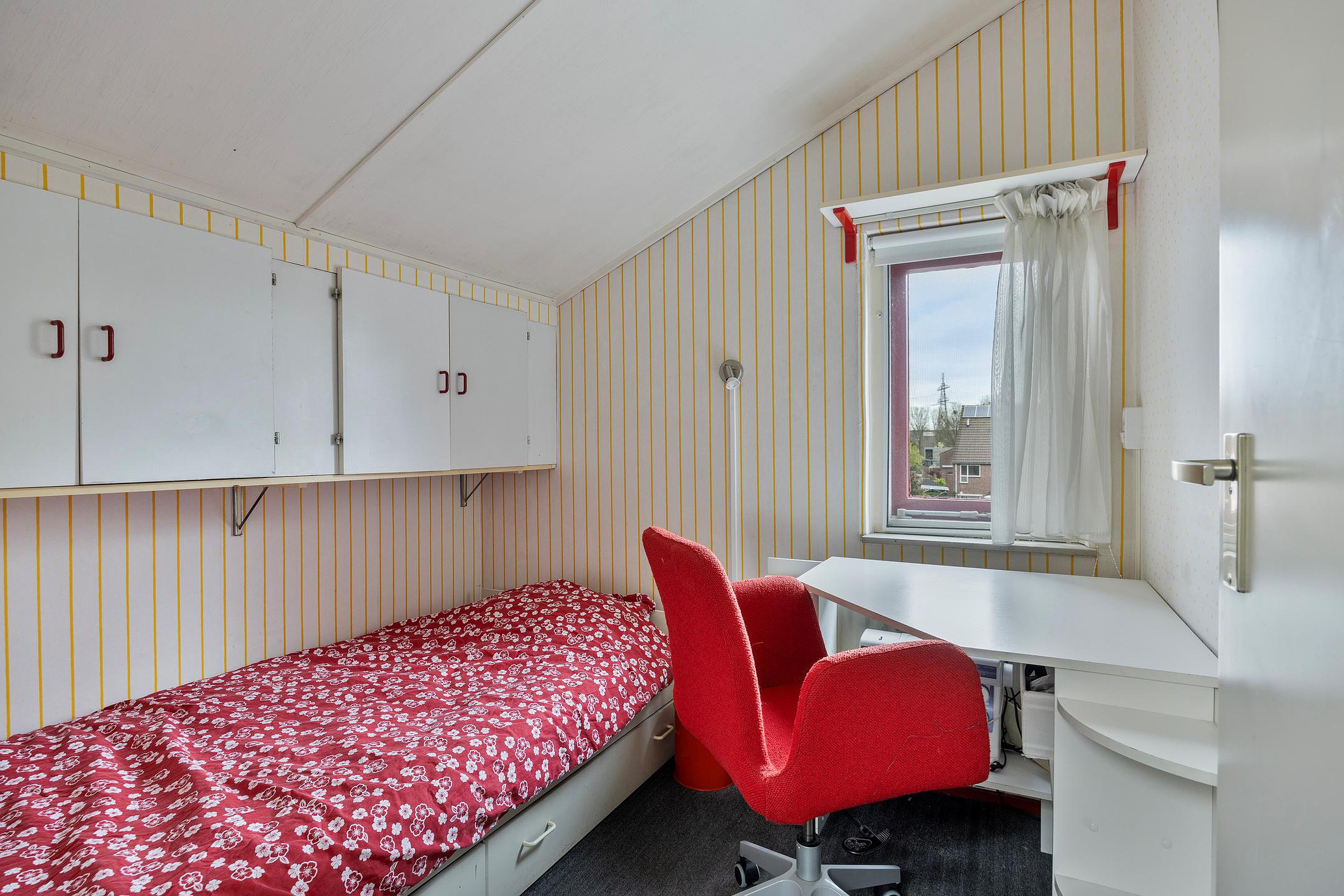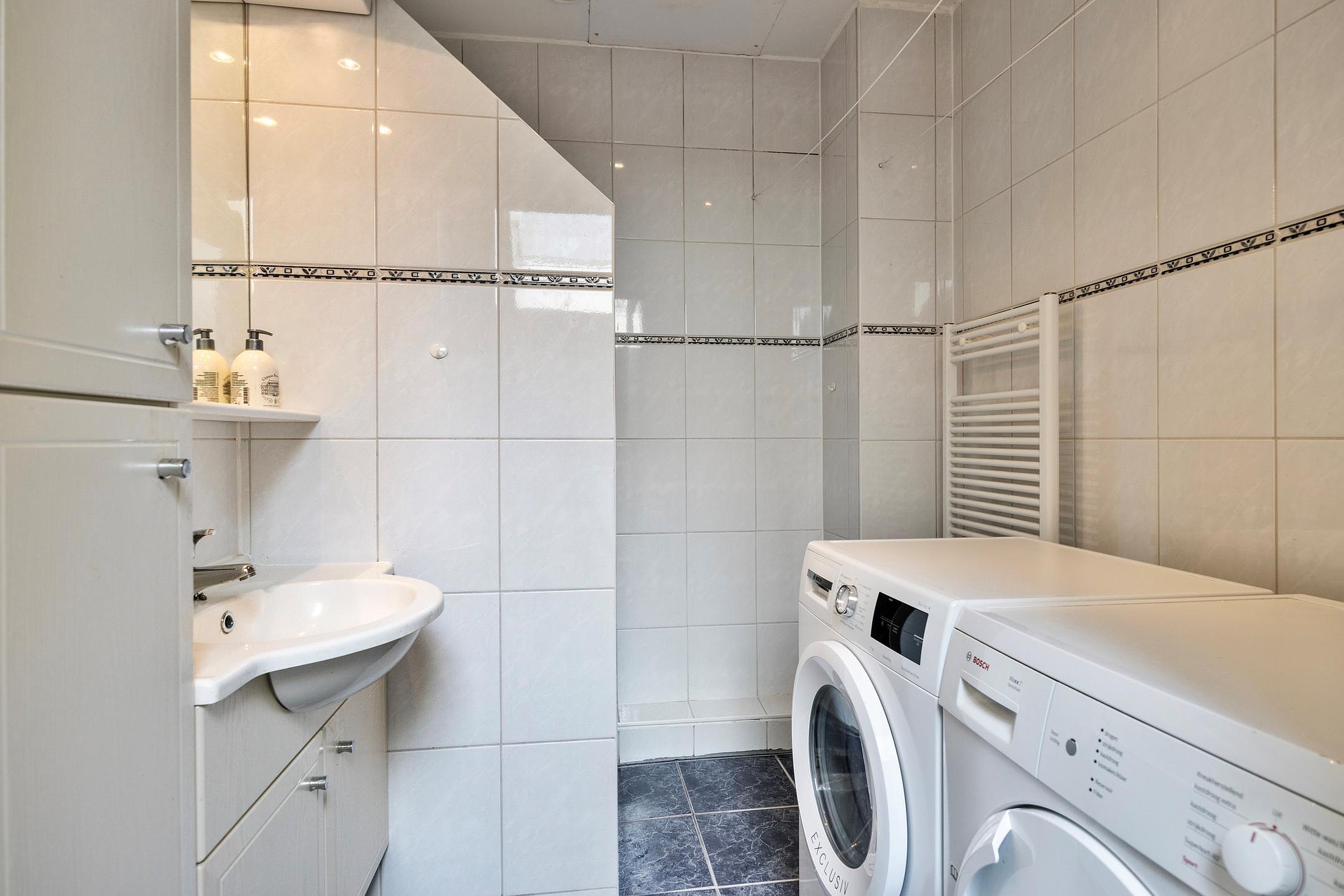Via de overloop heeft u toegang tot maar liefst nog drie slaapkamers, een tweede badkamer en een technische ruimte met HR combi ketel (Remeha 2020) en de slimme MV-unit (2022). Twee slaapkamers zijn gelegen aan de achterzijde van de woning, waarvan één kamer is voorzien van een vaste kast en een lichte vliering. Aan de voorzijde ligt de grootste slaapkamer. Deze is voorzien van twee vaste kasten. De badkamer (2002) is geheel betegeld en voorzien van een douchecabine, wastafelmeubel en opstelplaats voor de wasmachine en wasdroger.