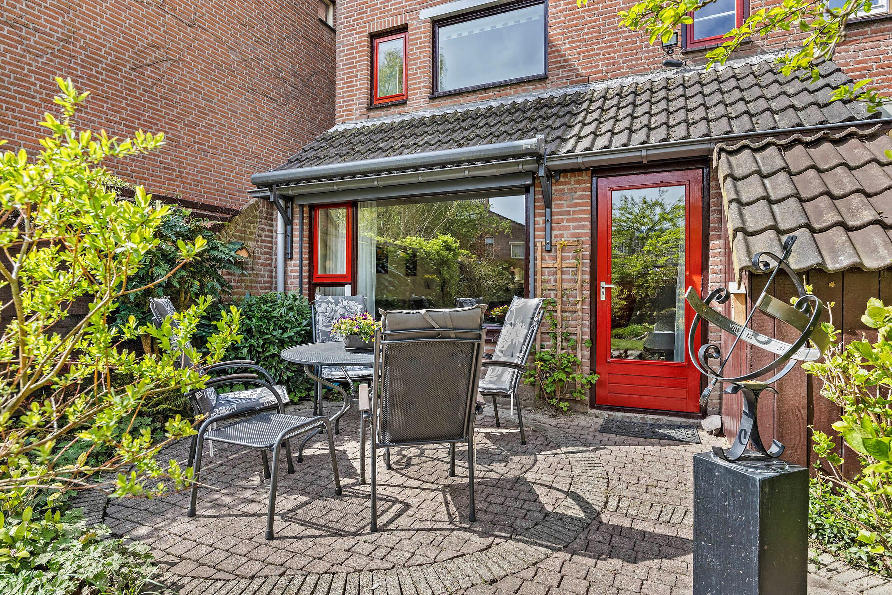 * De tuinligging is Oost, maar door de diepte en de ligging van de tuin kunt u in de zomer nog lang in de zon zitten. De zon schijnt aan het einde van de dag nog door de poort de tuin in;