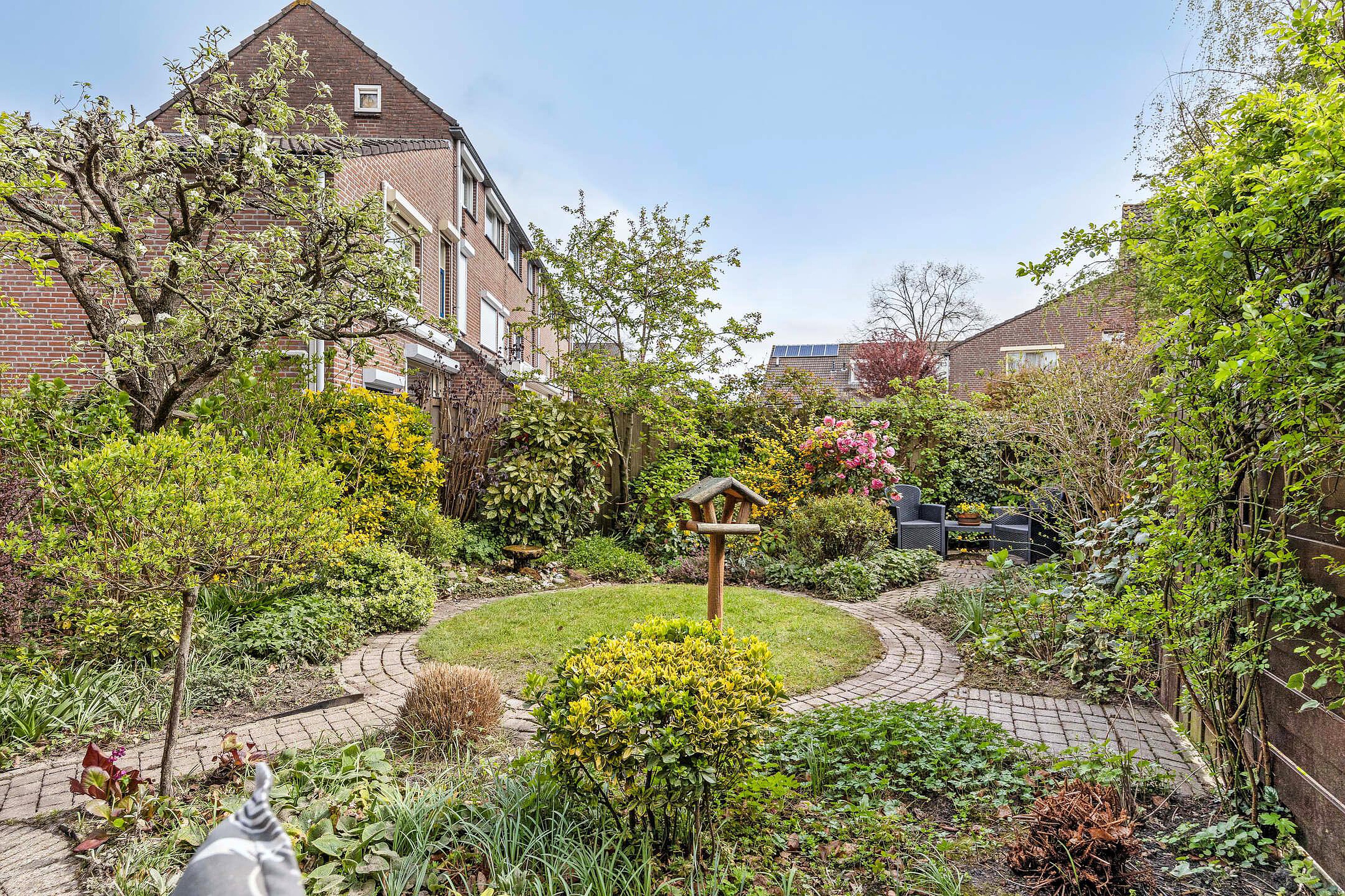 Deze 6-kamer woning heeft een schitterend aangelegde diepe achtertuin met diverse terrassen.