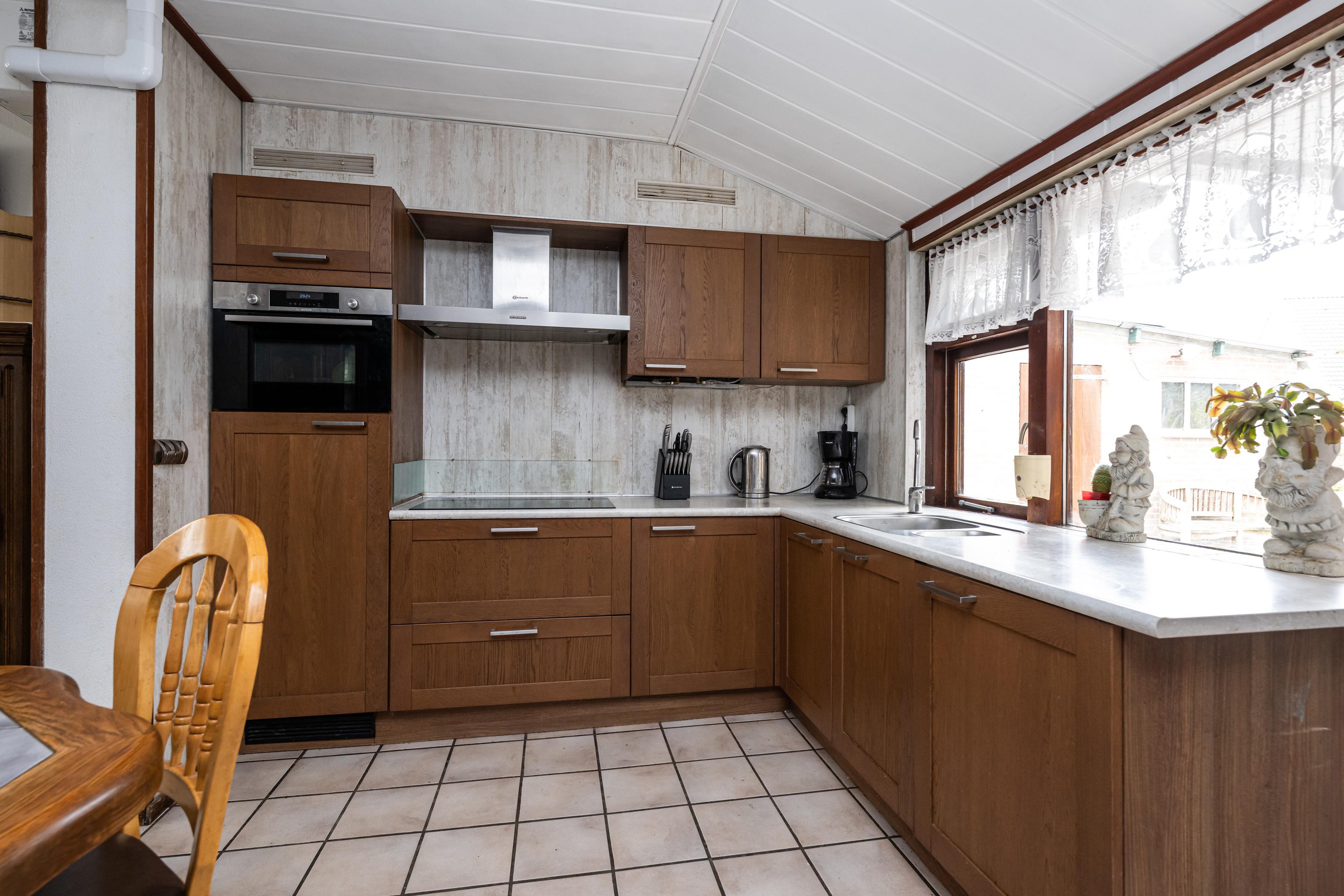 Plavuizenvloer, 4 pits inductiekookplaat, koelkast, combi-oven, 1,5 spoelbak en een afzuigkap.