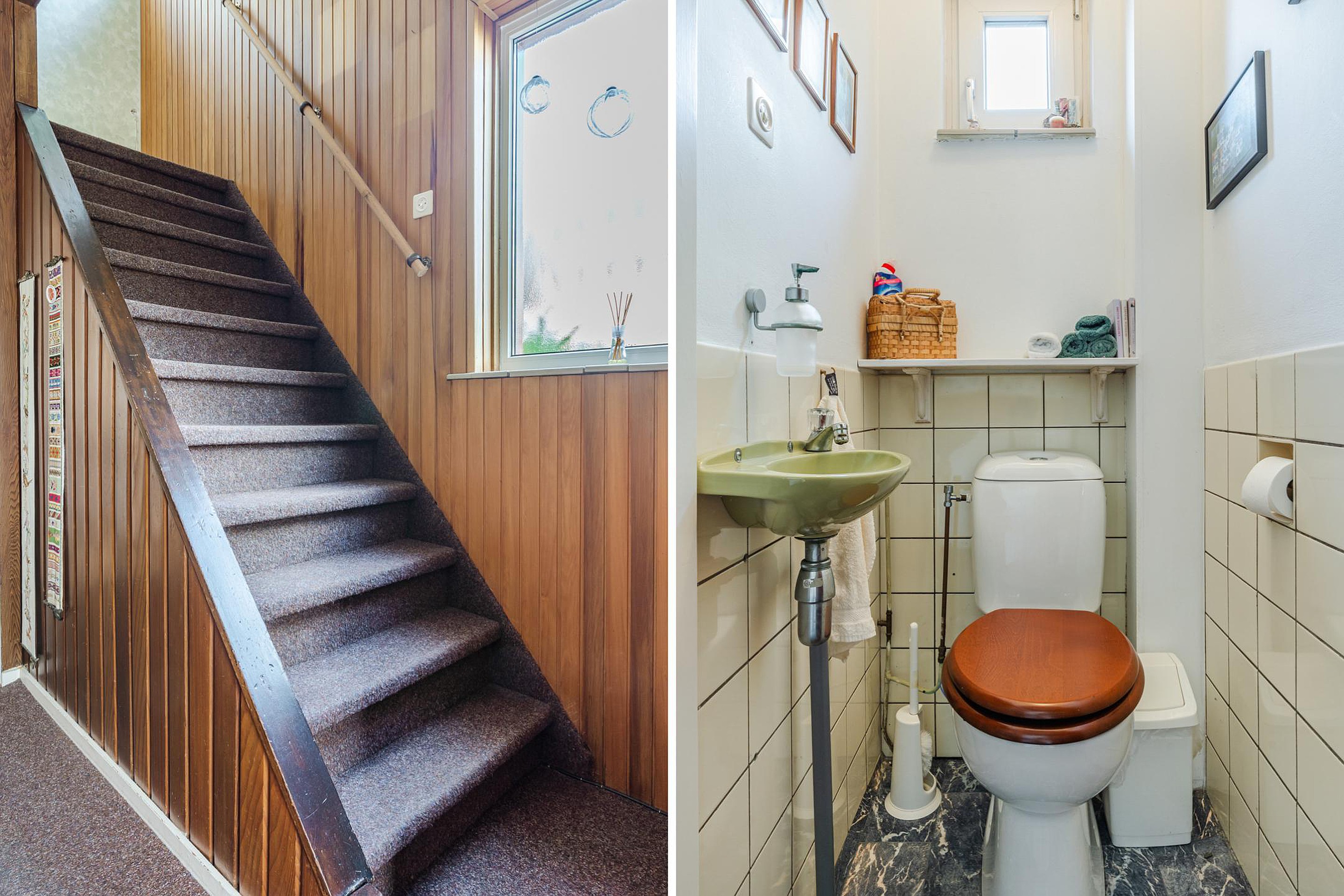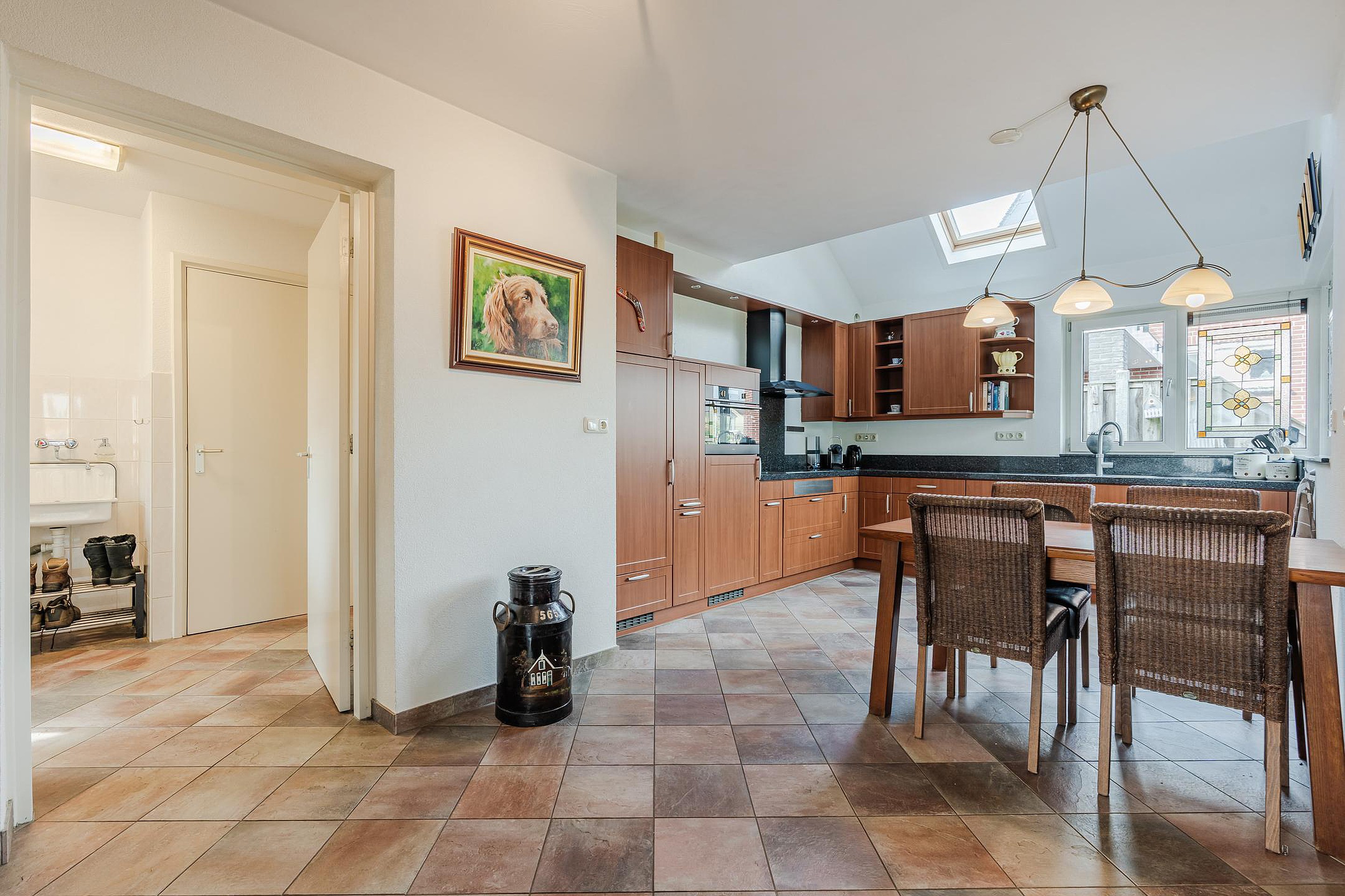 Begane grond Entree, staand toilet met fontein, vernieuwde meterkast, trapopgang, kelderkast, rechthoekige woonkamer met houtkachel en airco (2023 koelen en verwarmen), half open riante woonkeuken met L-vormige inbouwkeuken voorzien van alle inbouwapparatuur, bijkeuken/achteringang met opstelplaats voor wasmachine/droger, uitstortgootsteen, vaste kast en kast met opstelplaats voor de cv-ketel, doorgang naar ruime slaapkamer met aangrenzende badkamer met sauna, 2e wandcloset, wastafelmeubel en douche-inrichting. (Officiële vloerverwarming in keuken, bijkeuken en badkamer).