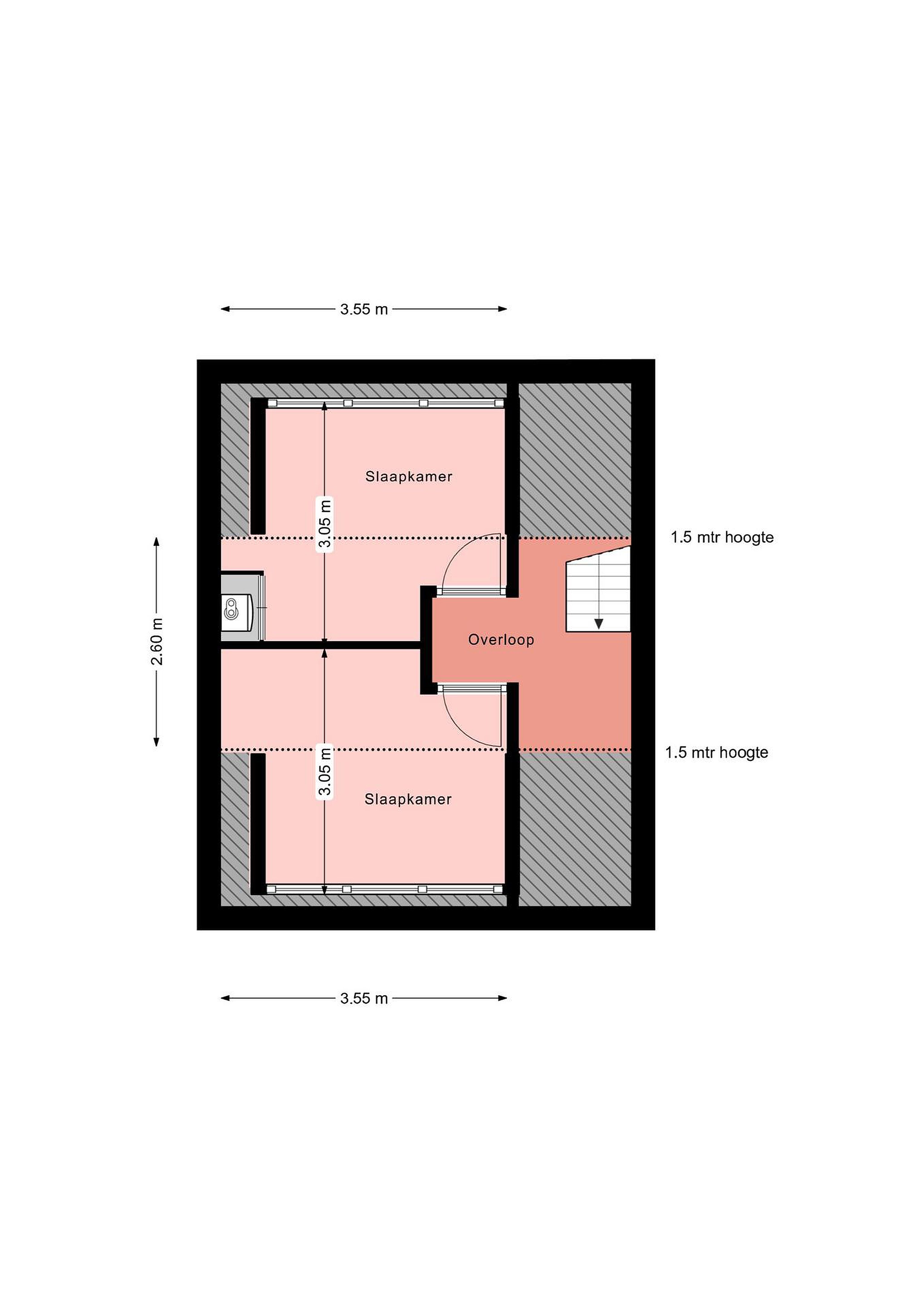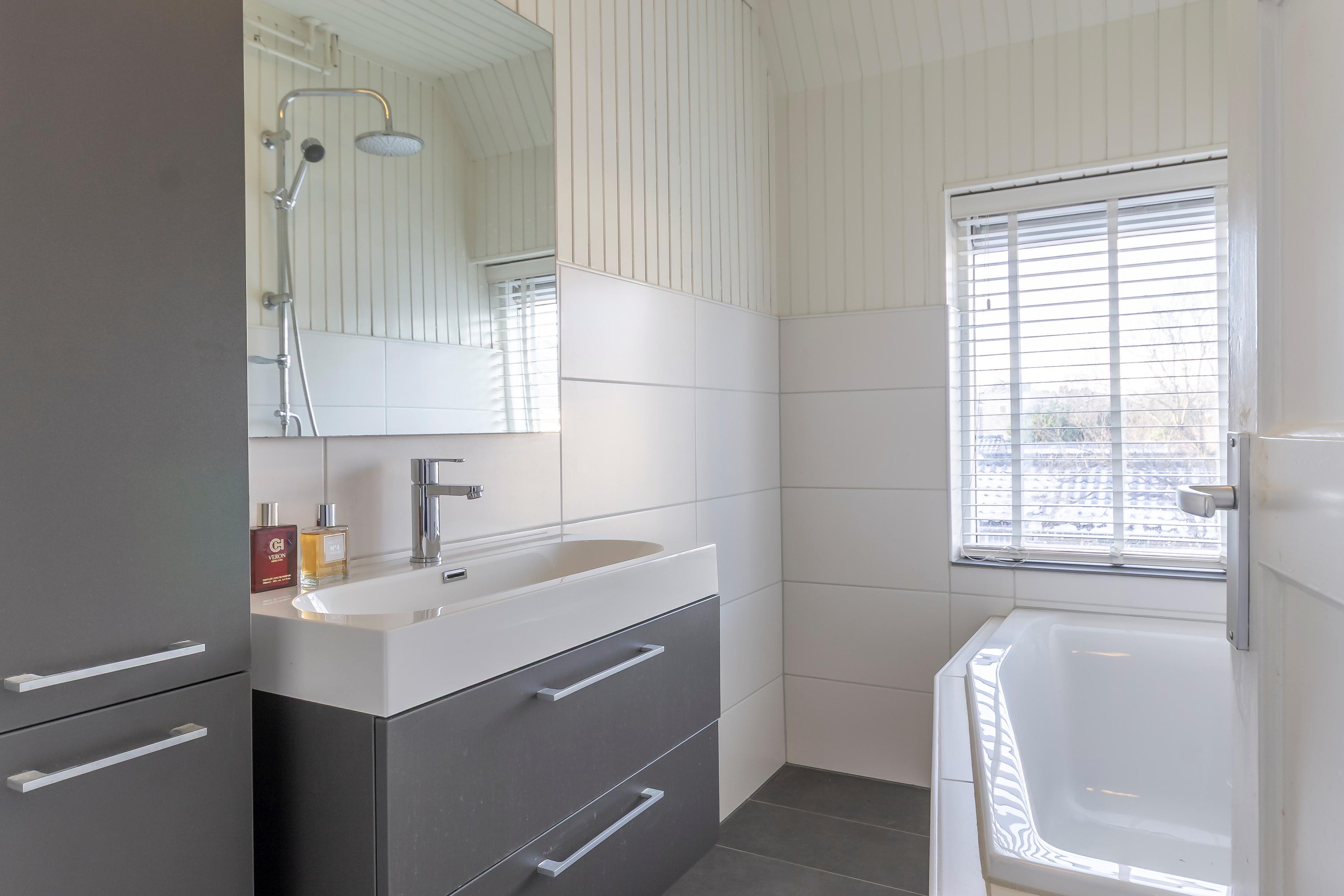 De eerste verdieping is bereikbaar via de centraal gelegen trap in de hal en beschikt over drie slaapkamers en een badkamer met ligbad/douche en wastafel. Via een tweede vaste trap is de tweede verdieping te bereiken. Hier bevinden zich nog twee slaapkamers. Dankzij de dakkapellen aan beide zijden hebben deze kamers een goed formaat.