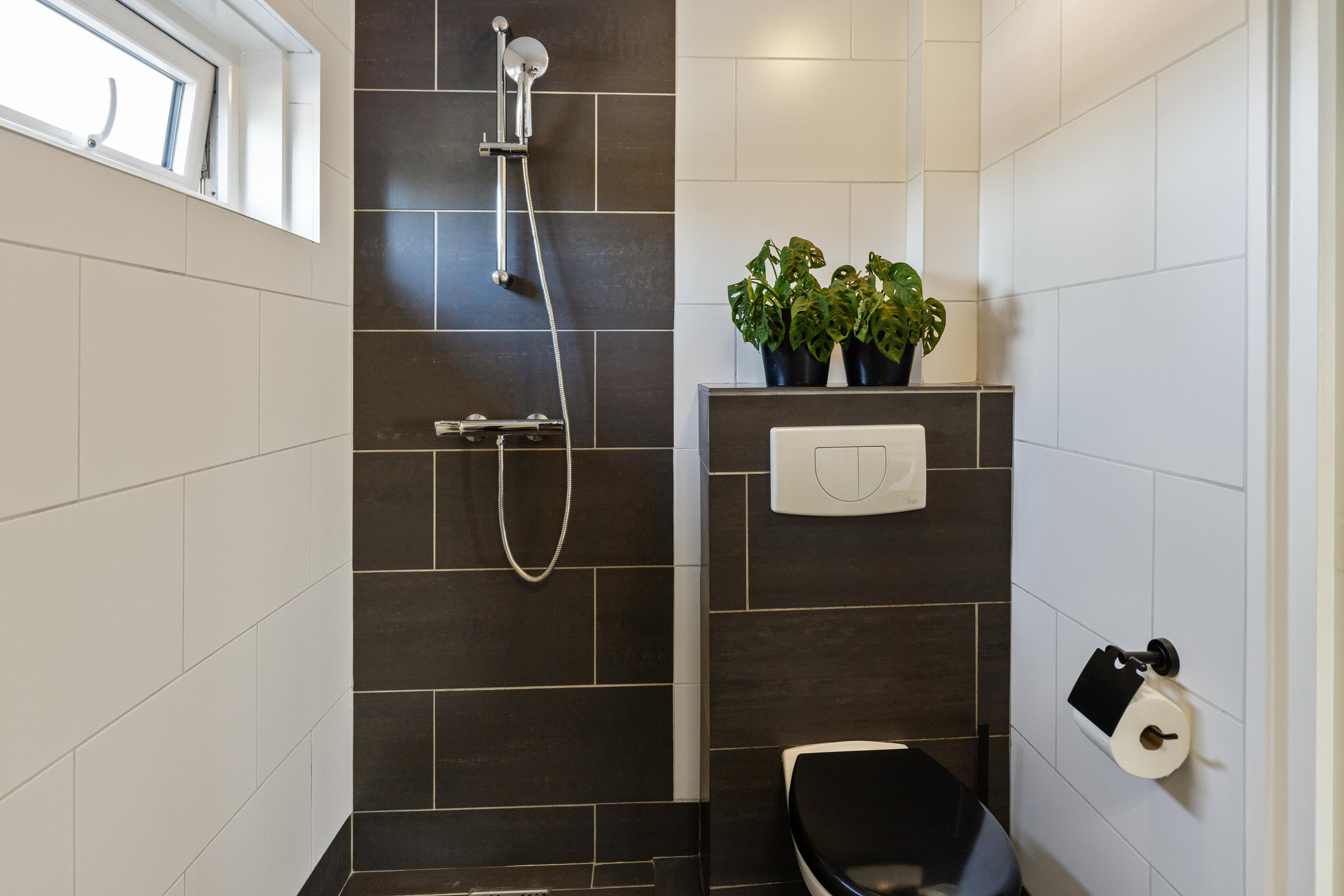Voortuin. Entree in de hal met toilet, meterkast en trapopgang naar de verdieping. Vanuit de hal kom je de ruime, uitgebouwde woonkamer met open keuken. De zithoek vind je aan de voorzijde en de eetkamer in de aanbouw (met schuifpui) aan tuinzijde. Zowel de wanden als het plafond zijn gestukt. De moderne, open keuken is in een hoekopstelling geplaatst en voorzien van al het gewenste inbouwapparatuur waaronder een 5 pits gaskookplaat met RVS afzuigkap, koelkast, heteluchtoven, magnetron en vaatwasser. Aansluitend aan de keuken is er nog een praktische bijkeuken/berging met, naast de schuifpui, een tweede toegang naar de achtertuin. Op de eerste verdieping vind je 3 ruime slaapkamers, allen voorzien van een laminaatvloer, behangen wanden, gestukt plafond en kunststof kozijnen met draai/kiepramen. De geheel betegelde badkamer is ruim, fris en modern. Geheel betegeld en voorzien van een douchehoek, dubbele wastafel en tweede toilet. De badkamer wordt zowel mechanisch als natuurlijk geventileerd. Vanaf de overloop kom je met een vaste trap op de tweede verdieping. Hier vind je een voorzolder met veel bergruimte en de aansluitingen voor het witgoed maar ook de ruime vierde slaapkamer, vergroot met een dakkapel. Achter de woning ligt een onderhoudsvriendelijke en zonnige (zuidwesten) achtertuin. Goed in het schuttingwerk en voorzien van een ruime stenen berging en achterom achterin. De tuin is nagenoeg geheel bestraat met gestapelde borders voorzien van beplanting.