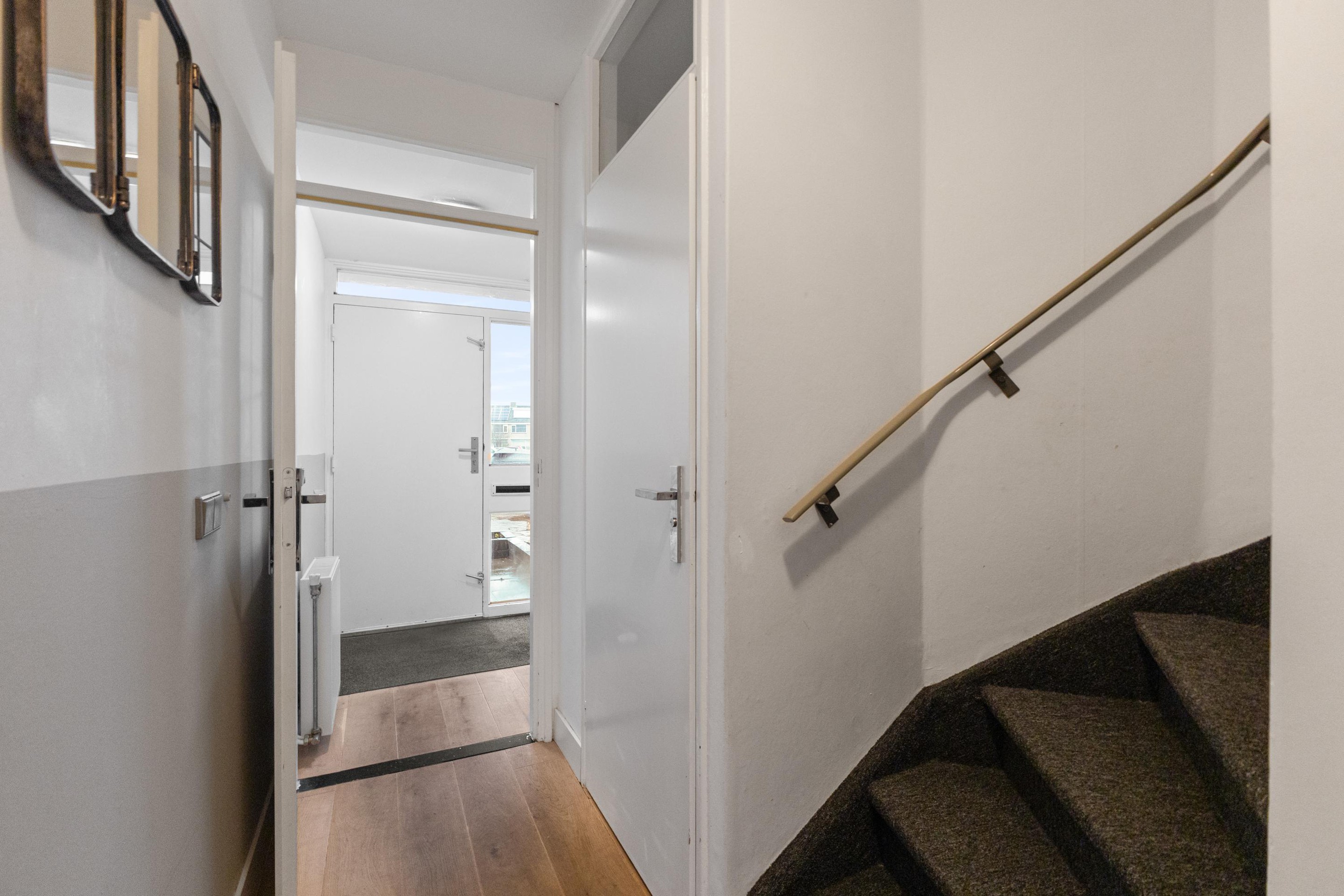 Voortuin, entree woning in een voorportaal met meterkast, aansluitend de hal met het toilet, trapopgang naar de verdieping en ruime bergkast. Vanuit de hal kom je in de door een erker vergrote woonkamer, geheel gestukt en voorzien van een fraaie houtenvloer. In de achtergevel zitten dubbel openslaande tuindeuren naar de veranda en achtertuin op het zuiden. De moderne open keuken is in een hoekopstelling geplaatst en is voorzien van al het gewenste inbouwapparatuur. Op de eerste verdieping bereik je vanaf de overloop 3 ruime slaapkamers voorzien van laminaatvloer, gestukt met daarover (glasvezel) behang. Een van de slaapkamers aan de achterzijde beschikt over een balkon (zuiden). De geheel betegelde, moderne badkamer is volledig ingericht met een breed wastafelmeubel, zeer ruime douche met inbouwkranen en tweede toilet. De badkamer beschikt over vloerverwarming die deels doorloopt in de wand. De royale tweede verdieping biedt een voorzolder met de aansluitingen voor het witgoed, de CV ketel en omvormer van de zonnepanelen. Vanaf de voorzolder kom je in een zeer ruime vierde slaapkamer voorzien van een dakkapel in de breedst mogelijke uitvoering. Zowel achter de knieschotten als ook boven de tweede verdieping vind je nog veel extra bergruimte.