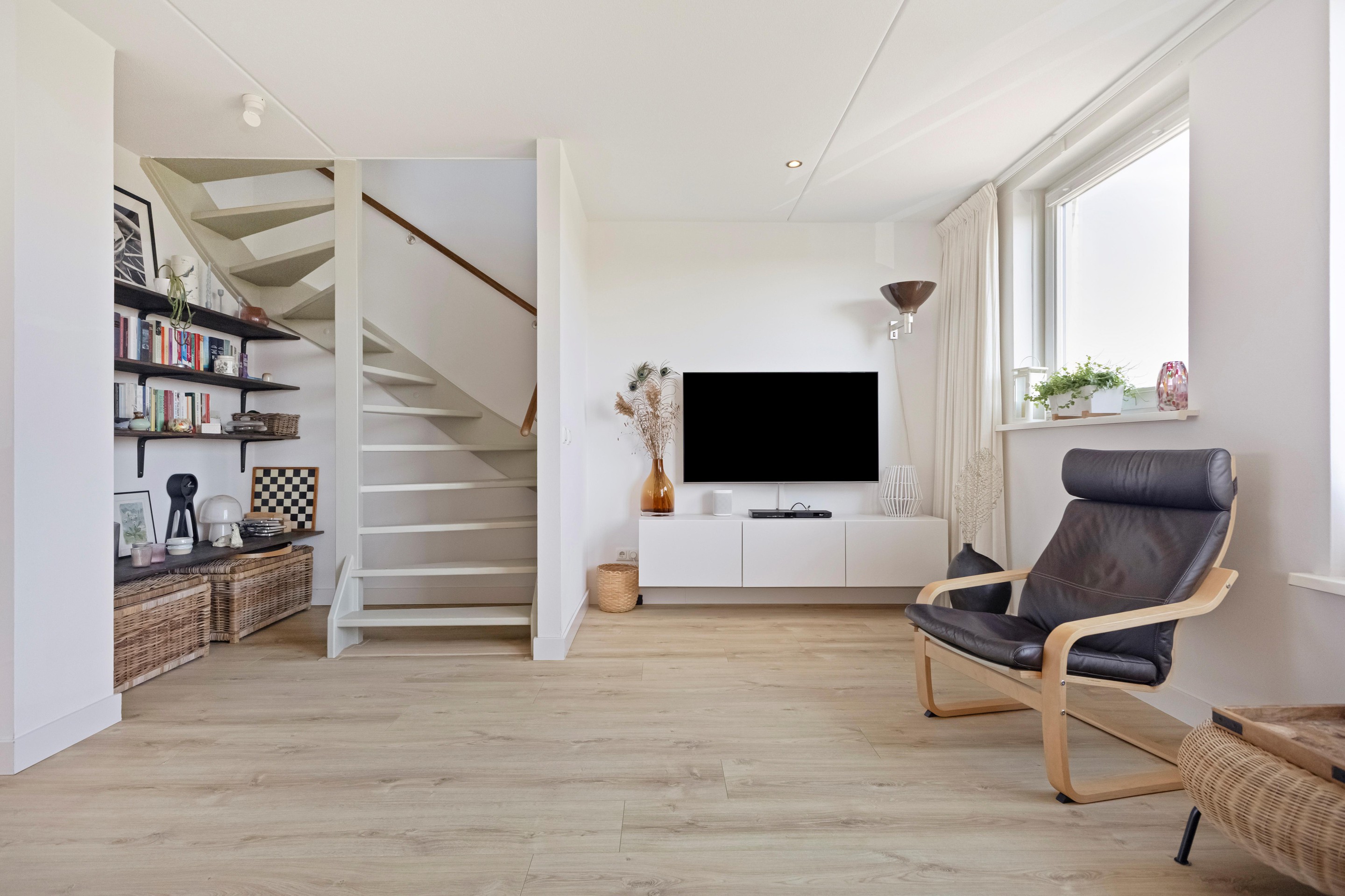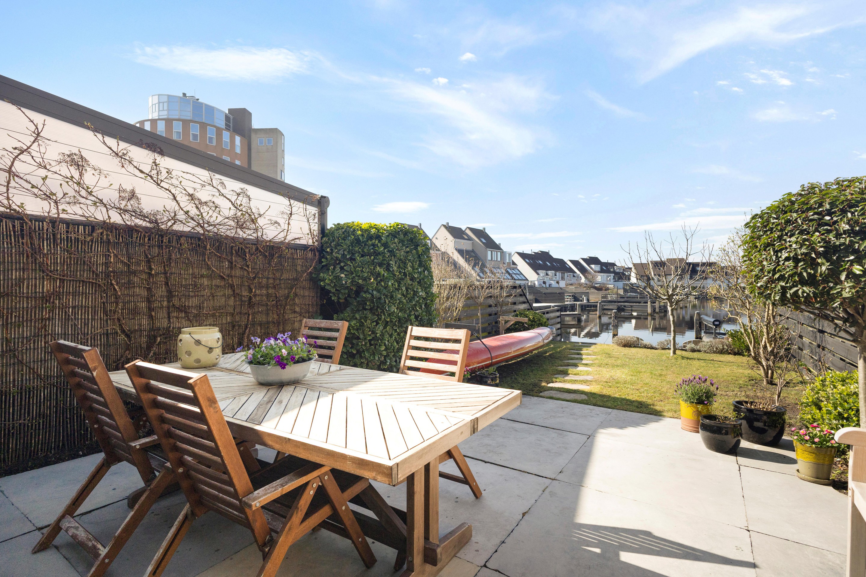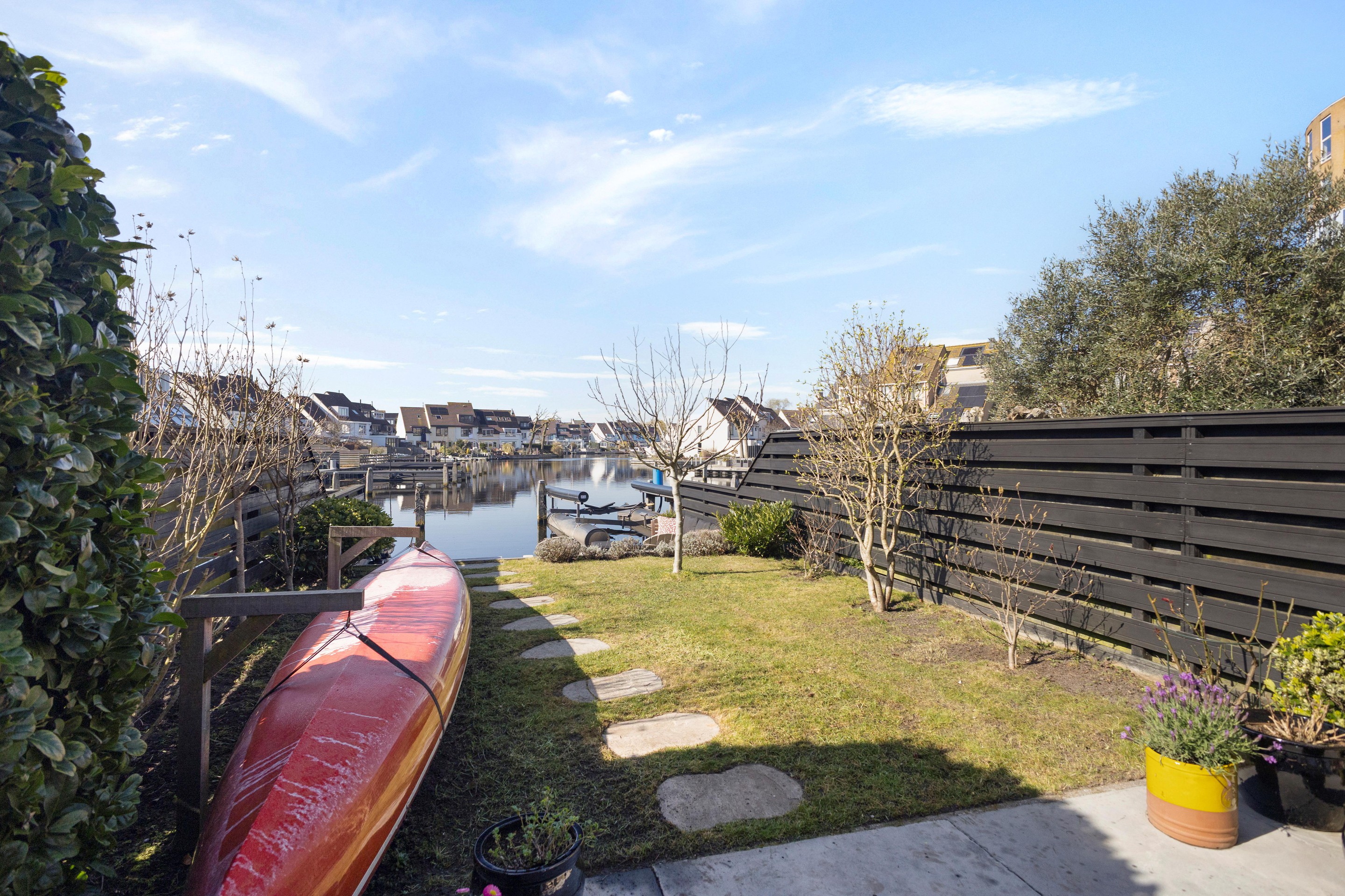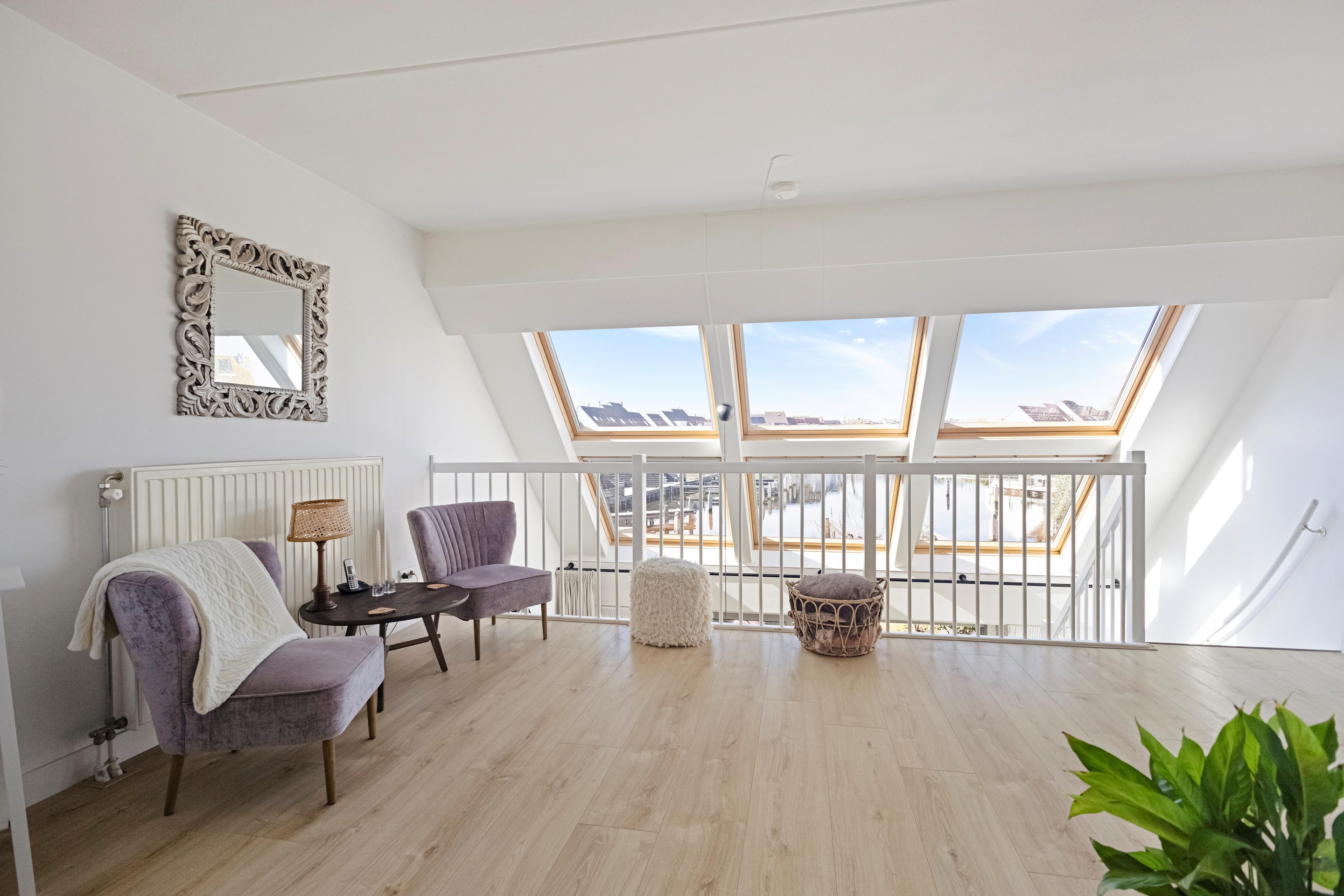 Er zijn huizen waar je woont. En er zijn huizen waar je eigenlijk een beetje op vakantie bent, elke dag opnieuw. Dit is er zo één. Aan het water, met de achtertuin op het westen en een eigen ligplaats voor een boot tot ca. 12 meter, voelt dit huis als een plek waar tijd net iets rustiger loopt. ’s Ochtends koffie met uitzicht over het water, ’s avonds de zon die langzaam zakt terwijl je op je eigen vlonder zit. Elk seizoen heeft hier z’n eigen decor. De woning zelf is in 2004 gebouwd, volledig geïsoleerd en opvallend ruim opgezet met zo’n 140 m2 woonoppervlak verdeeld over vier etages. Door de recente toevoeging van een dakkapel op de bovenste verdieping is er niet alleen extra ruimte ontstaan, maar ook een uitzicht dat je blijft trekken, zo’n plek waar je automatisch even stil wordt.