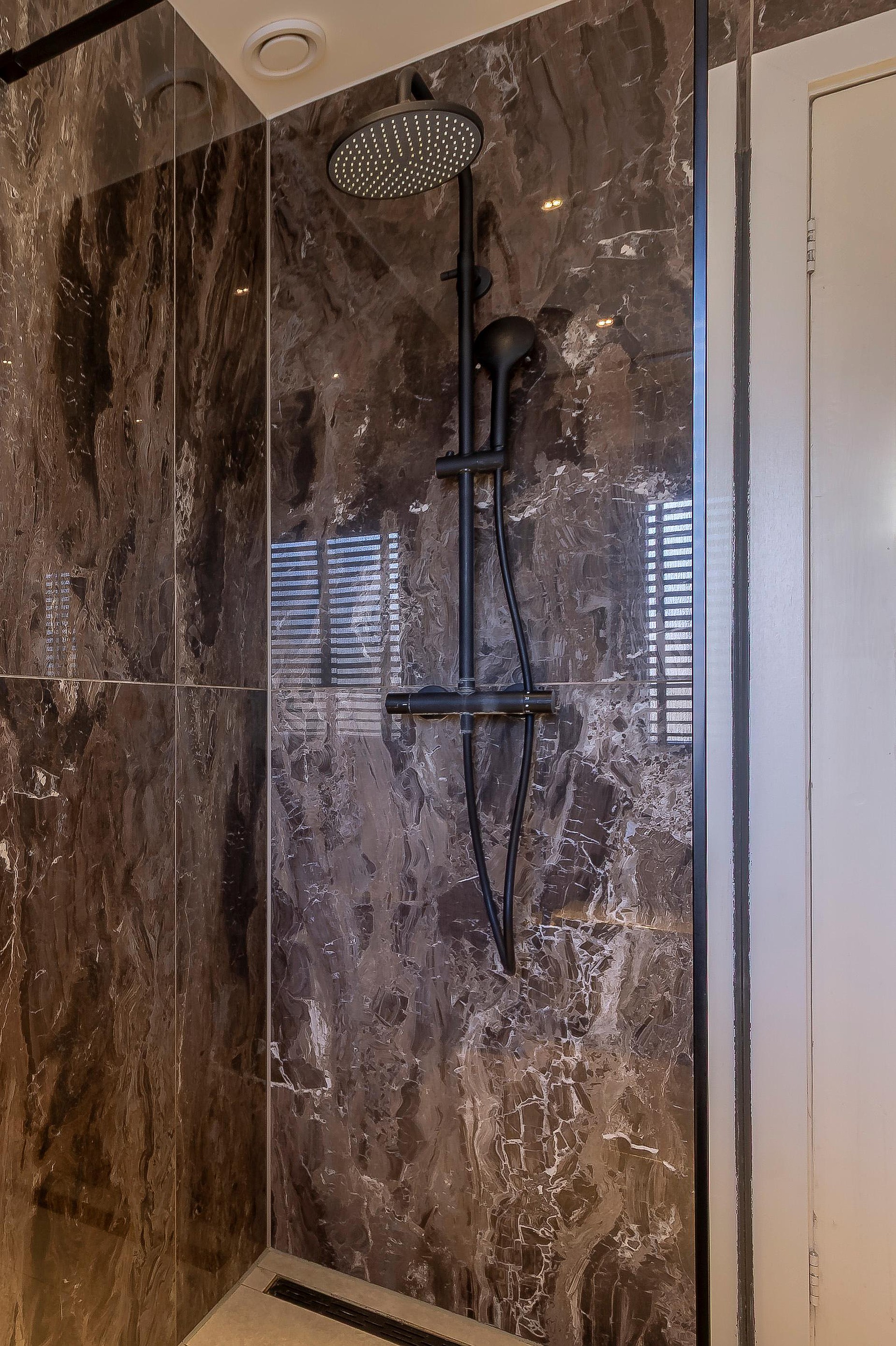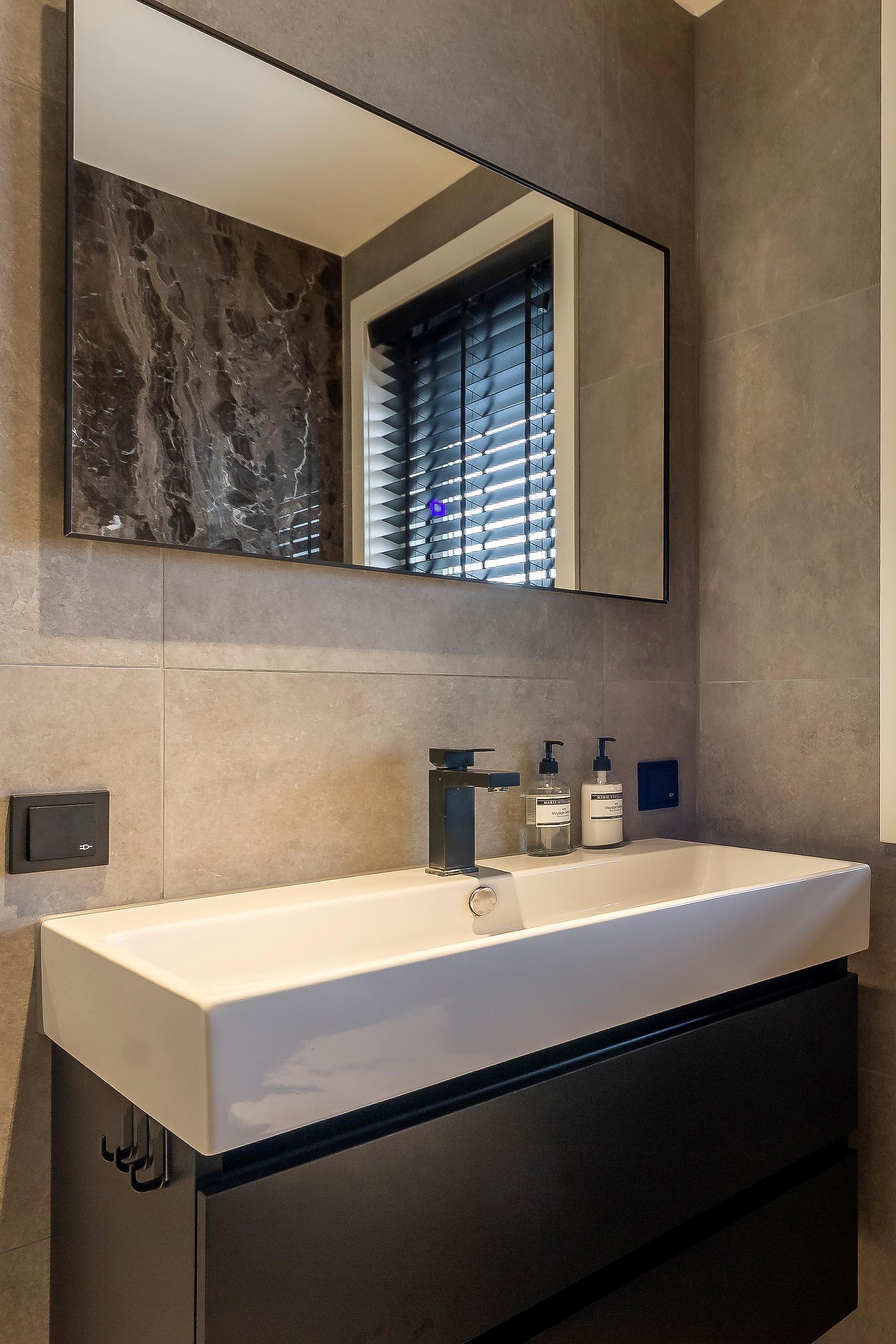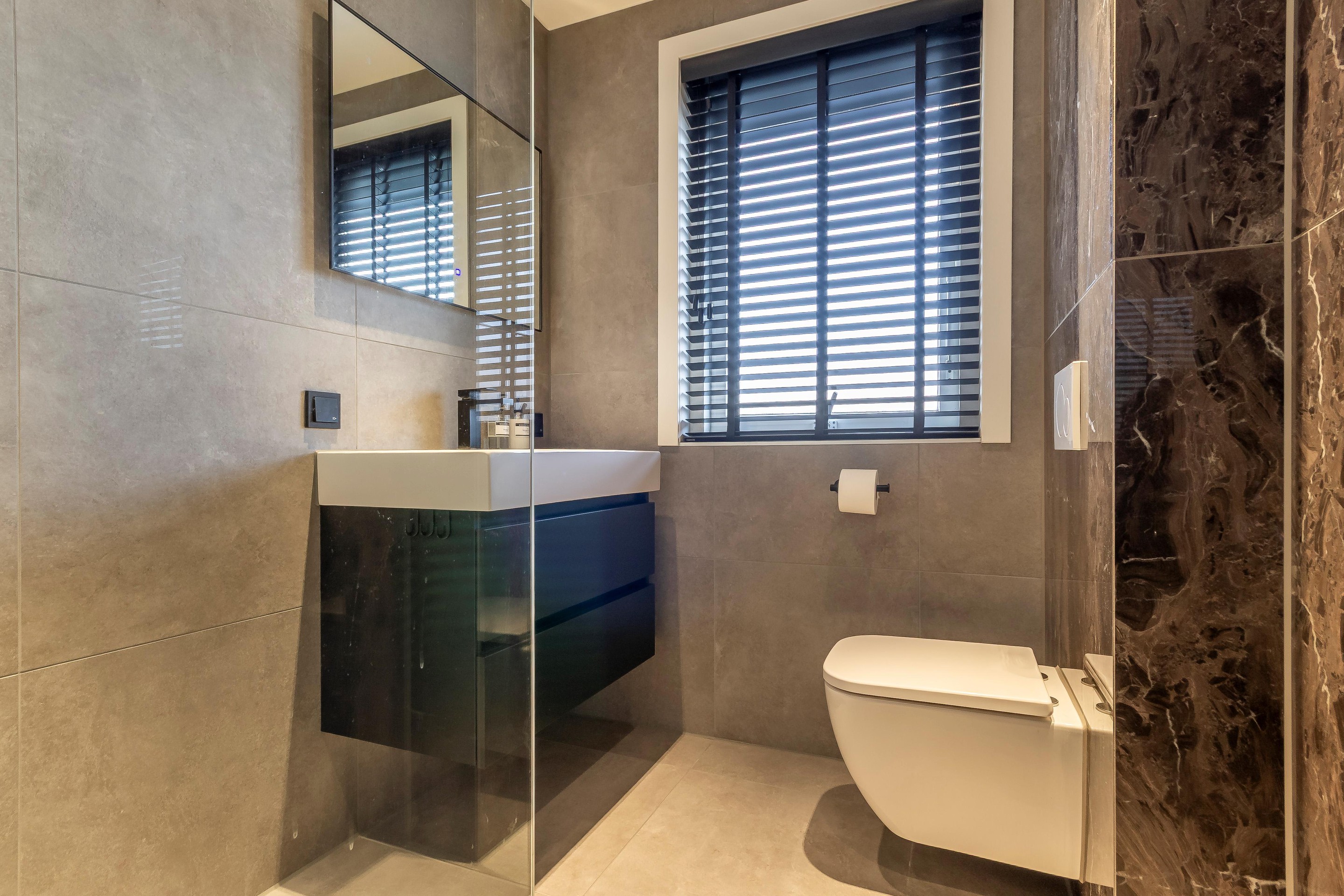 Op de eerste verdieping komt het karakter van de woning mooi terug, met authentieke paneeldeuren en een Frans balkon aan de voorzijde. Hier bevinden zich twee keurig afgewerkte slaapkamers met laminaatvloeren en strakke wandafwerking. De moderne badkamer is ruim opgezet en voorzien van een inloopdouche, wastafelmeubel, tweede toilet en vloerverwarming.