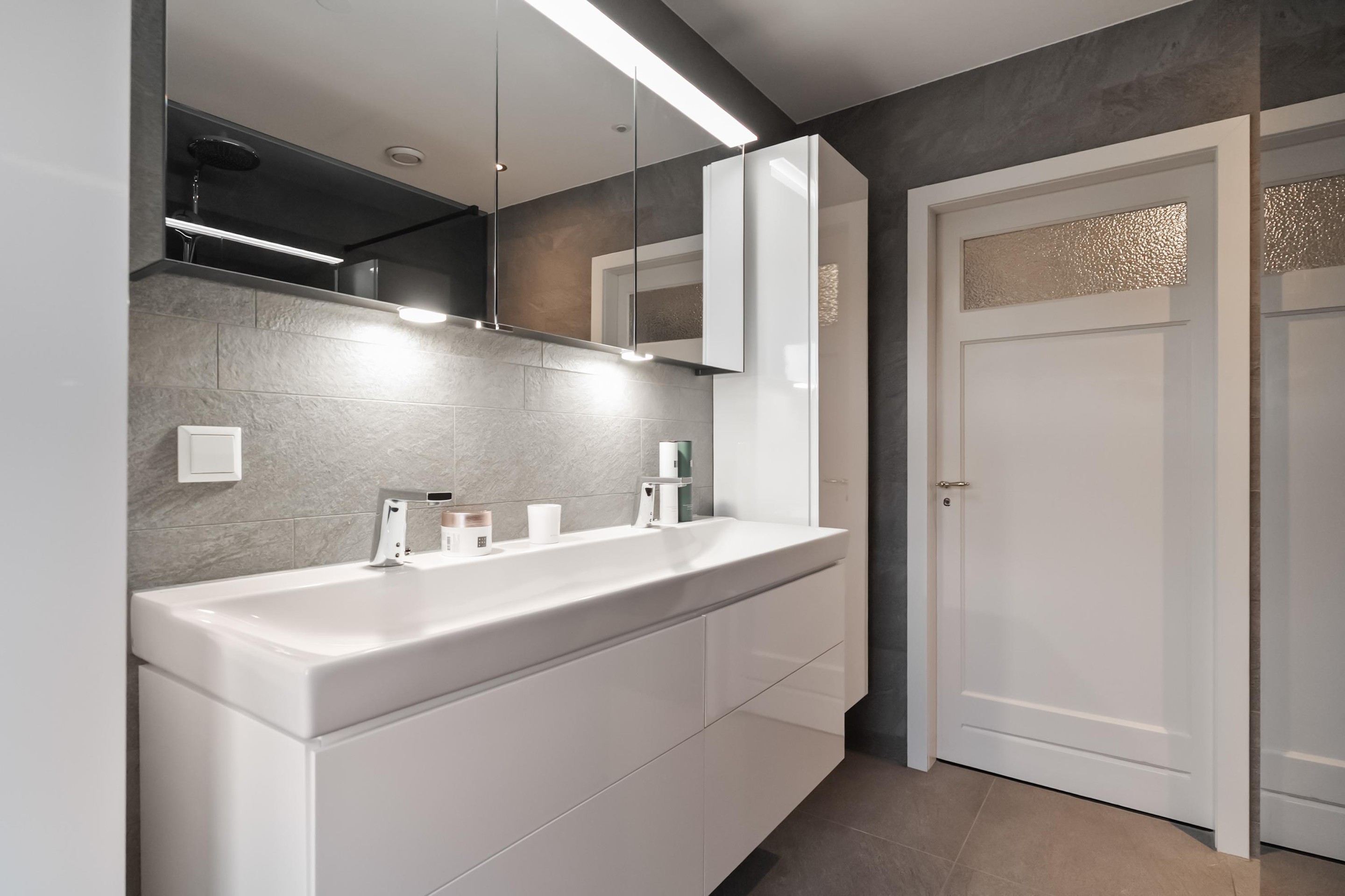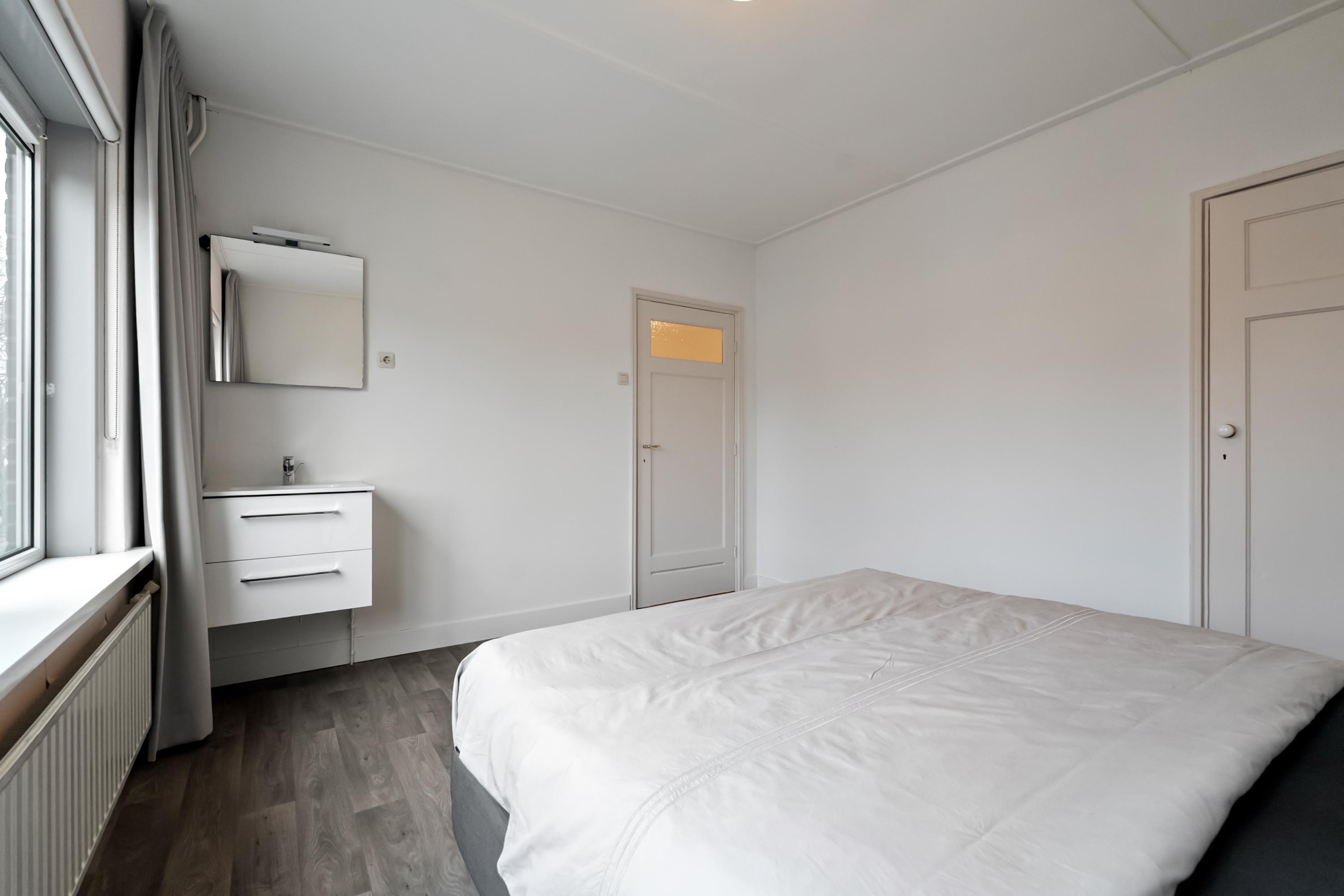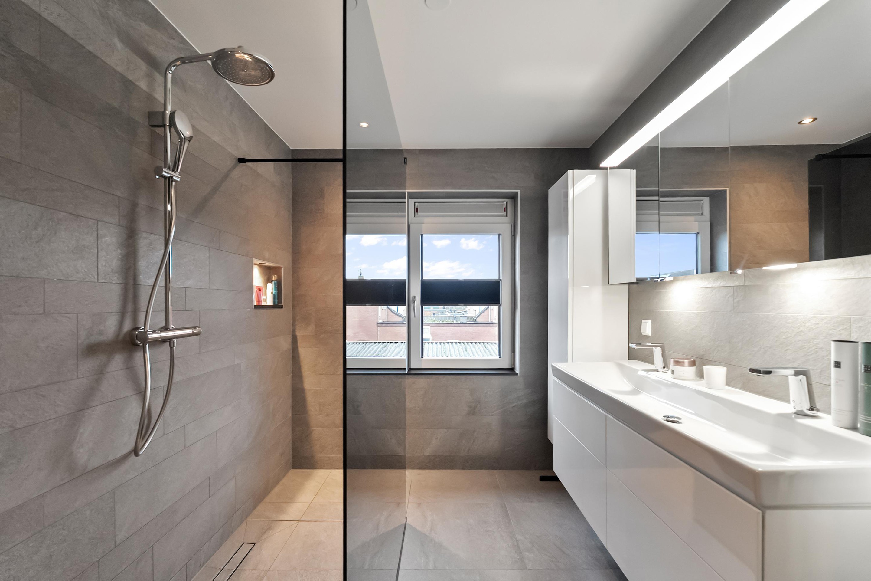 Op de eerste verdieping een overloop met een separaat modern toilet, er zijn drie slaapkamers met strakke wanden en keurige vloerafwerking, de hoofdslaapkamer aan de achterzijde heeft een balkon. Op deze verdieping is ook te bereiken de ruime en zeer luxe badkamer met inloopdouche en groot wastafelmeubel met dubbele kraan, de badkamer is voorzien van sensoren voor de automatische bediening van het licht en er is vloerverwarming aanwezig. De tweede verdieping heeft twee extra slaapkamers en een ruime voorzolder met bergruimte, cv-ketel, hybride warmtepomp en omvormer voor de zonnepanelen.