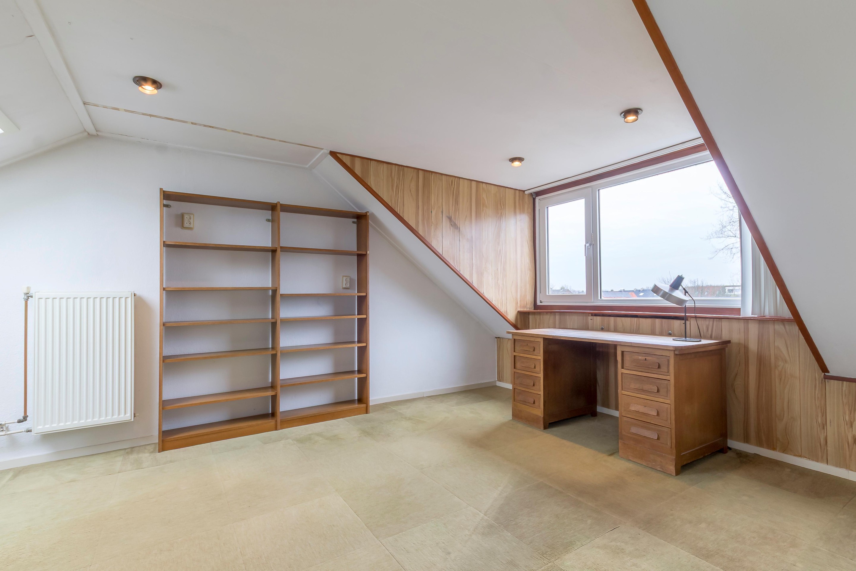 Ook de tweede verdieping is verrassend ruim. Hier vind je de voorzolder met aansluitingen voor wasmachine, droger en de CV-ketel. Vanuit hier bereik je de vierde slaapkamer met dakkapel.