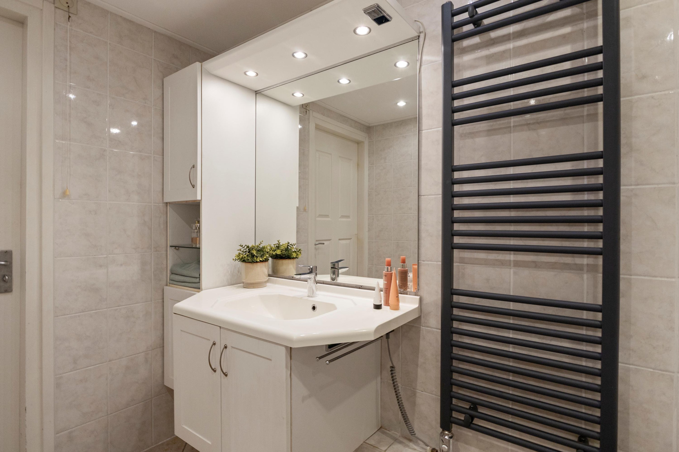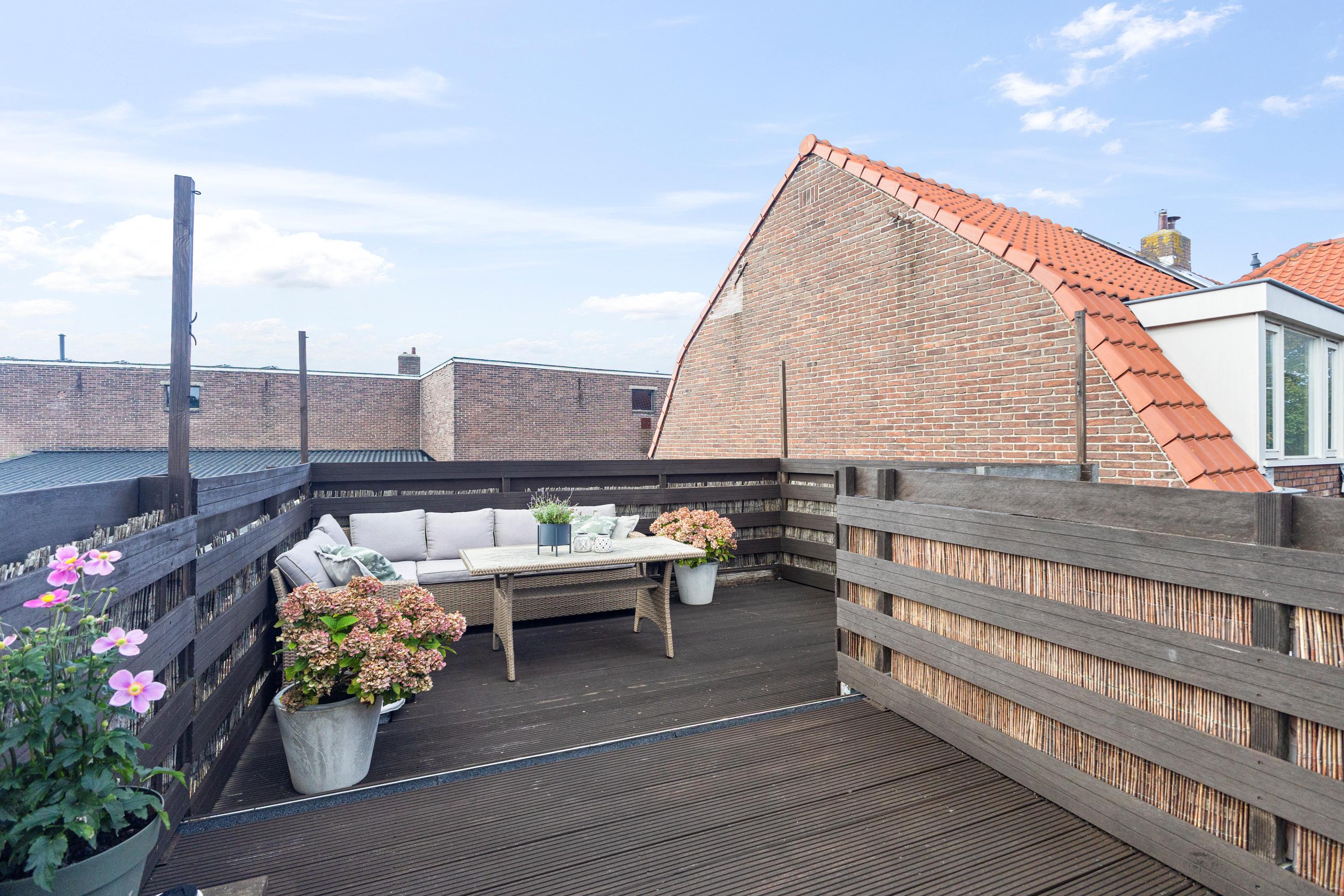 Entree, hal met meterkast en trapopgang. Ruime, daglichtvolle living met een riante woonkamer en een moderne, open inbouwkeuken in de aanbouw. De keuken is geplaatst in een hoekopstelling en voorzien van o.a. een SMEG gasfornuis, koel- en vrieskast, magnetron en vaatwasser. Aansluitend aan de keuken is er een praktische bijkeuken met de aansluitingen voor het witgoed, het toilet en toegang tot de stadstuin achter de woning. Vanuit de bijkeuken kom je tevens in de geheel betegelde badkamer voorzien van wastafelmeubel, designradiator en ligbad. De achtertuin is onderhoudsvriendelijk aangelegd met sierbestrating en degelijk schuttingwerk en is achterom bereikbaar via een zijpoort. Vanuit de tuin heb je ook de toegang naar de solide stenen fietsenberging. Terug in de woning kom je vanuit de hal met de trap op de ruime overloop van de eerste verdieping. De overloop biedt toegang tot 3 (voorheen 4) ruime slaapkamers. Alle slaapkamers zijn voorzien van een nette laminaatvloer, veel lichtinval en vaste kasten. De slaapkamer aan de achterzijde biedt toegang tot een ca. 20m2 groot dakterras met een prima zonligging op het westen.