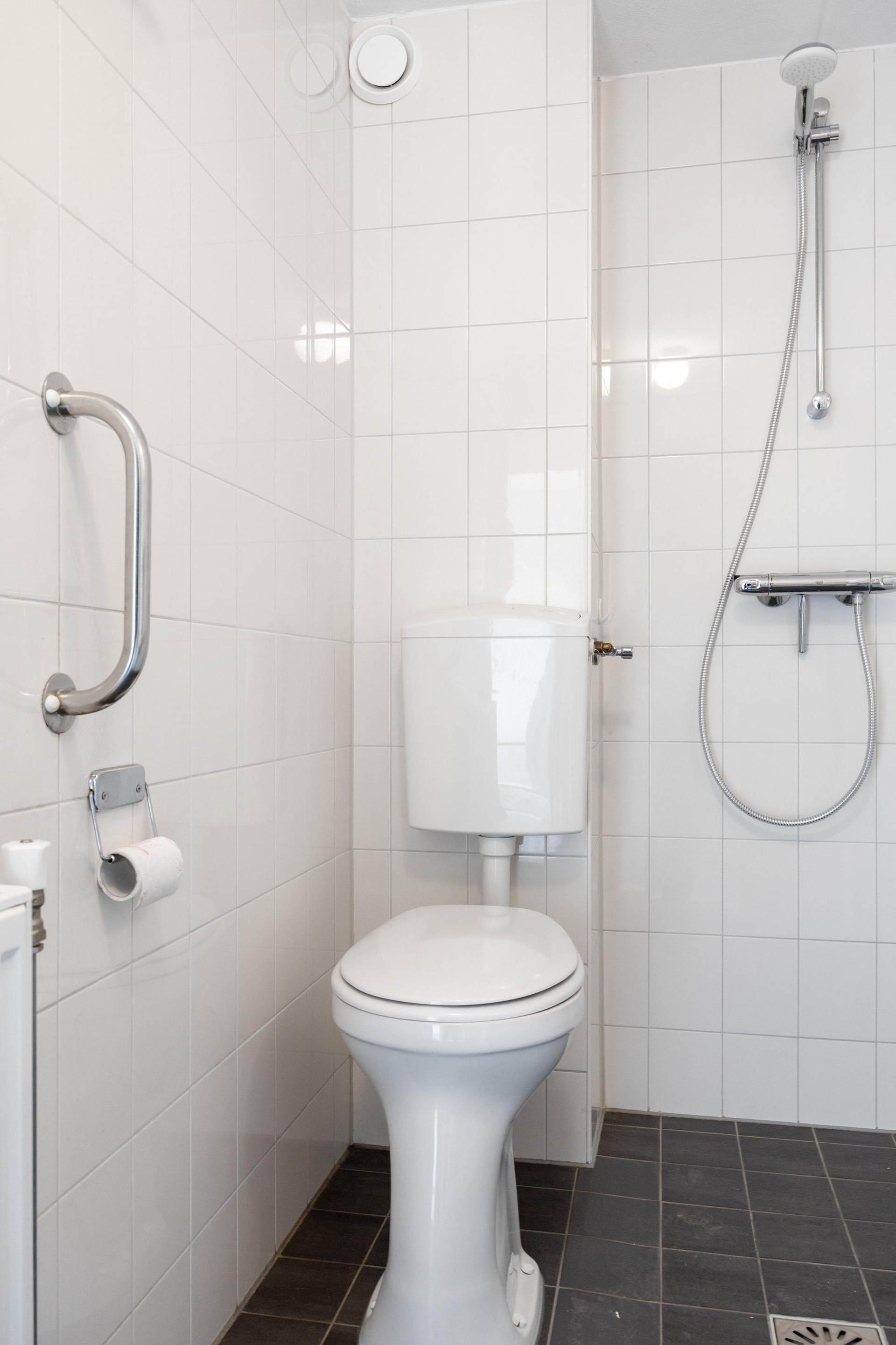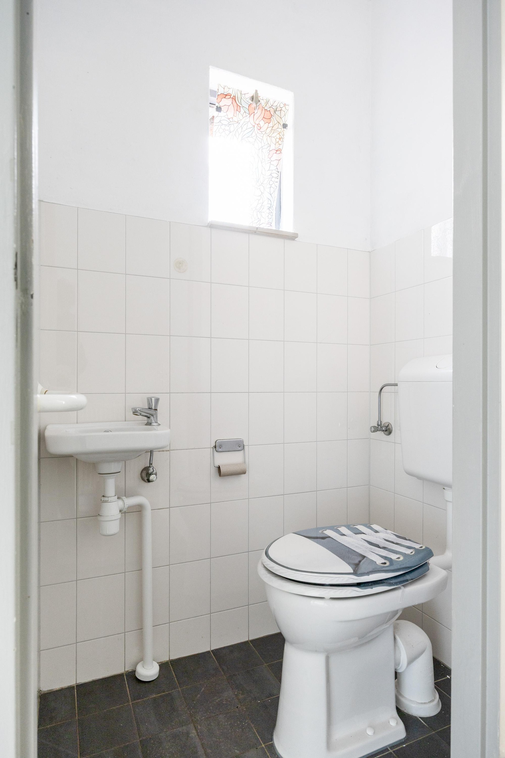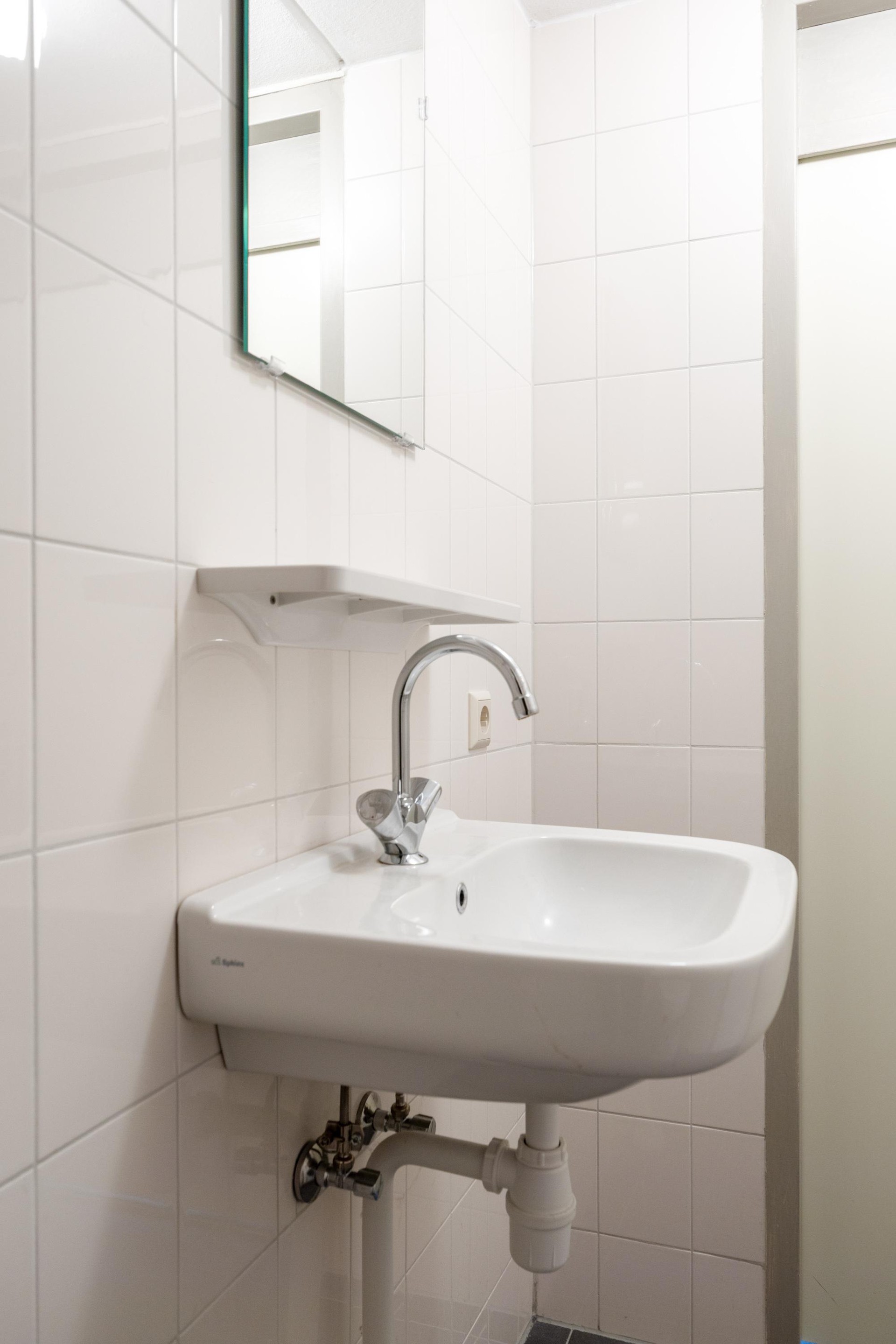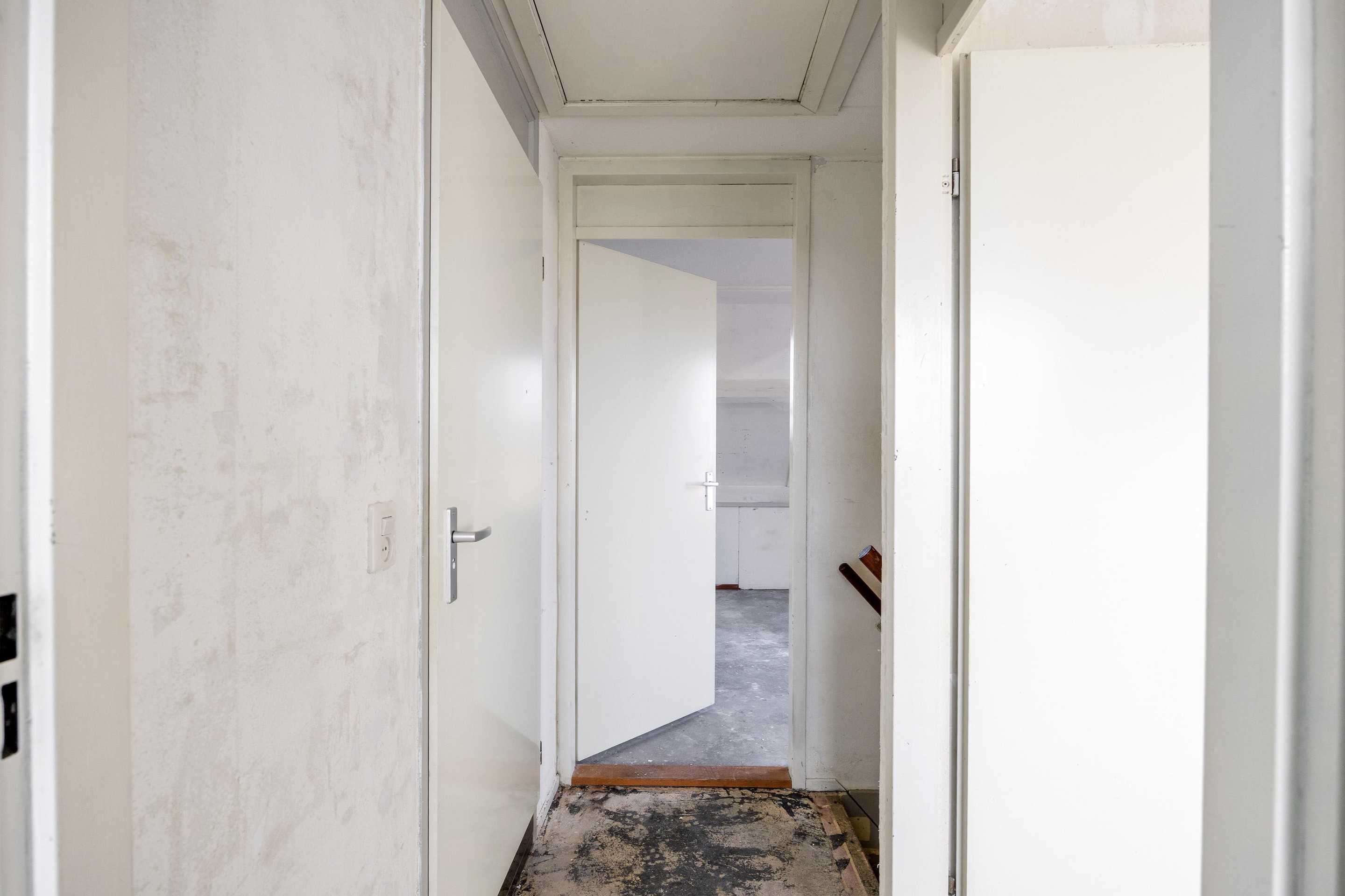 De overloop geeft toegang tot drie slaapkamers en een nette badkamer. De badkamer is voorzien van toilet, douche en wastafel.