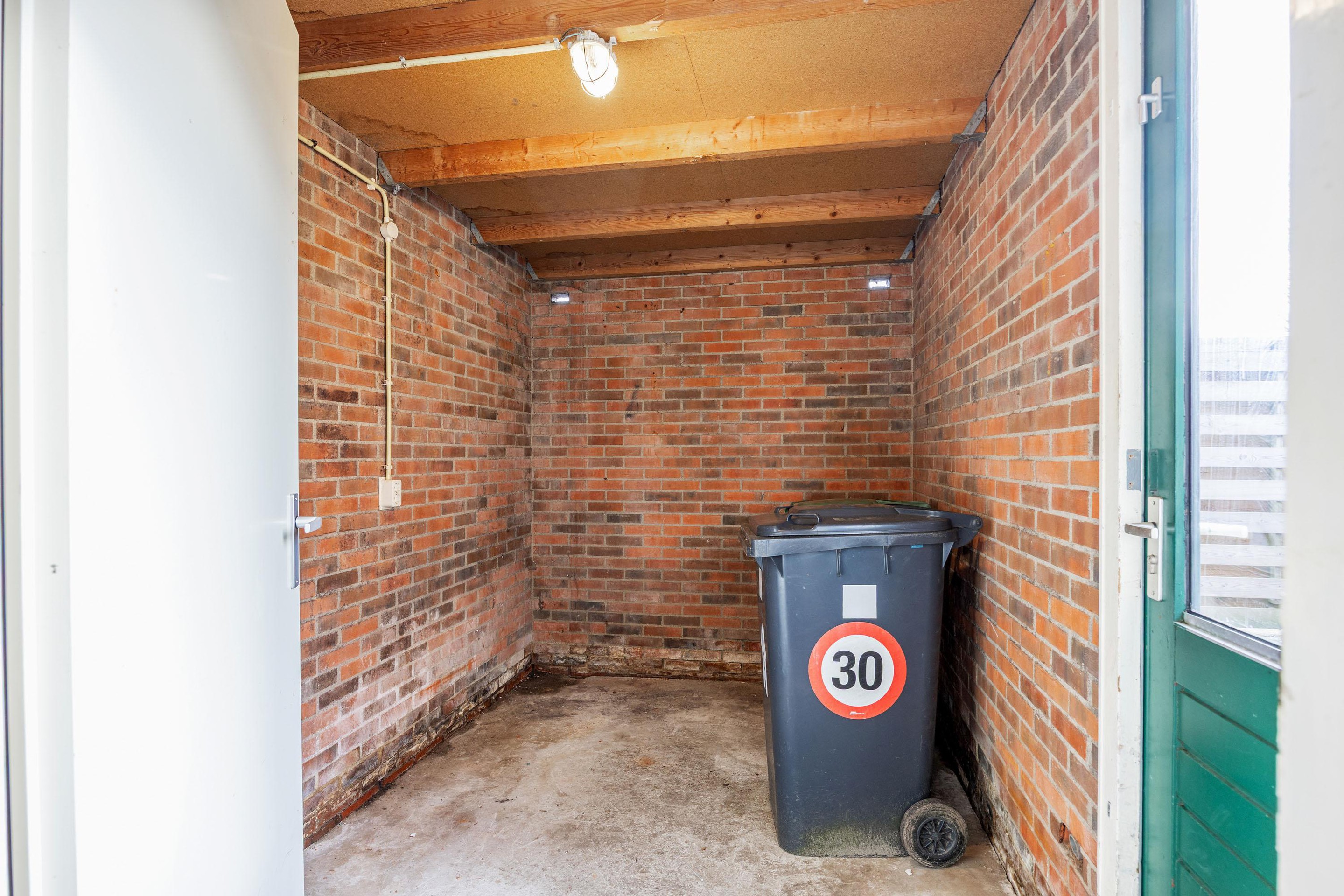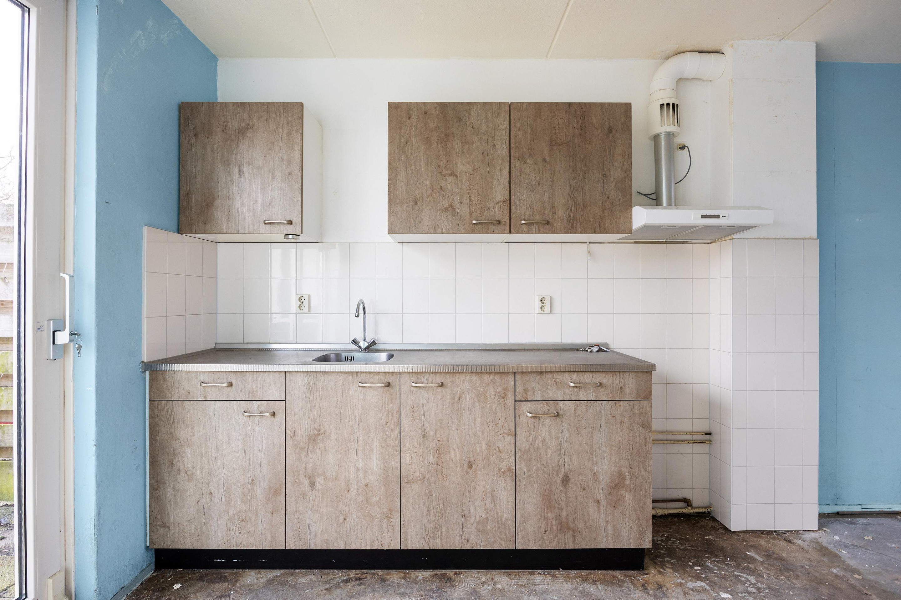Vanaf de zijkant bereikt u de entree van de woning waarna u binnenkomt in de hal met meterkast en toilet. Vanuit de hal is er toegang tot de keuken en de bijkeuken. De keuken is uitgevoerd in een nette basisopstelling en staat in open verbinding met de woonkamer. Vanuit de keuken is via een schuifpui directe toegang tot de achtertuin. De bijkeuken biedt toegang tot de inpandige berging en van daaruit tot de tuin.
