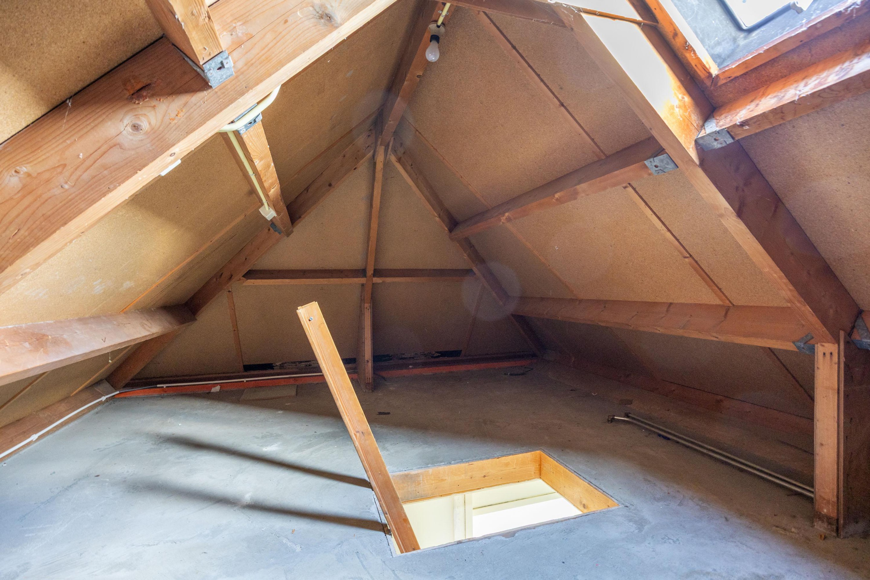 Via een vlizotrap is de vlizozolder bereikbaar. Ideaal om te gebruiken als extra opbergruimte.