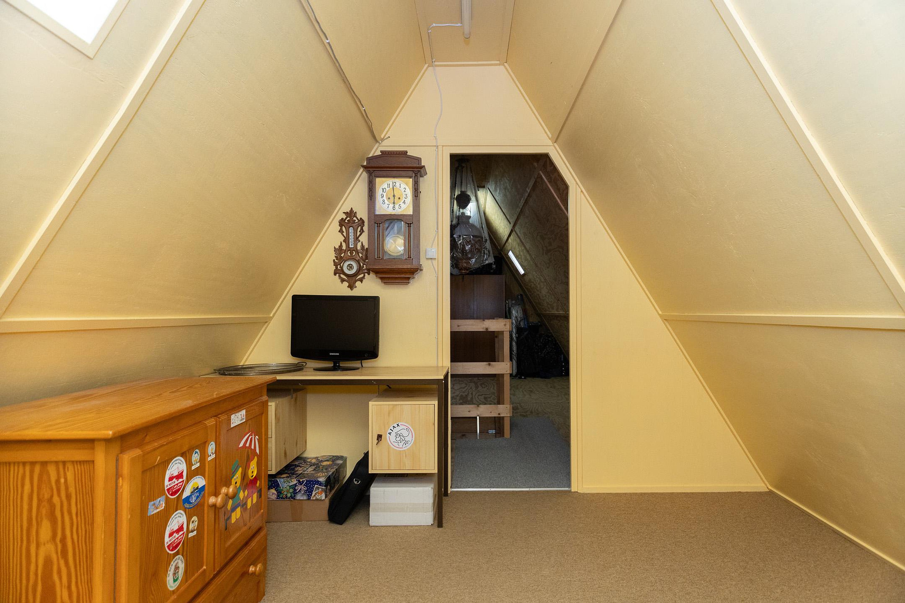 De zolderverdieping is te bereiken via de vlizo-trap op de overloop van de eerste verdieping en heeft een aparte hobby- /logeerkamer. Door het plaatsen van een vaste trap is het eenvoudig om op deze zolder in totaal extra twee slaapkamers te realiseren.