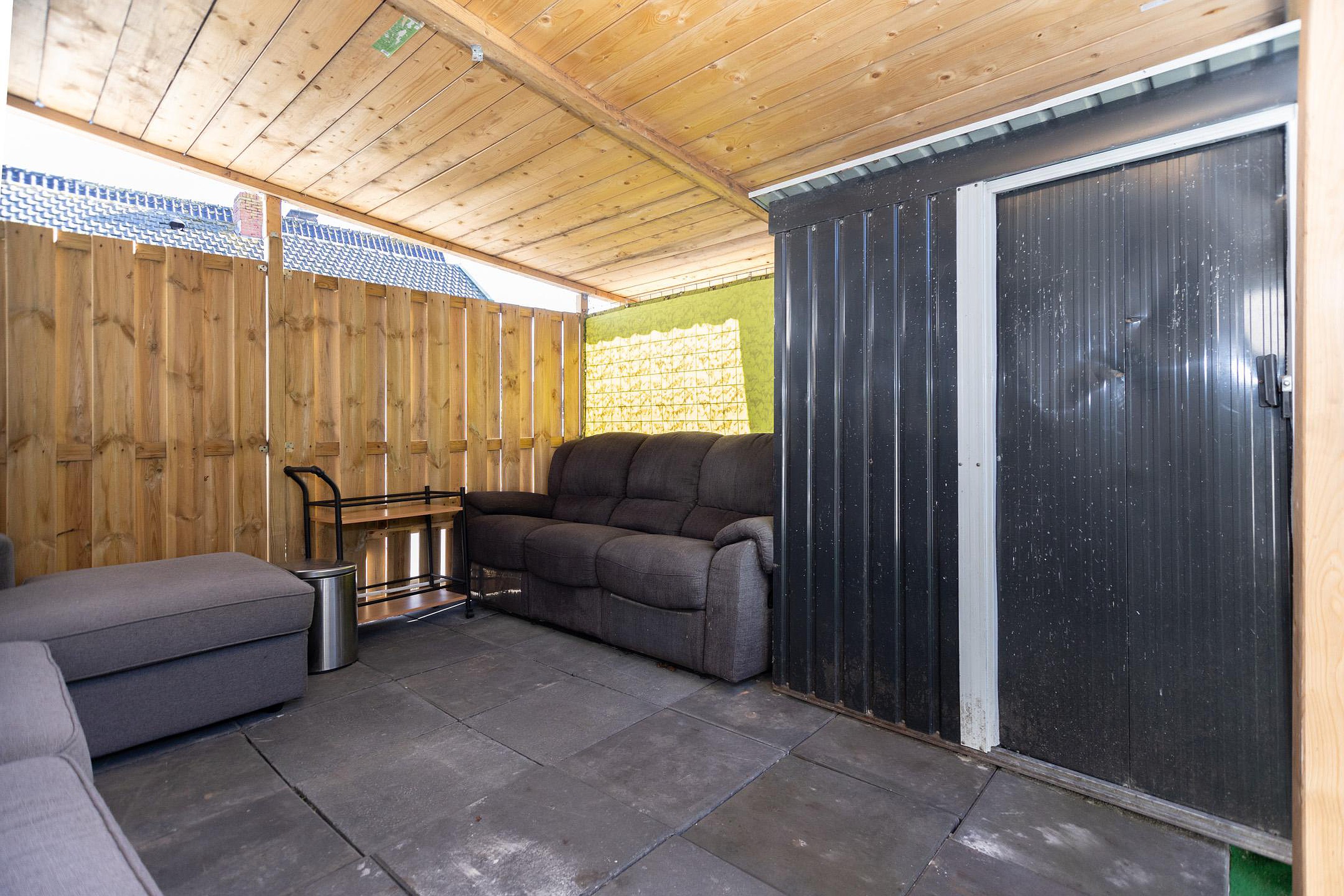 Tuin De zonnige voortuin van ca. 40m2 is gelegen op het zuidwesten en is volledig bestraat en omheind met een schutting voor extra privacy.