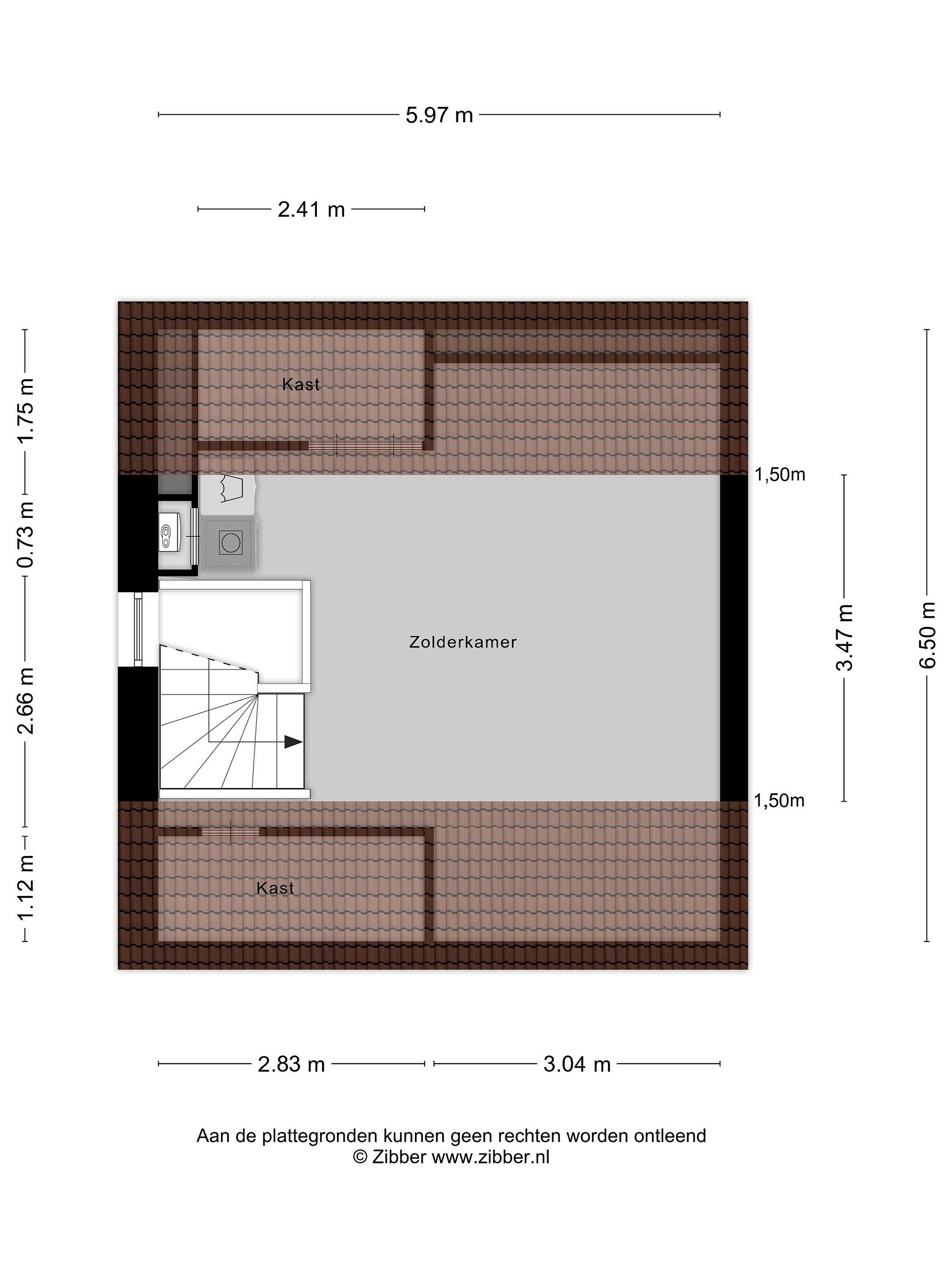 Tweede verdieping Via een vaste trap is de zolder toegankelijk. Deze ruimte leent zich perfect voor het realiseren van een extra slaap- of hobbykamer. Daarnaast bevinden zich hier de witgoedaansluitingen.
