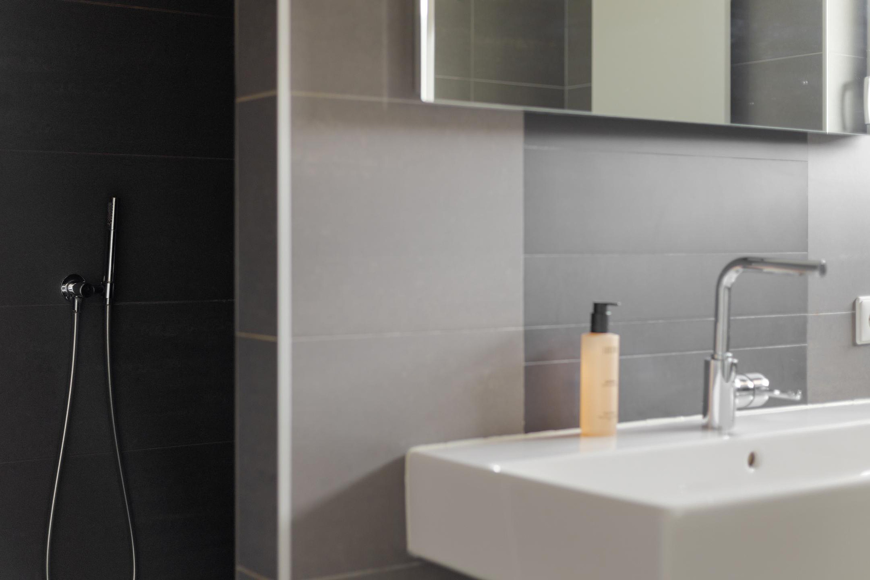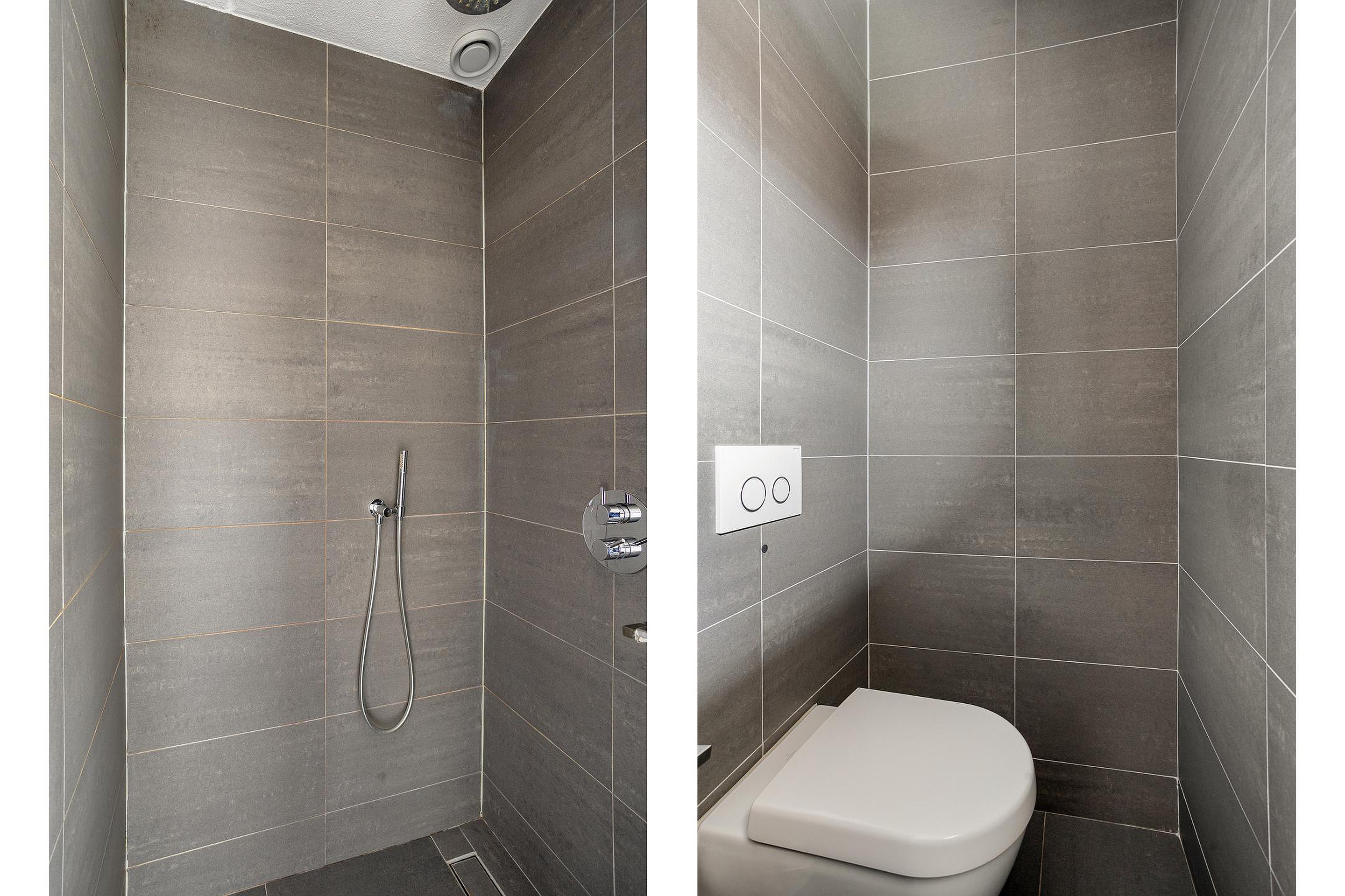 Eerste verdieping Overloop met toegang tot drie ruime slaapkamers. De twee slaapkamers aan de voorzijde zijn voorzien van bergruimte achter de knieschotten. De geheel betegelde en modern uitgevoerde badkamer beschikt over een inloopdouche, wastafel, verwarmde spiegel, toilet en een designradiator.