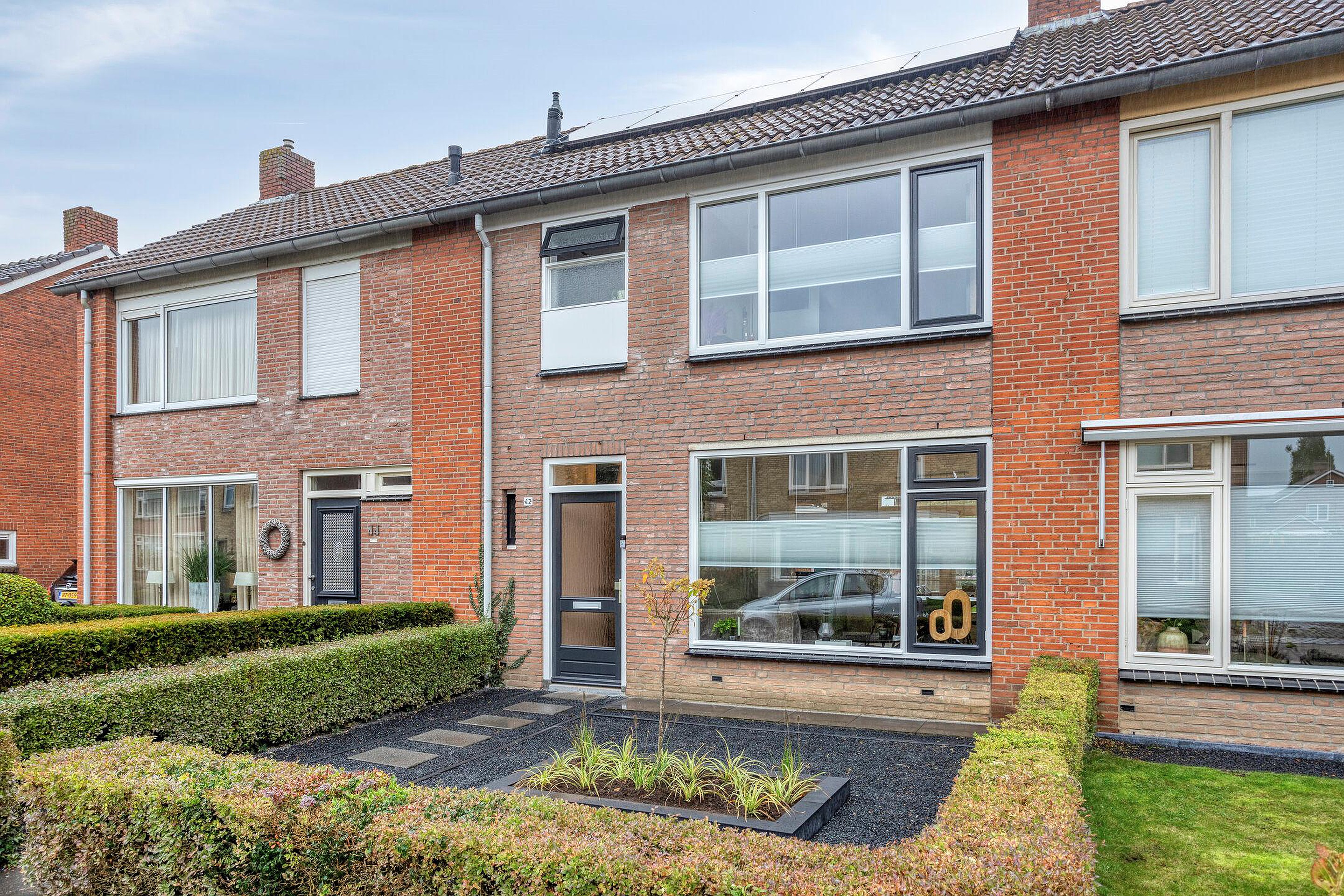 Moderne en zeer praktische tussenwoning gelegen aan de populaire Burgemeester Wijniastraat in Denekamp. De woning is recent gerenoveerd, verduurzaamd en o.a. volledig v.v. van dubbele beglazing, dak- en vloerisolatie i.c.m. vloerverwarming, 18 zonnepanelen én een lucht-water warmtepomp! Ofwel volledig gasloos, Energielabel A++ en dus een zeer lage electra rekening! Verder beschikt de woning over een gave open keuken, modern toilet, sfeervolle woonkamer en eetgedeelte. Op de verdieping bevindt zich een airco, drie slaapkamers en een badkamer. De tuin is recent aangelegd, voorzien van fraaie bestrating, handige stenen berging en biedt de mogelijkheid voor een mooie veranda aan de achterzijde!