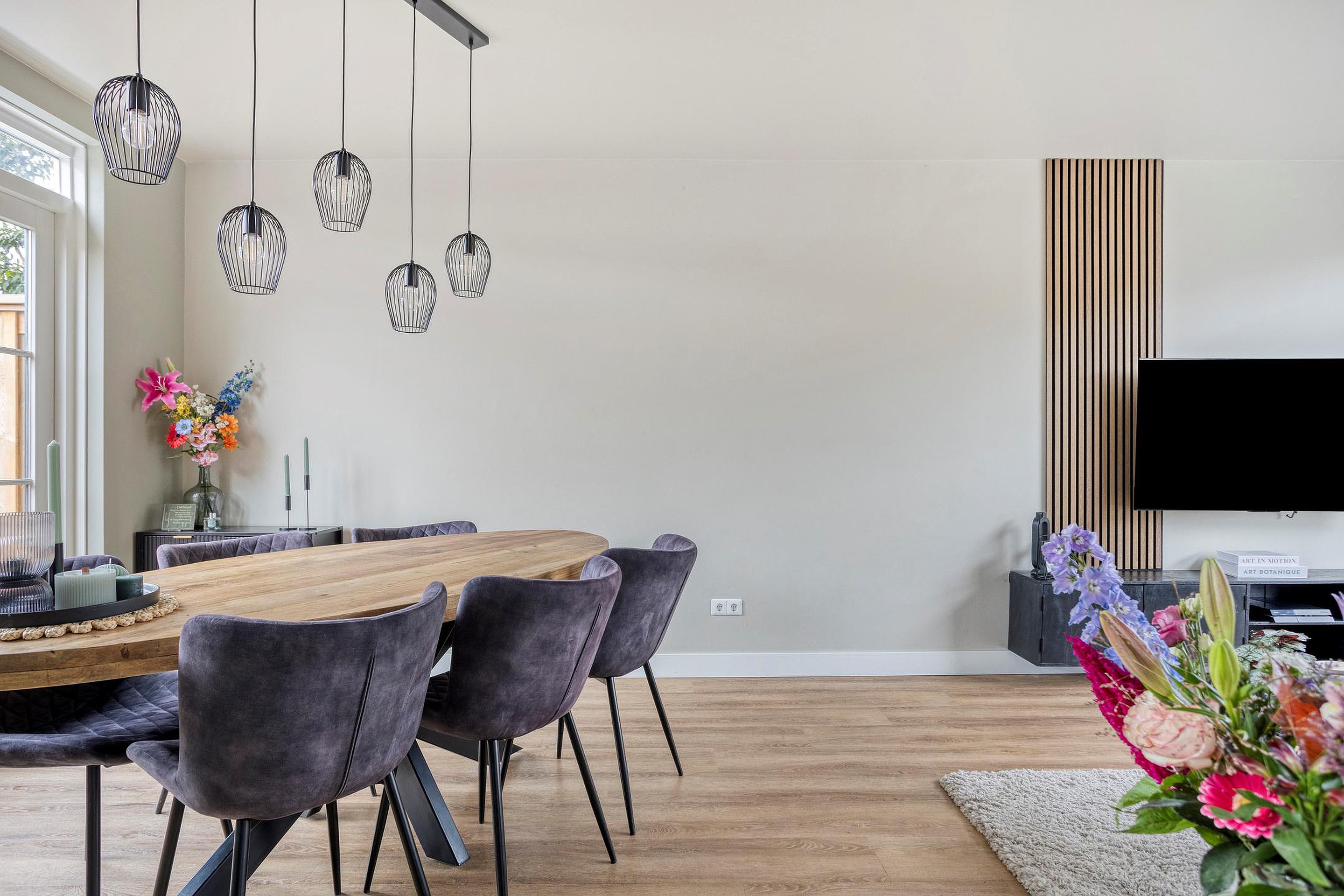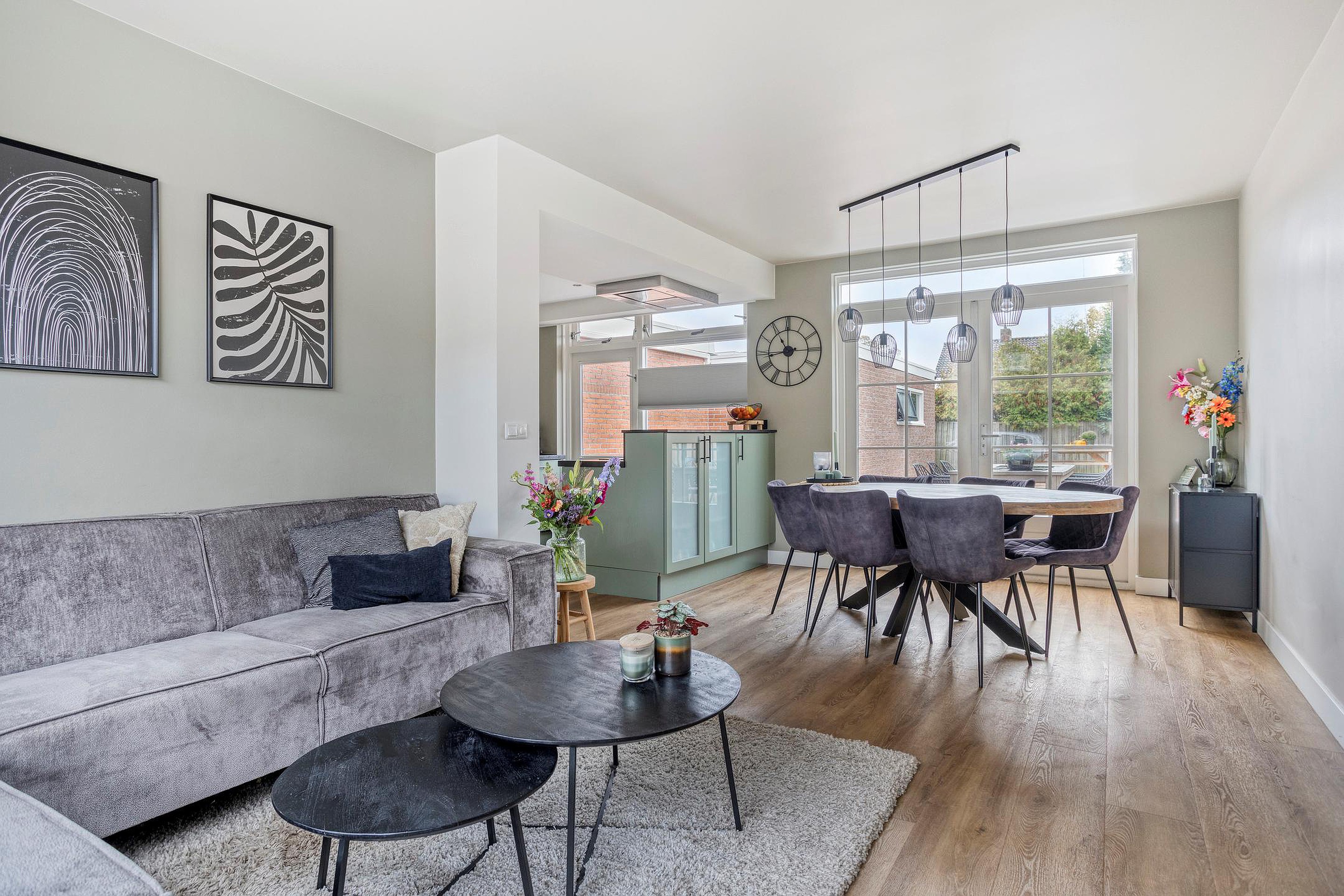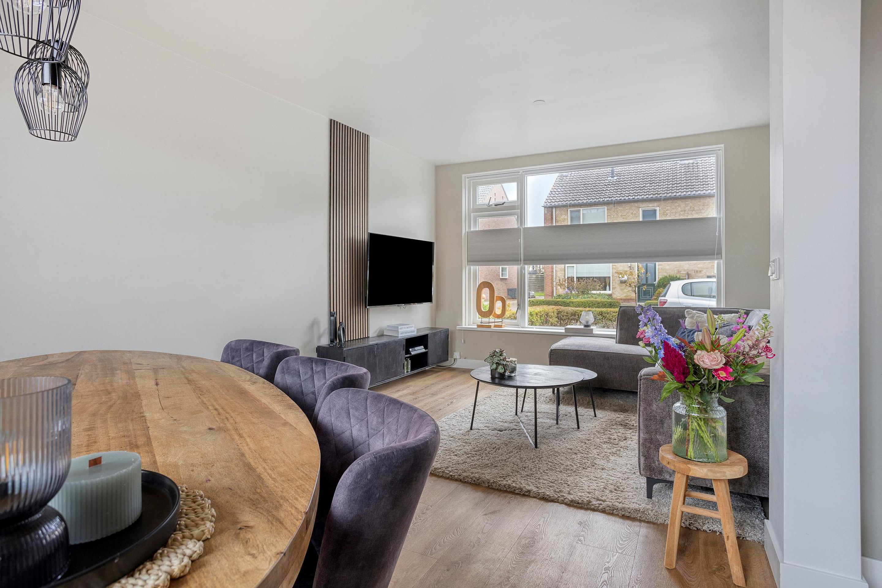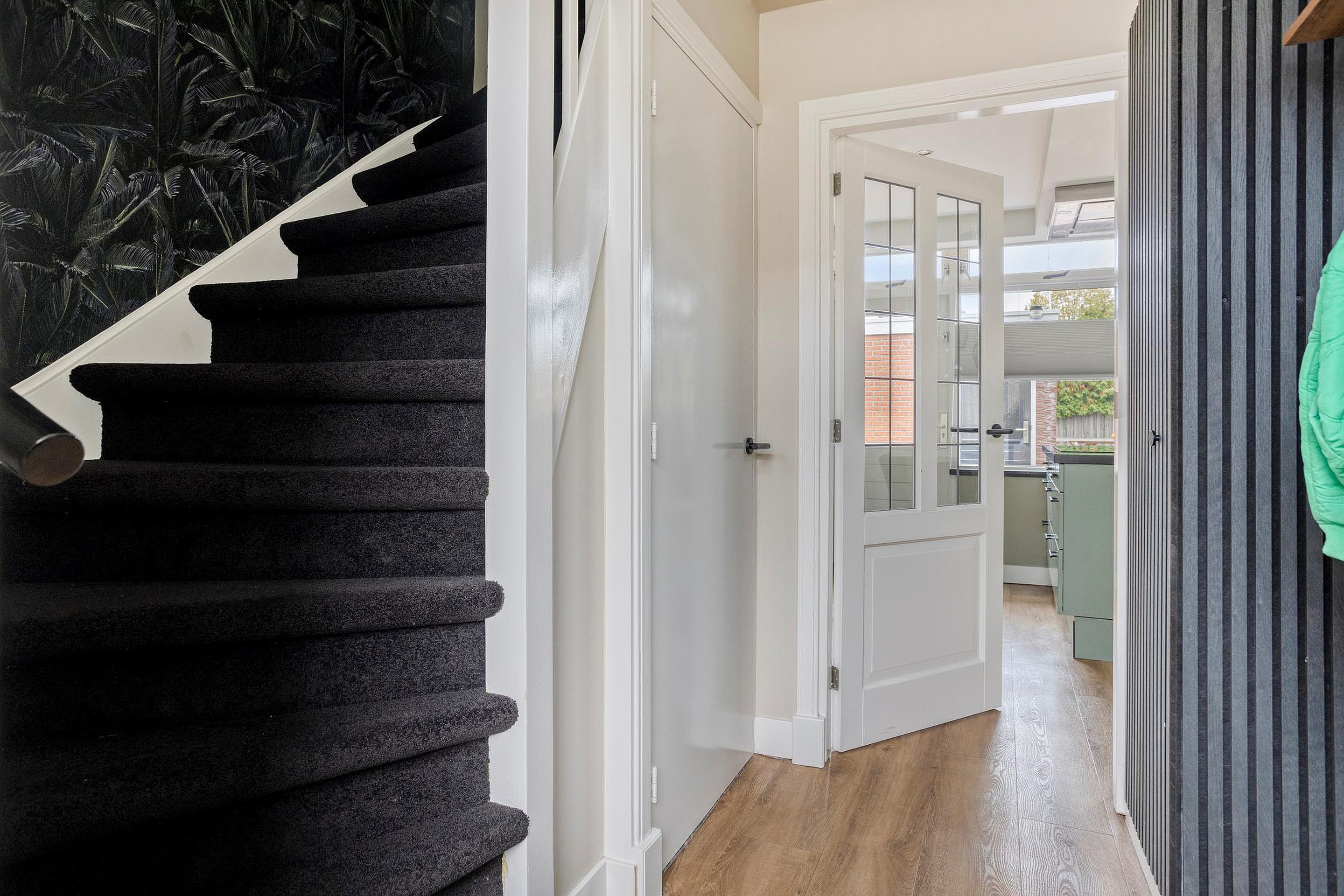 Begane grond Entree; toilet, de meterkast en de vaste trap naar boven. Vanuit hier stap je de keuken in, een lichte en functionele ruimte met uitzicht op de tuin. De keuken vormt het hart van de woning en biedt toegang tot de sfeervolle woon- en eetkamer. De woonkamer is ruim en prettig ingedeeld, met genoeg plek voor een gezellige zithoek en eettafel. Zowel de keuken als ook de woonkamer beschikken over vloerverwarming. Dankzij de grote ramen en de openslaande deuren naar de tuin is er volop daglicht en voelt de ruimte extra open en verbonden met buiten. Op warme dagen zet je de deuren open en wordt de tuin een verlengstuk van je woonkamer.