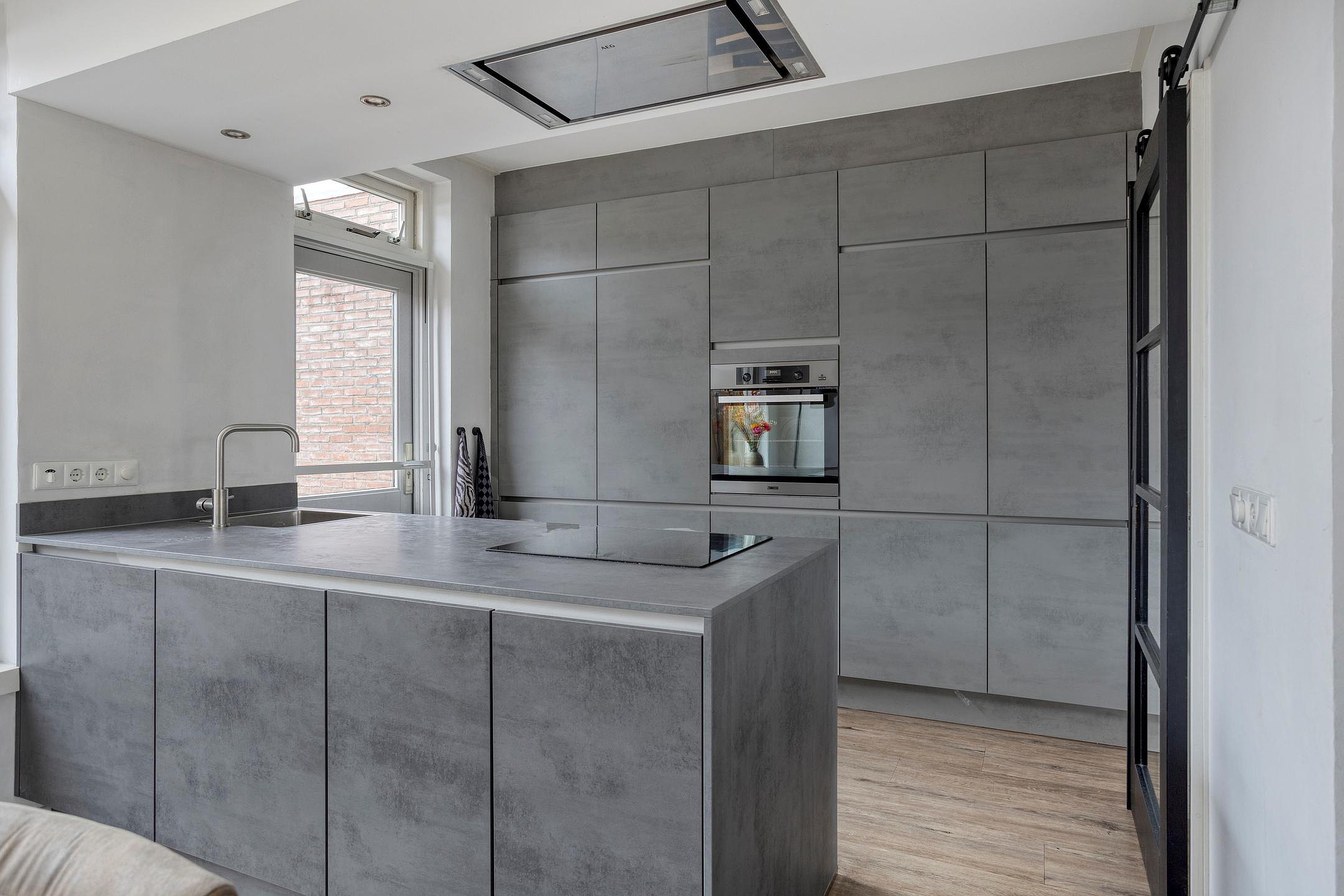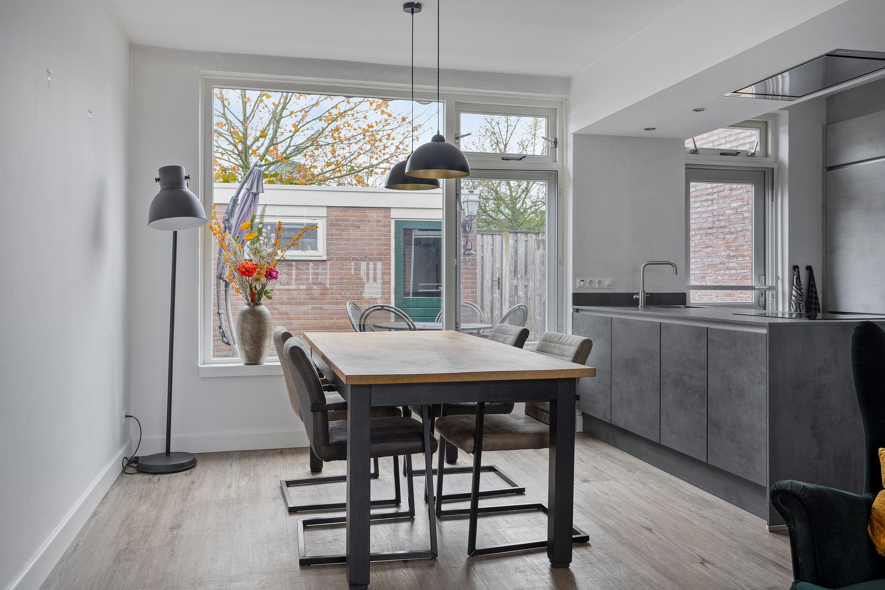 Entree; toilet; meterkast; de vaste trap naar de eerste verdieping. Vanuit de hal loop je door naar de prachtige, luxueuze keuken. Deze keuken is hoogwaardig afgewerkt, voorzien van alle gemakken en uitgerust met modern inbouwapparatuur, waaronder een combi-oven, een inductiekookplaat, een koelkast en een vaatwasser. De keuken staat in open verbinding met de ruime eetkamer en lichte woonkamer, tevens biedt deze rechtstreeks toegang tot de achtertuin.