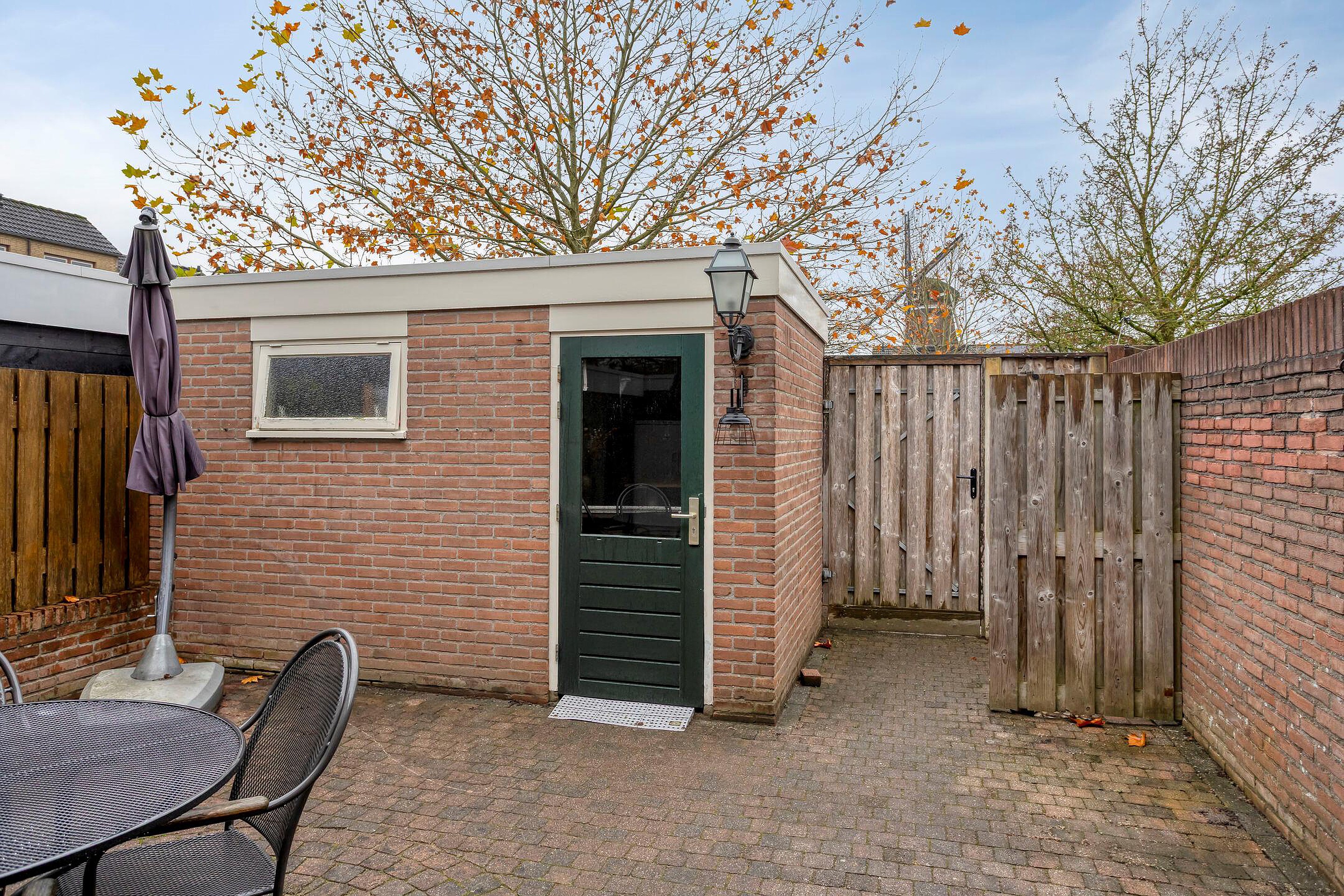 De achtertuin is keurig betegeld en daardoor zeer onderhoudsvriendelijk. In de tuin staat een vrijstaand stenen bijgebouw, ideaal te gebruiken als extra berging. Daarnaast beschikt de tuin over een praktische achterom, waardoor je gemakkelijk met de fiets of tuinspullen achterlangs kunt komen.