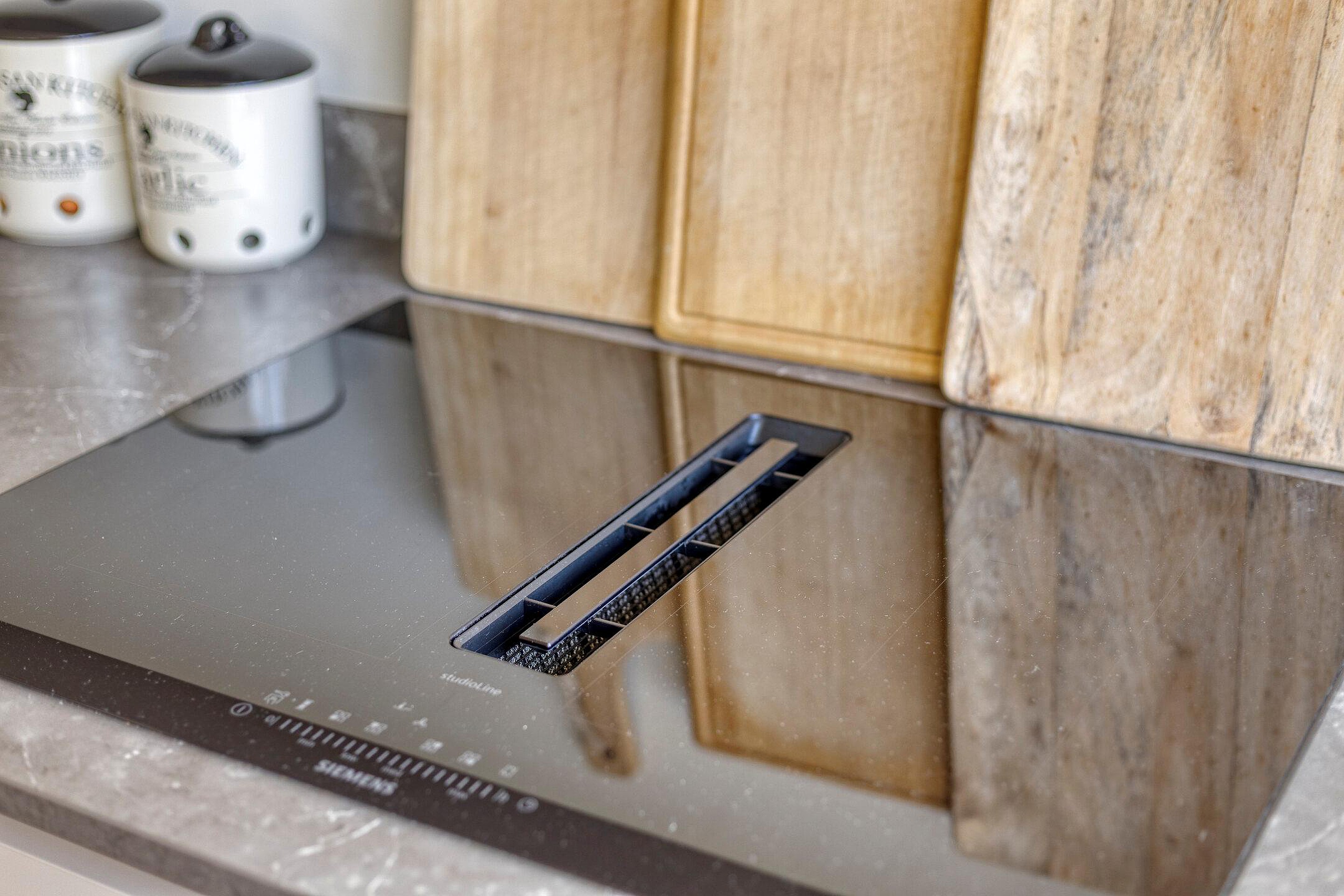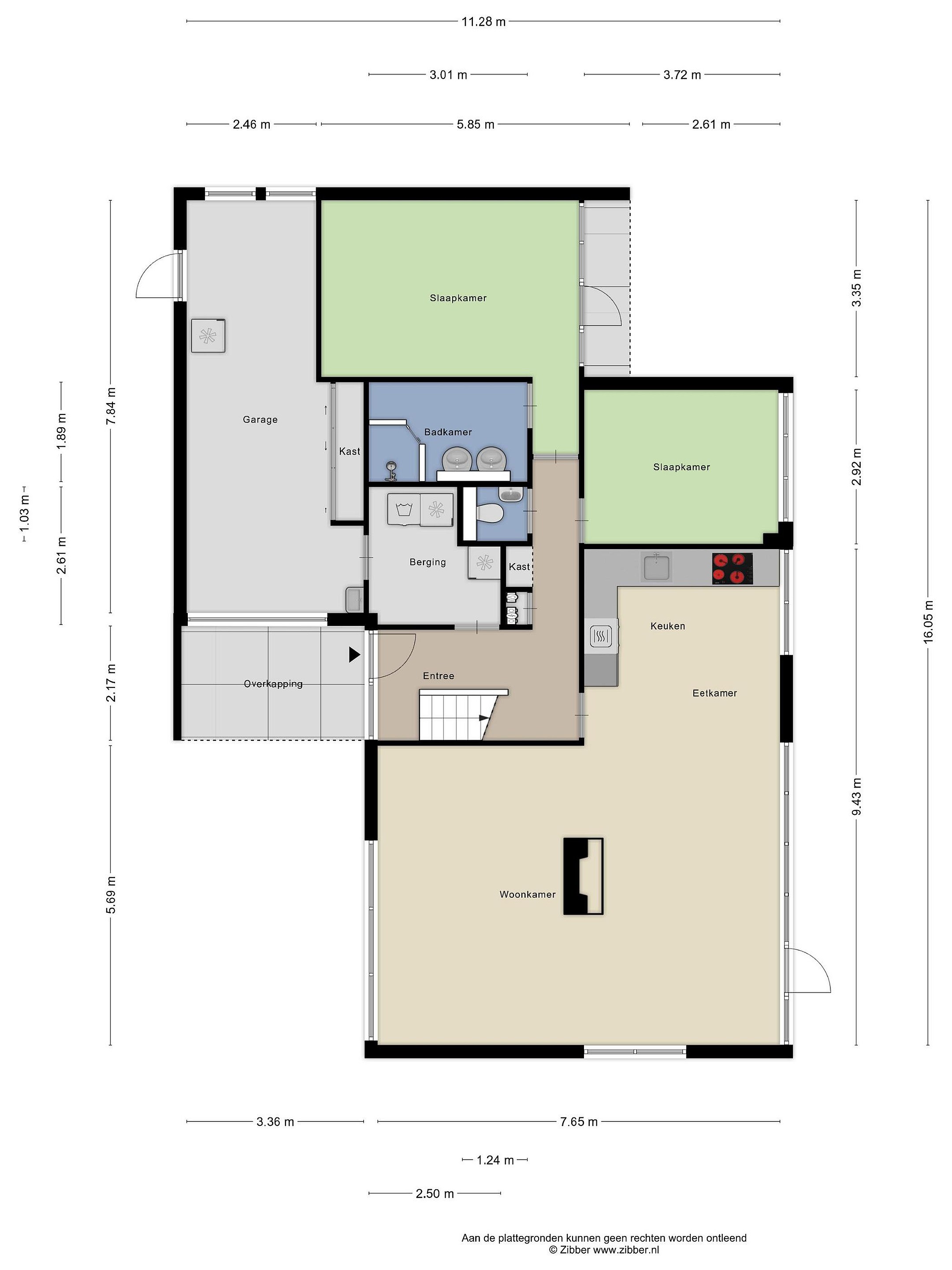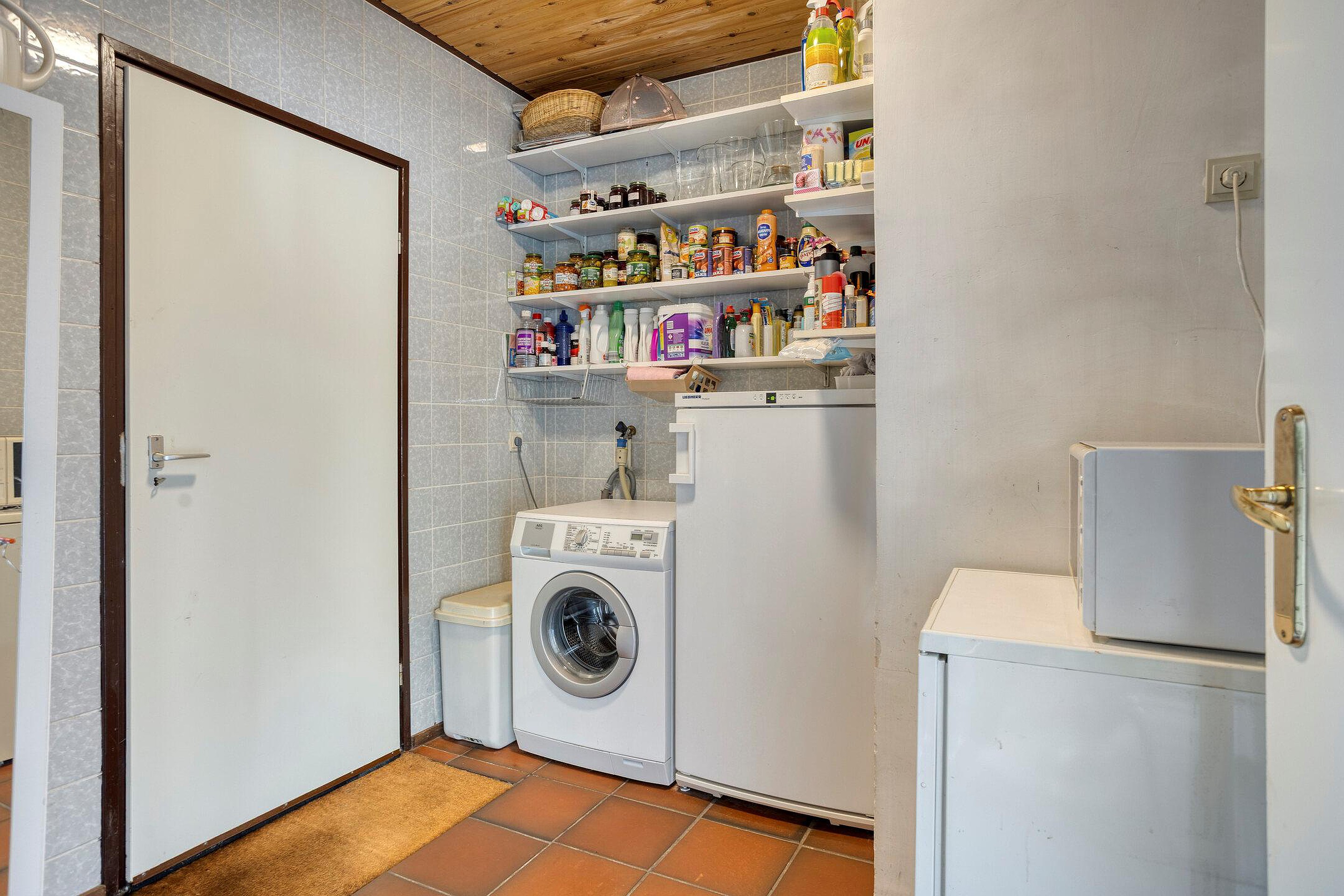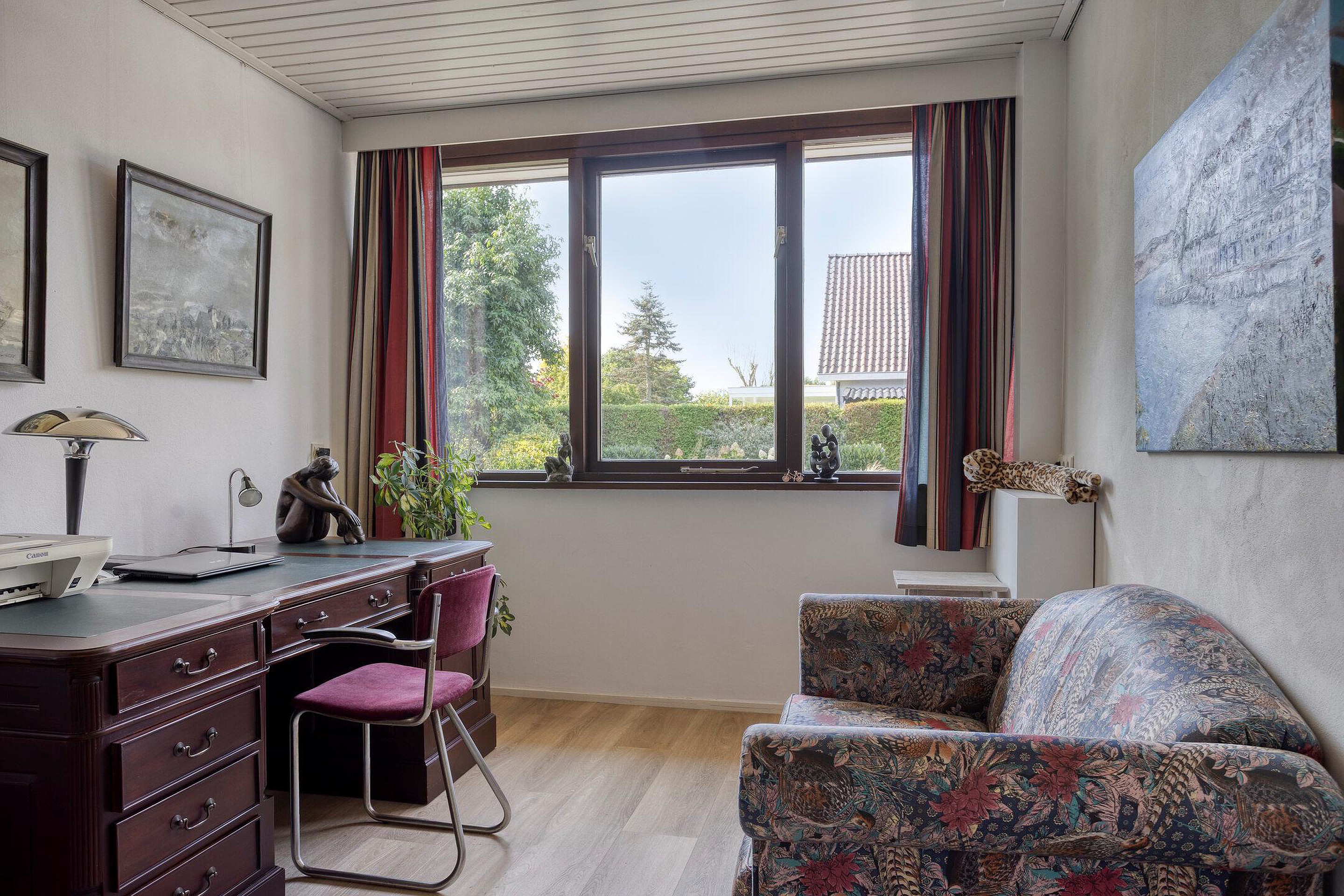 Entree welke toegang biedt tot alle vertrekken op de begane grond én de eerste verdieping. De royale woonkamer is aan de voorzijde van de woning gelegen en beschikt over een subtiel scheidingsmuurtje waar de gashaard in verwerkt zit. Het eetgedeelte én de keuken zijn rechtsreeks bereikbaar en beschikken, net als de woonkamer, over een gave PVC vloer inclusief vloerverwarming. De moderne keuken uit 2021 is v.v. inductiekookplaat met ingebouwde afzuiging, een koelkast, vaatwasser, combi-oven en een Quooker. Vanuit de entree is er toegang tot het vrijdragend toilet, de kantoorruimte en de slaapkamer met badkamer. Vanuit de royale slaapkamer is er rechtstreeks toegang tot de tuin en tot de badkamer welke beschikt over een inloopdouche, toilet en dubbele wastafel. De bijkeuken beschikt over de witgoedaansluitingen en biedt toegang tot de garage.