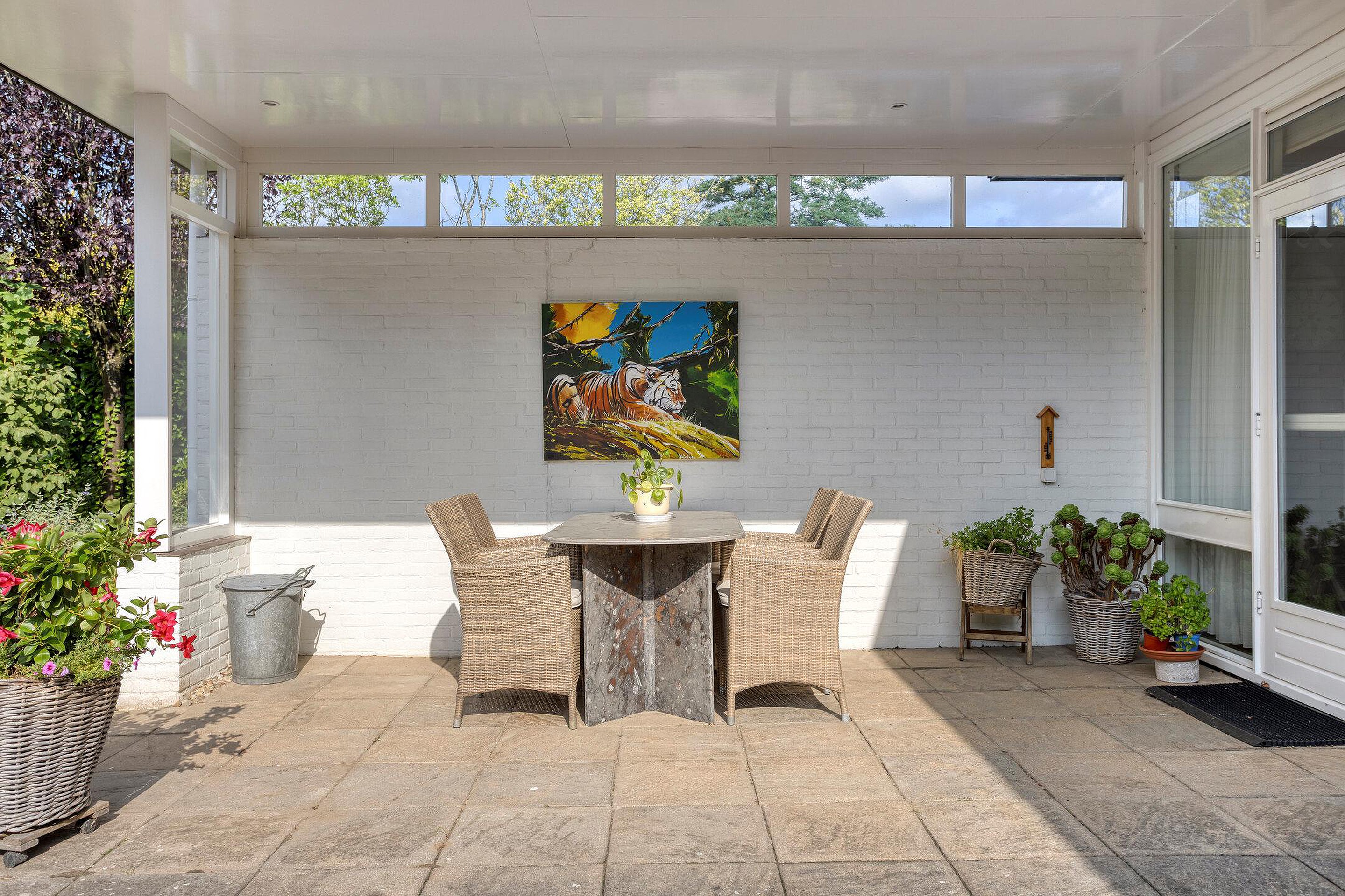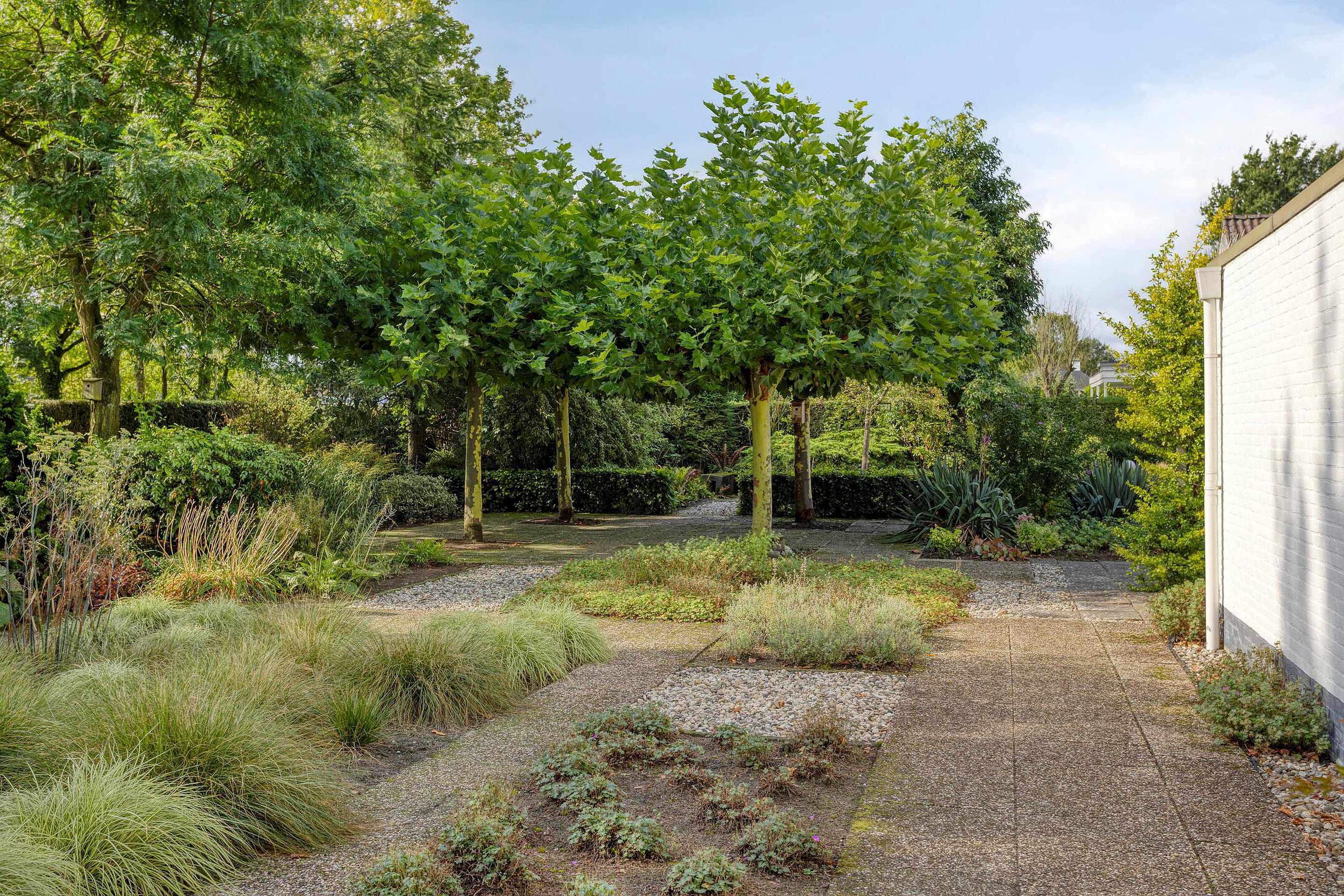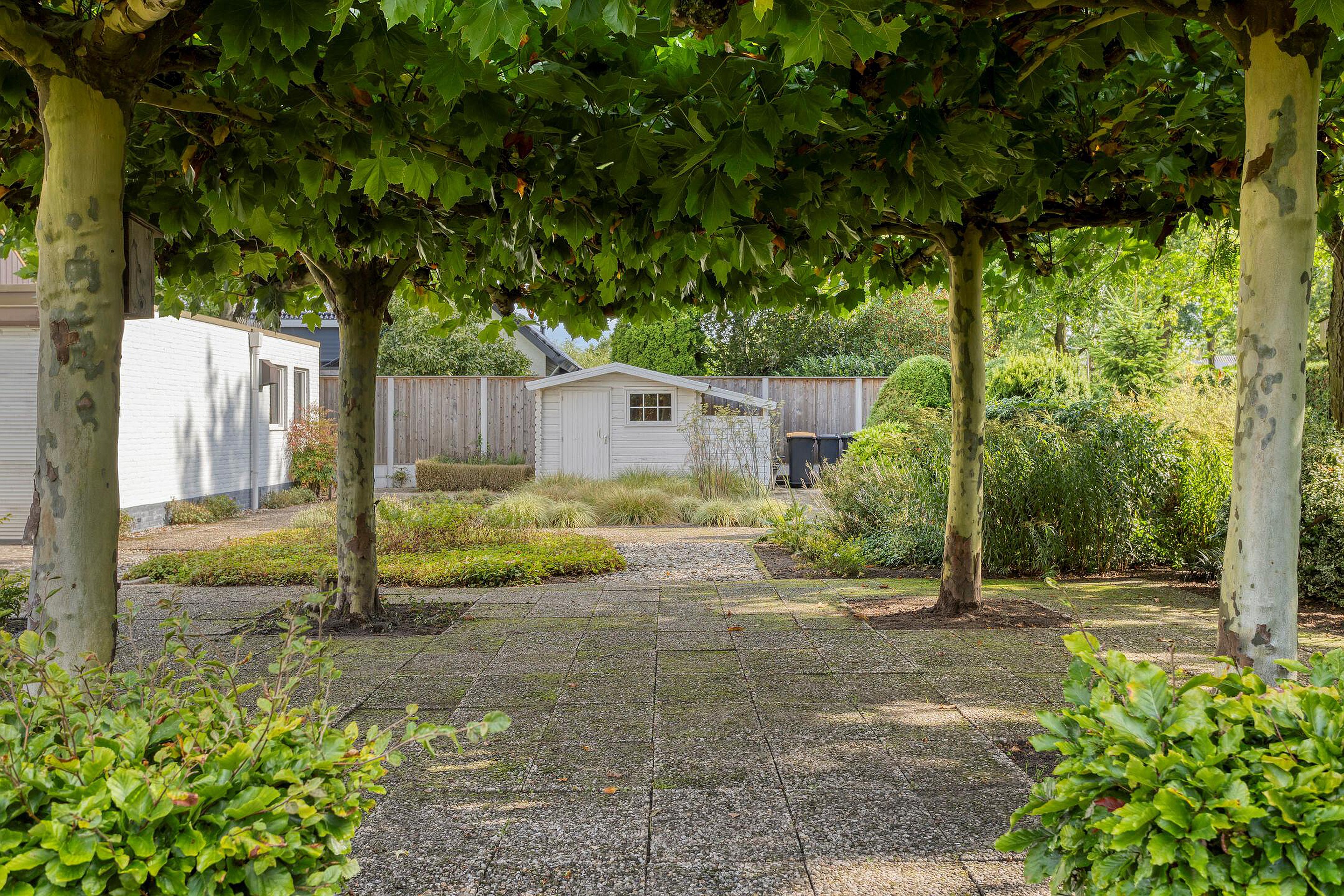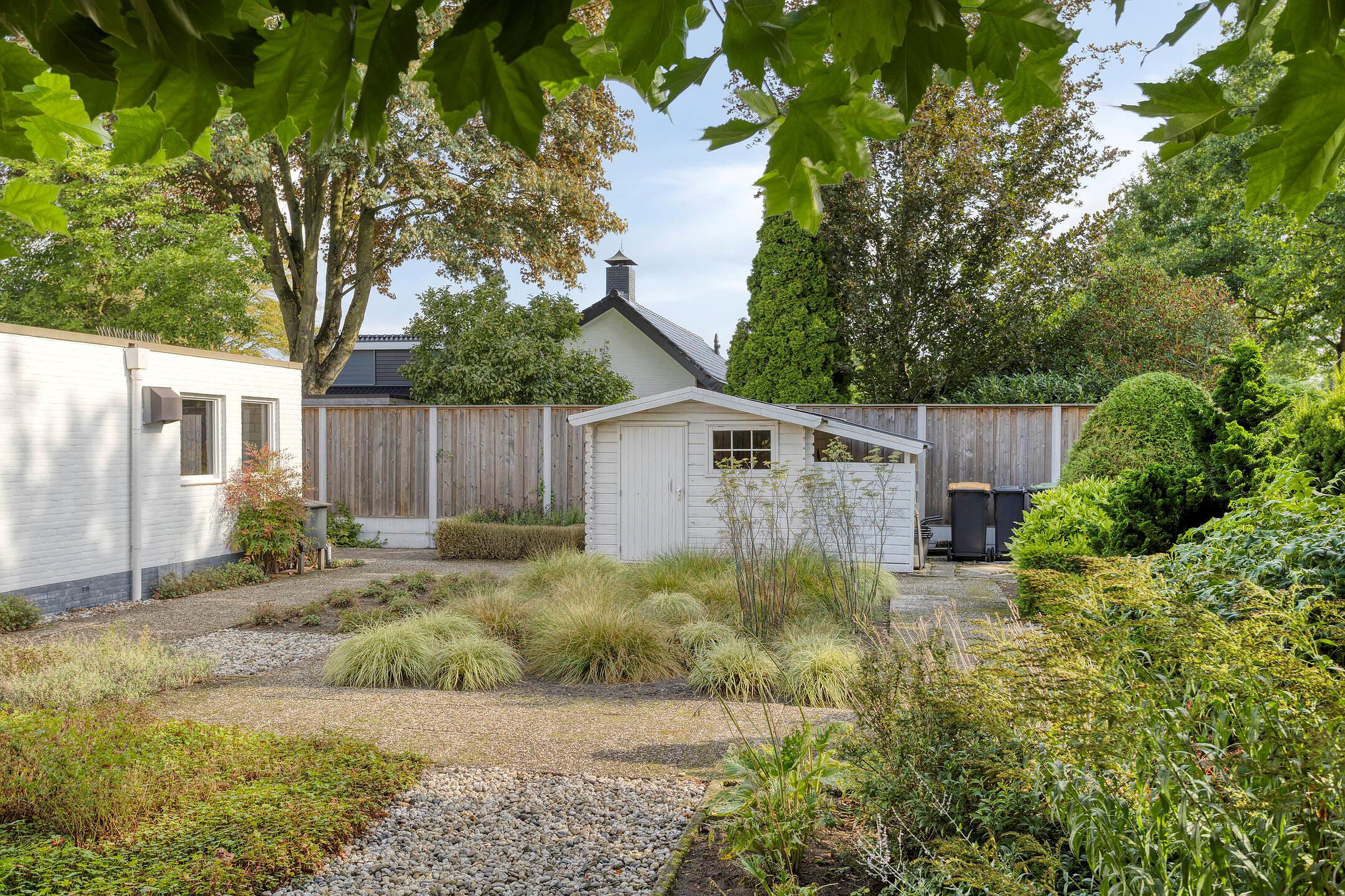 De royale en fraai aangelegde achtertuin ligt op het zuidoosten en biedt optimale privacy. Door de vele ruimte is er een veranda gecreëerd waar je lekker lang kunt genieten van het buiten zijn. Ook is er een houten schuurtje aanwezig, ideaal voor het opbergen van alle tuingereedschappen en de kliko's. Aan de linkerzijde van de woning biedt de oprit voldoende ruimte voor het parkeren van de auto's én fietsen.