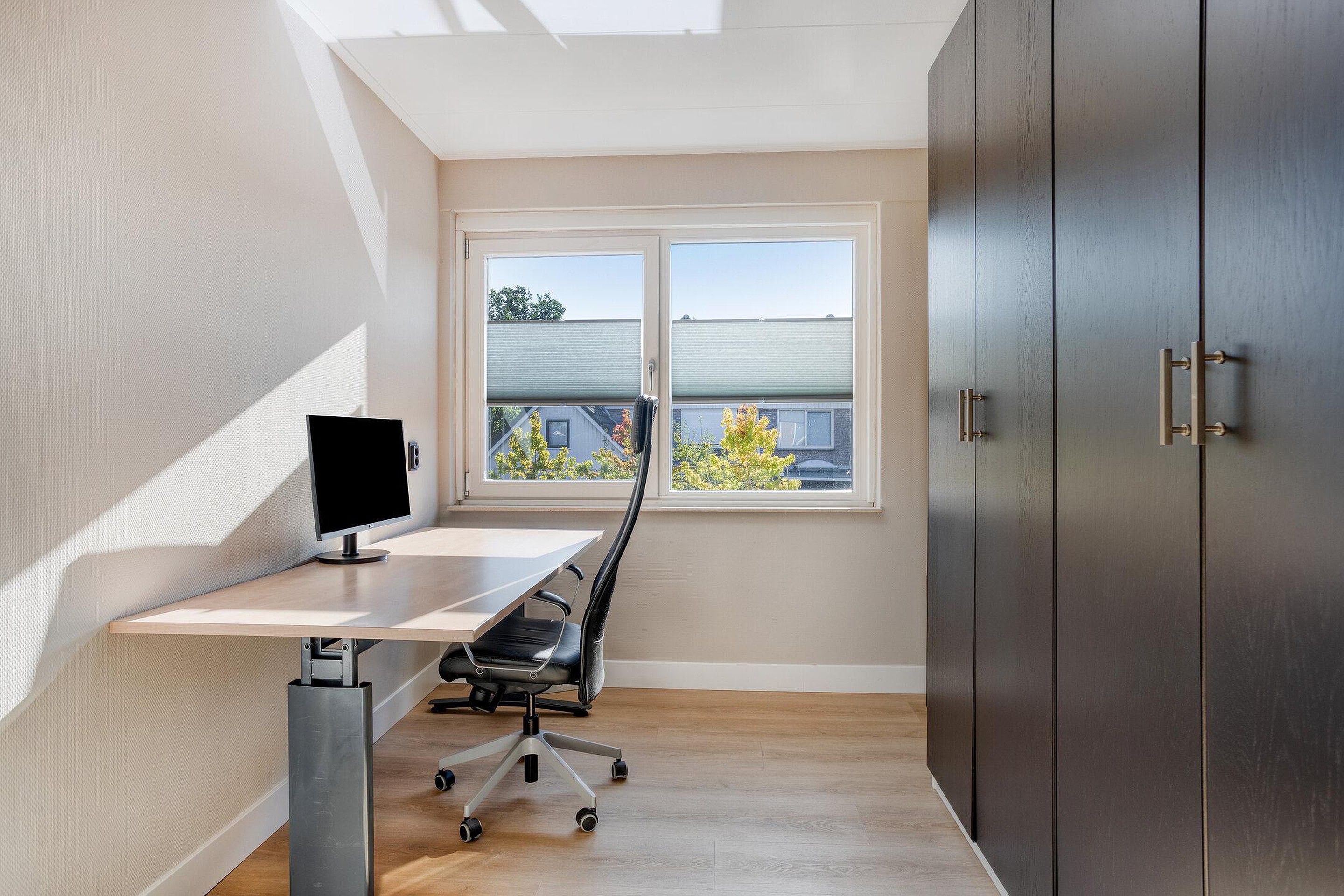 Middels de vaste trap kom je direct op de overloop terecht welke is v.v. de witgoedaansluitingen en extra opbergruimte. Ook is er een vierde kamer aanwezig, ideaal als extra slaap- of werkkamer.