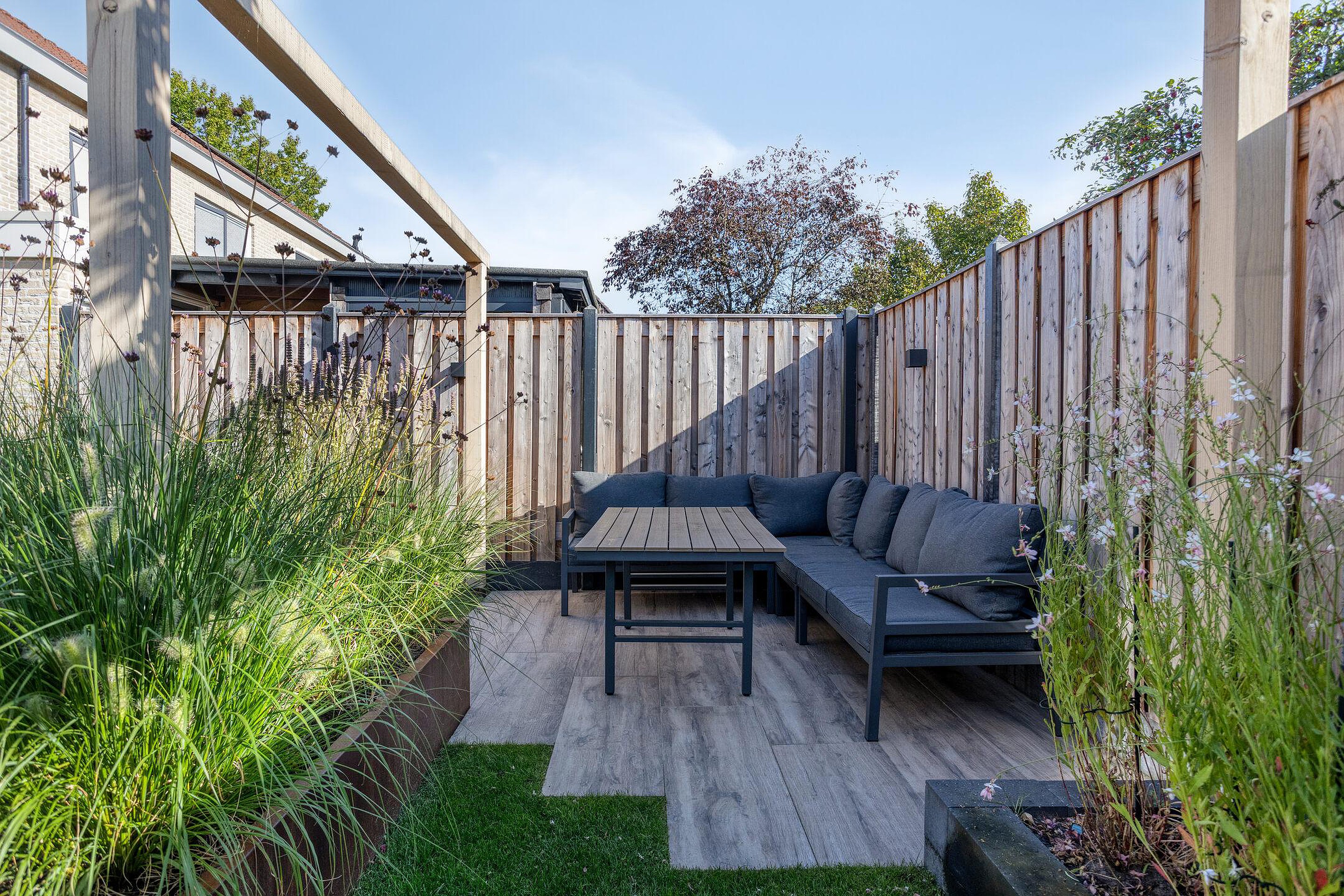 - Fraai aangelegde achtertuin met o.a. een sproei-installatie!