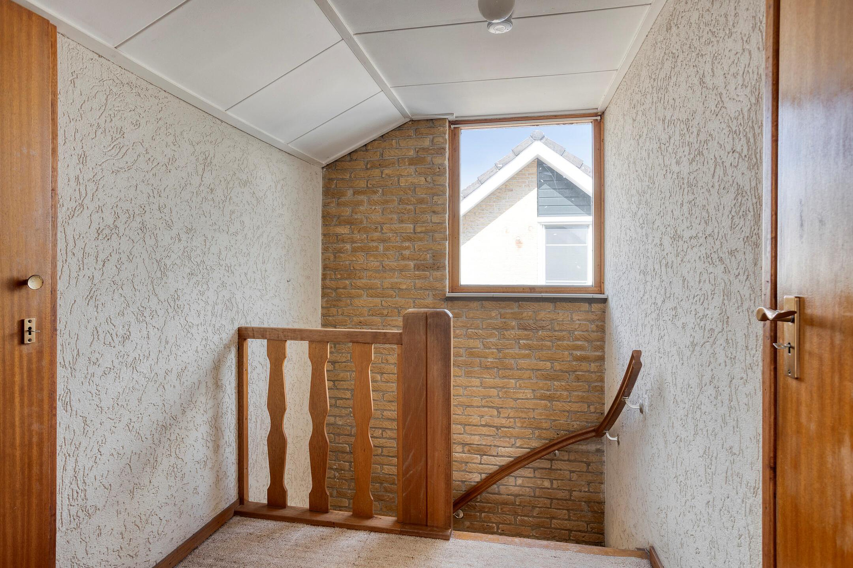 Overloop; de ruime verdieping biedt toegang tot drie slaapkamers waarvan er twee zijn voorzien van vaste kasten. De badkamer is eveneens ruim van formaat en beschikt o.a. over een douche, ligbad, toilet en dubbele wastafel.
