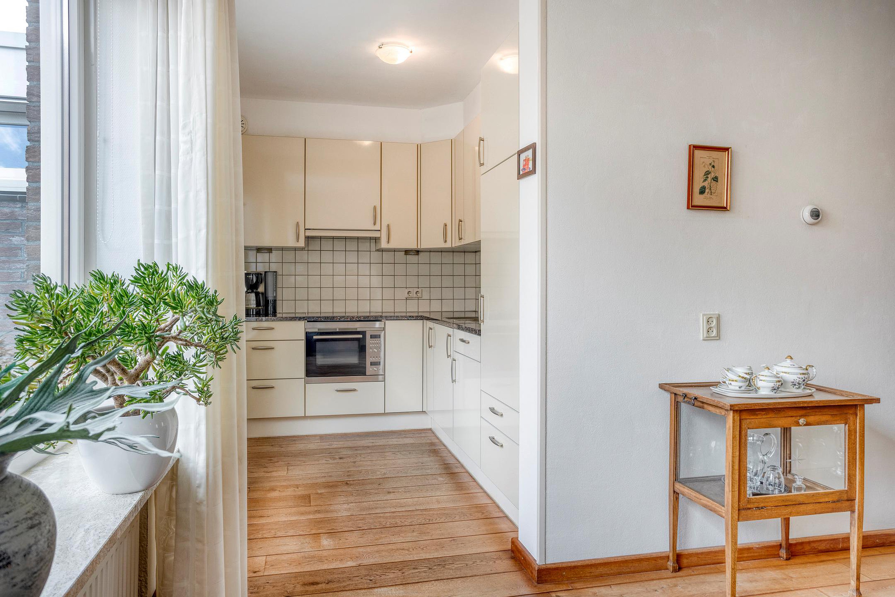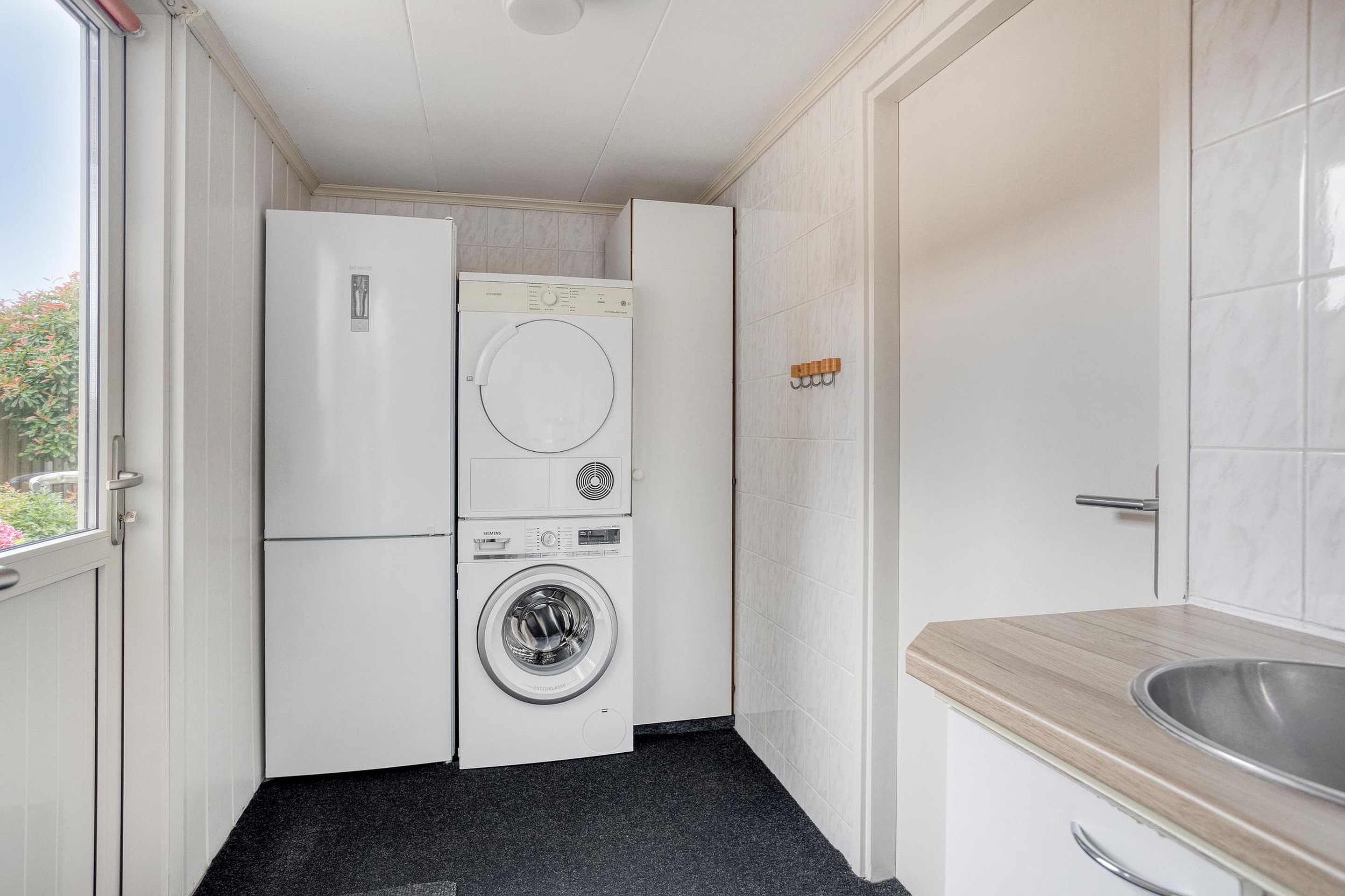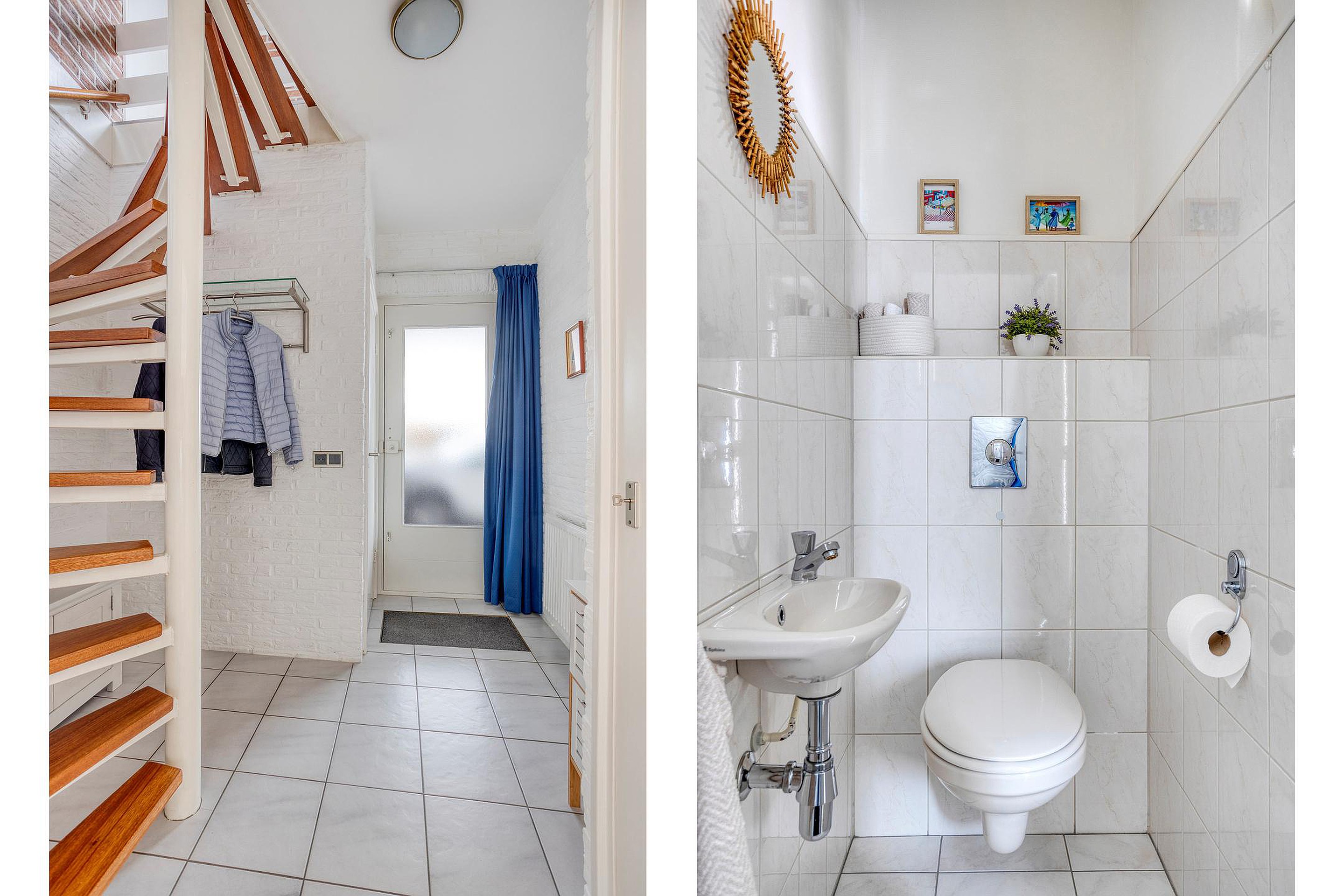 Entree/hal; trapopgang naar de eerste verdieping; vrijdragend toilet met fonteintje; meterkast. De L-vormige woonkamer is aan de voorzijde van de woning gelegen en staat nauw in verbinding met de eethoek. De half open keuken is altijd netjes onderhouden en beschikt over o.a. een combi-oven, kookplaat met afzuigkap en een koelkast. Direct vanuit de keuken is de bijkeuken toegankelijk, hier bevinden zich de witgoedaansluitingen én een extra keukenblok. De berging aan de rechterzijde is ideaal voor het klussen of voor het stallen van de fietsen.