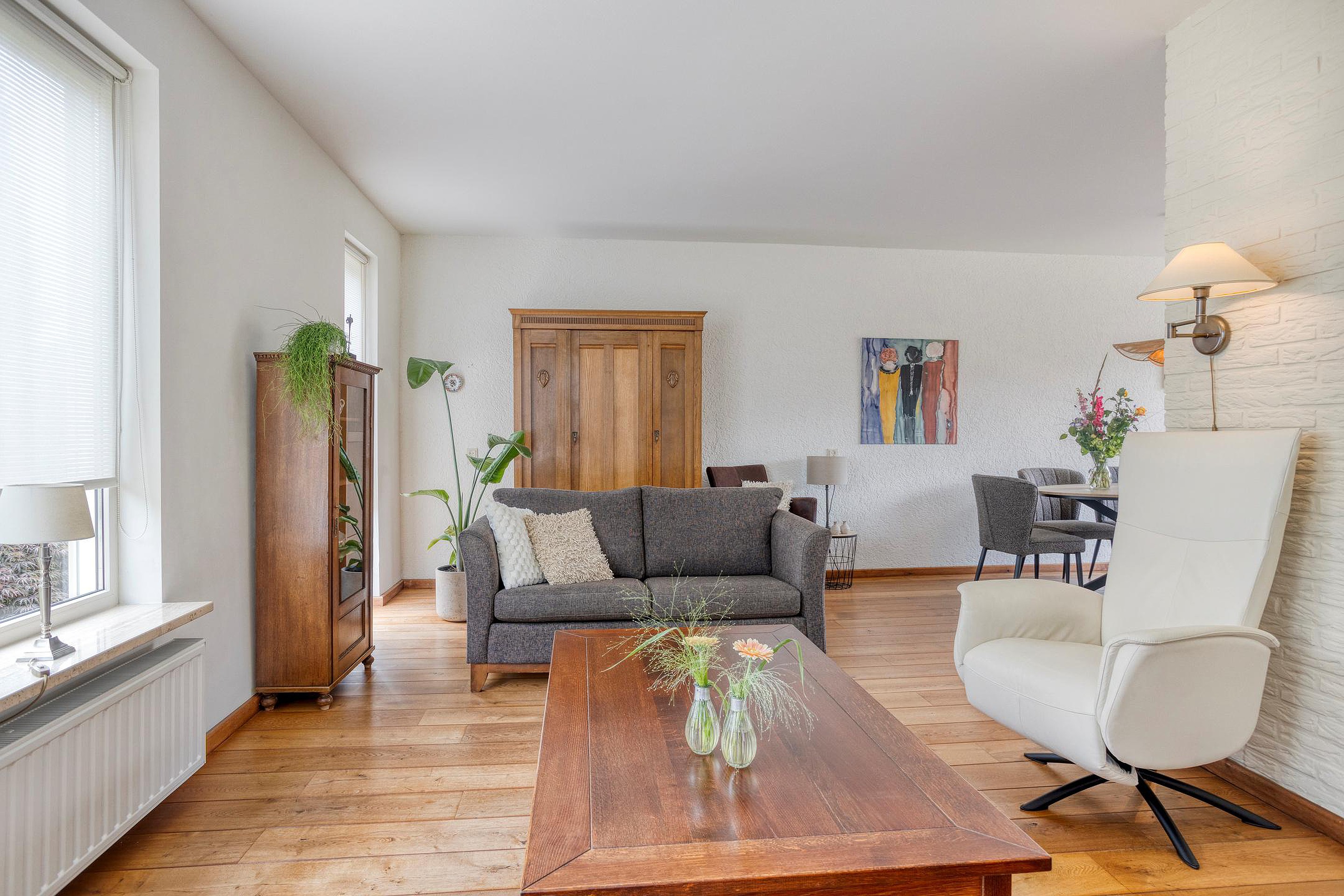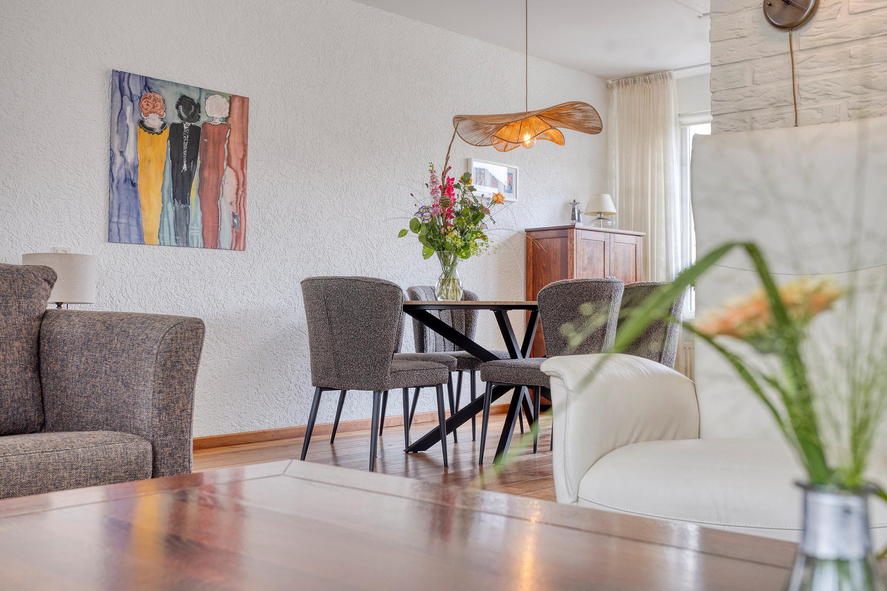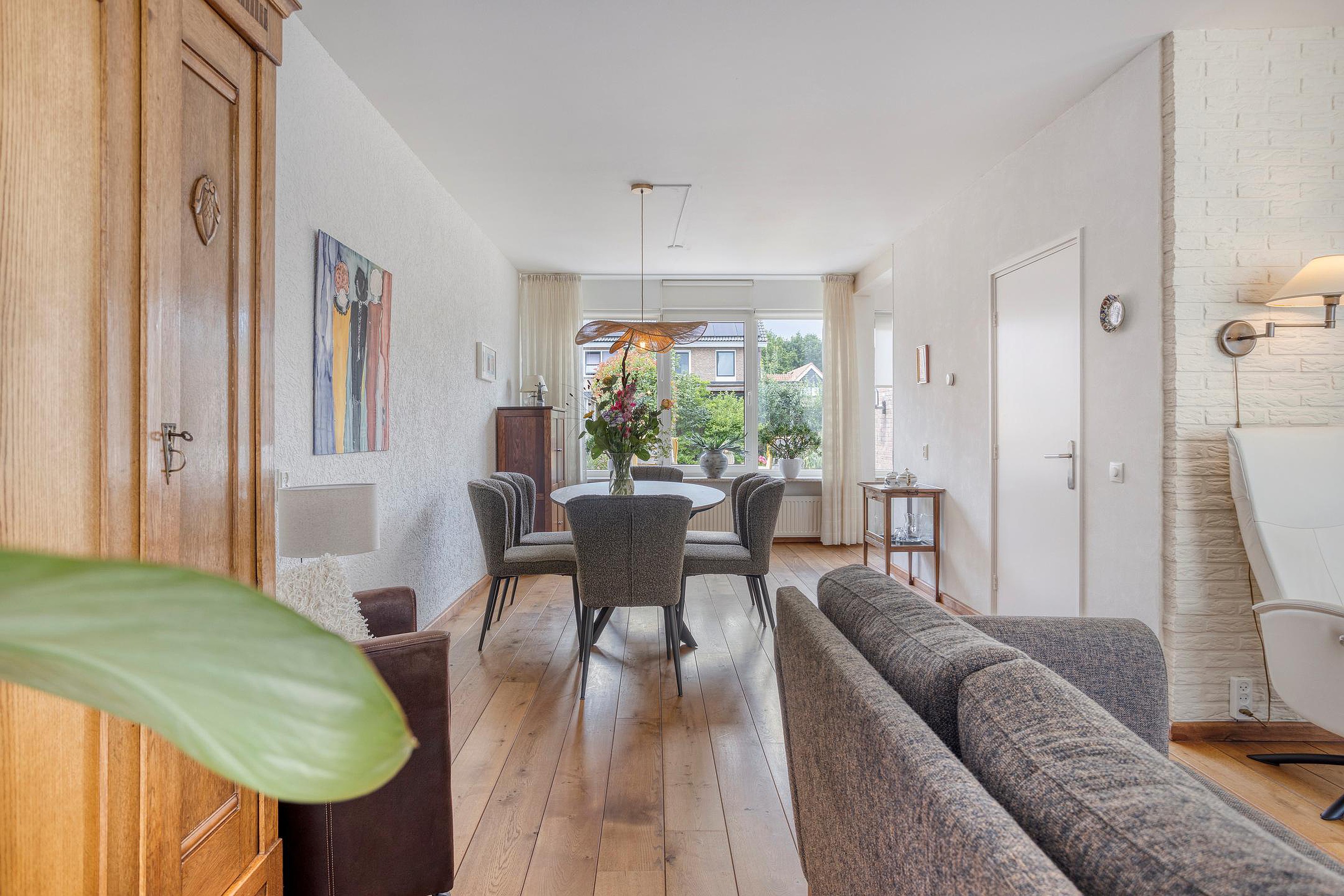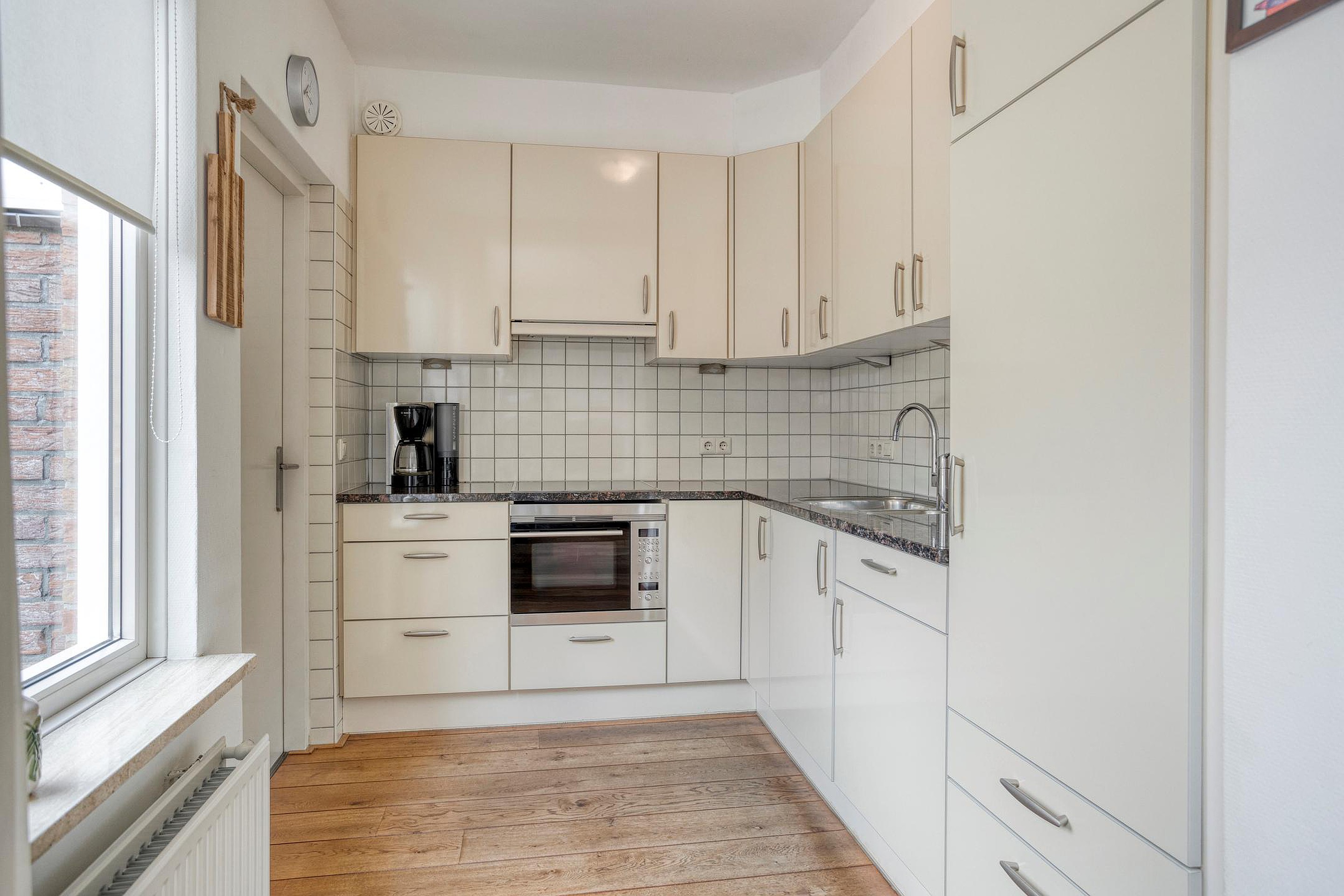 Entree/hal; trapopgang naar de eerste verdieping; vrijdragend toilet met fonteintje; meterkast. De L-vormige woonkamer is aan de voorzijde van de woning gelegen en staat nauw in verbinding met de eethoek. De half open keuken is altijd netjes onderhouden en beschikt over o.a. een combi-oven, kookplaat met afzuigkap en een koelkast. Direct vanuit de keuken is de bijkeuken toegankelijk, hier bevinden zich de witgoedaansluitingen én een extra keukenblok. De berging aan de rechterzijde is ideaal voor het klussen of voor het stallen van de fietsen.