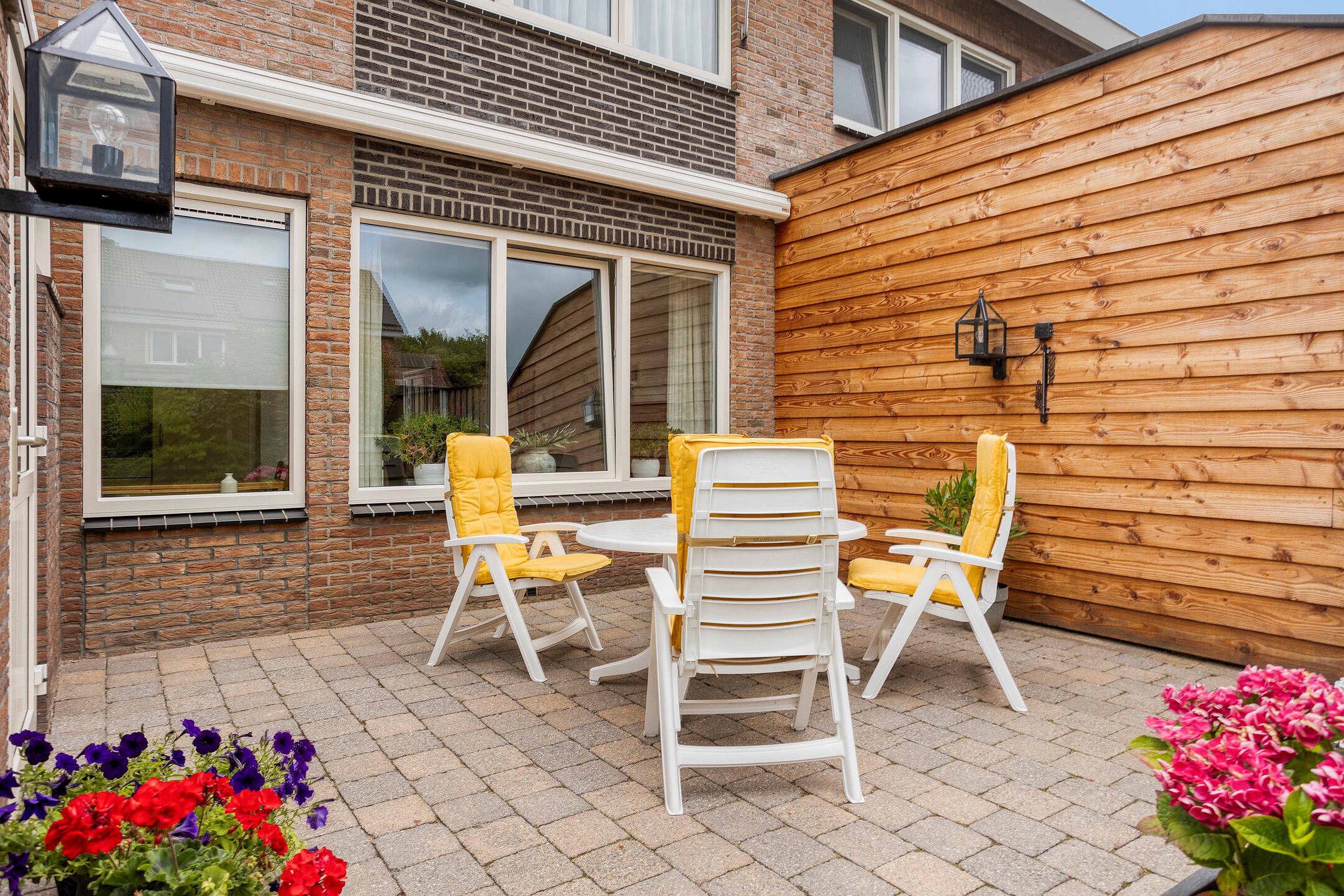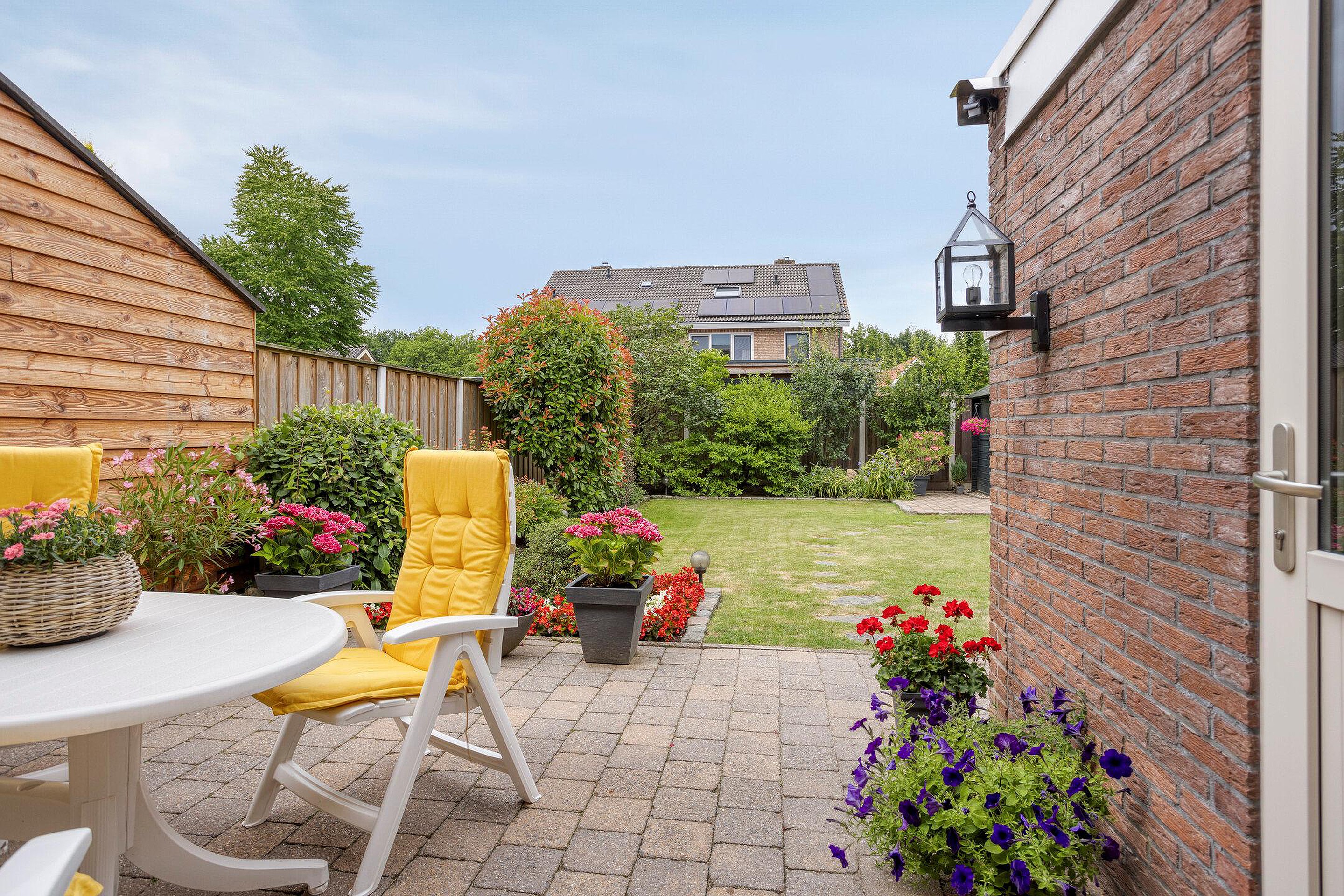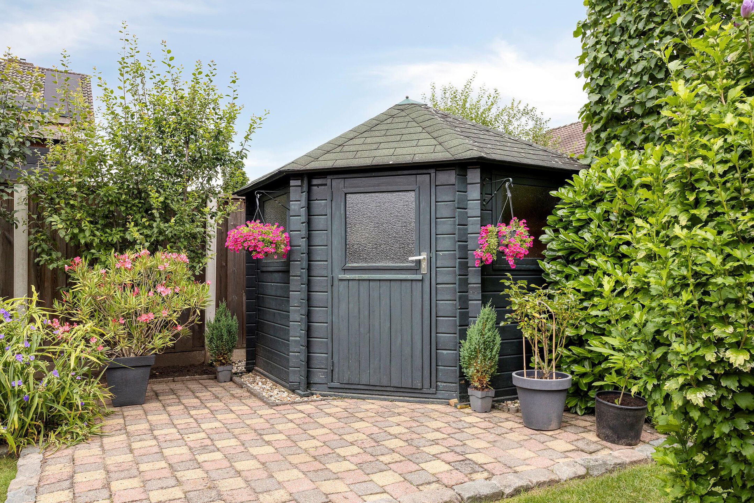 De achtertuin op het westen biedt mede door het formaat en de fraaie hoekligging volop privacy. Daarnaast beschikt de tuin over voldoende groen en een verhard terras mét buitenzonwering. Het extra brede oprit, carport, achterom als ook een handig tuinhuisje maken het geheel compleet!