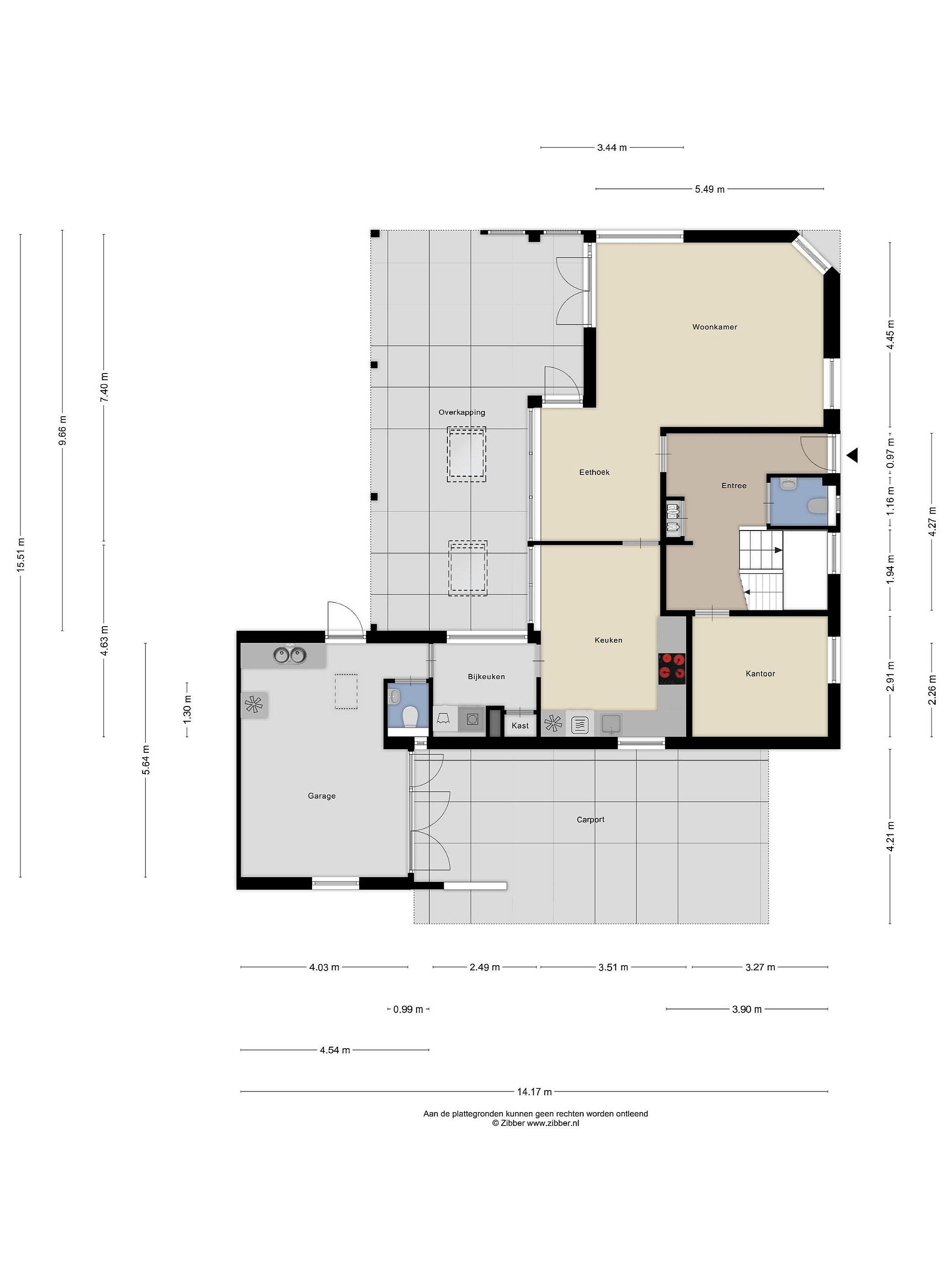 Entree; voorzien van de meterkast, het toilet en de mooie houten trap naar de eerste verdieping. Vanuit de entree is er ook toegang tot een praktisch kantoor, ideaal voor thuiswerken of studie. De eetkamer/woonkamer is het hart van het huis en is gesitueerd aan de voorzijde van de woning. Aansluitend ligt de moderne keuken met diverse Siemens inbouwapparaten, waaronder een inductiekookplaat met afzuiger, een koelkast, een vaatwasser en een combi oven/magnetron.