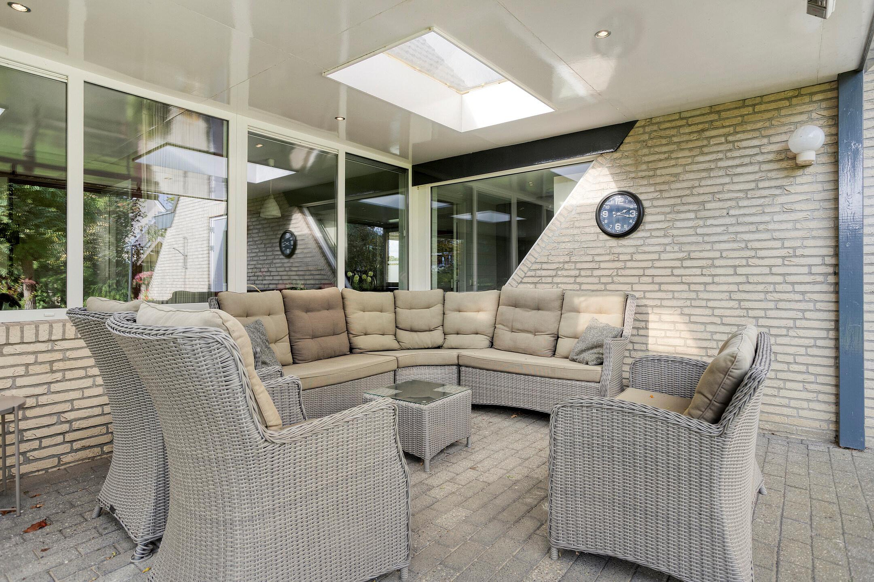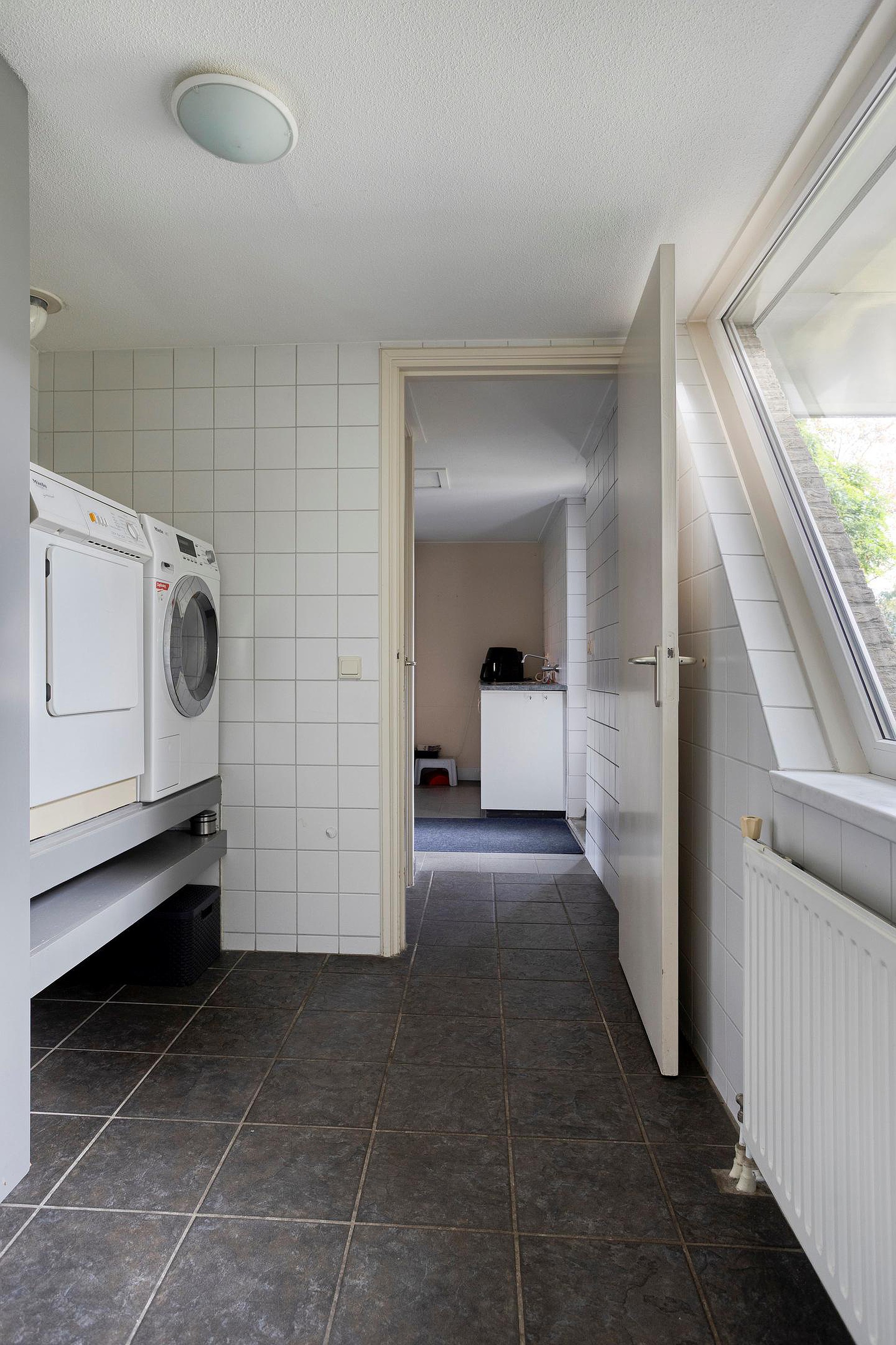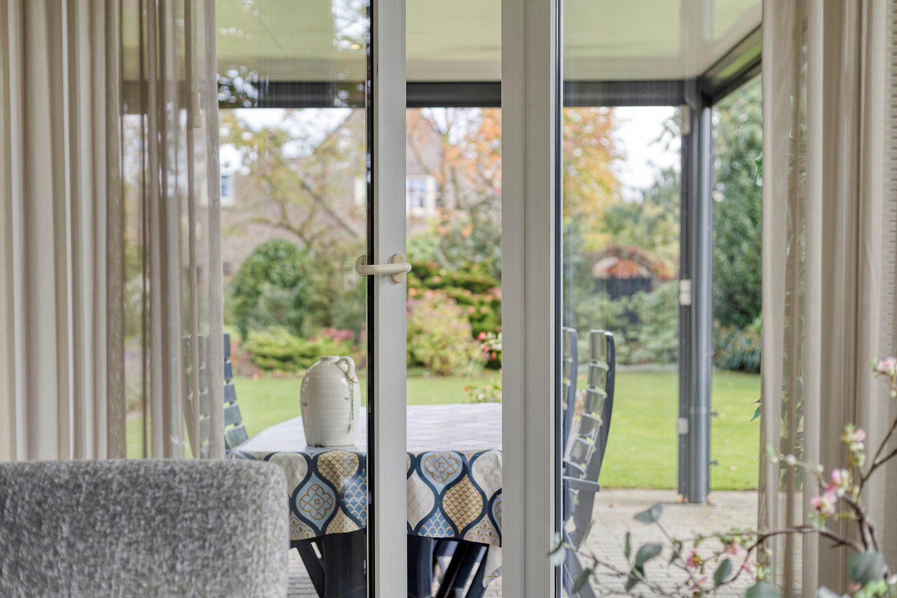 Middels de openslaande deuren in de woonkamer stap je direct de tuin in, waar een fraai overdekte overkapping met screens is gerealiseerd. De begane grond combineert zo een praktische indeling, lichte ruimtes en een directe verbinding met de tuin, waardoor het wonen hier zowel functioneel als sfeervol is.