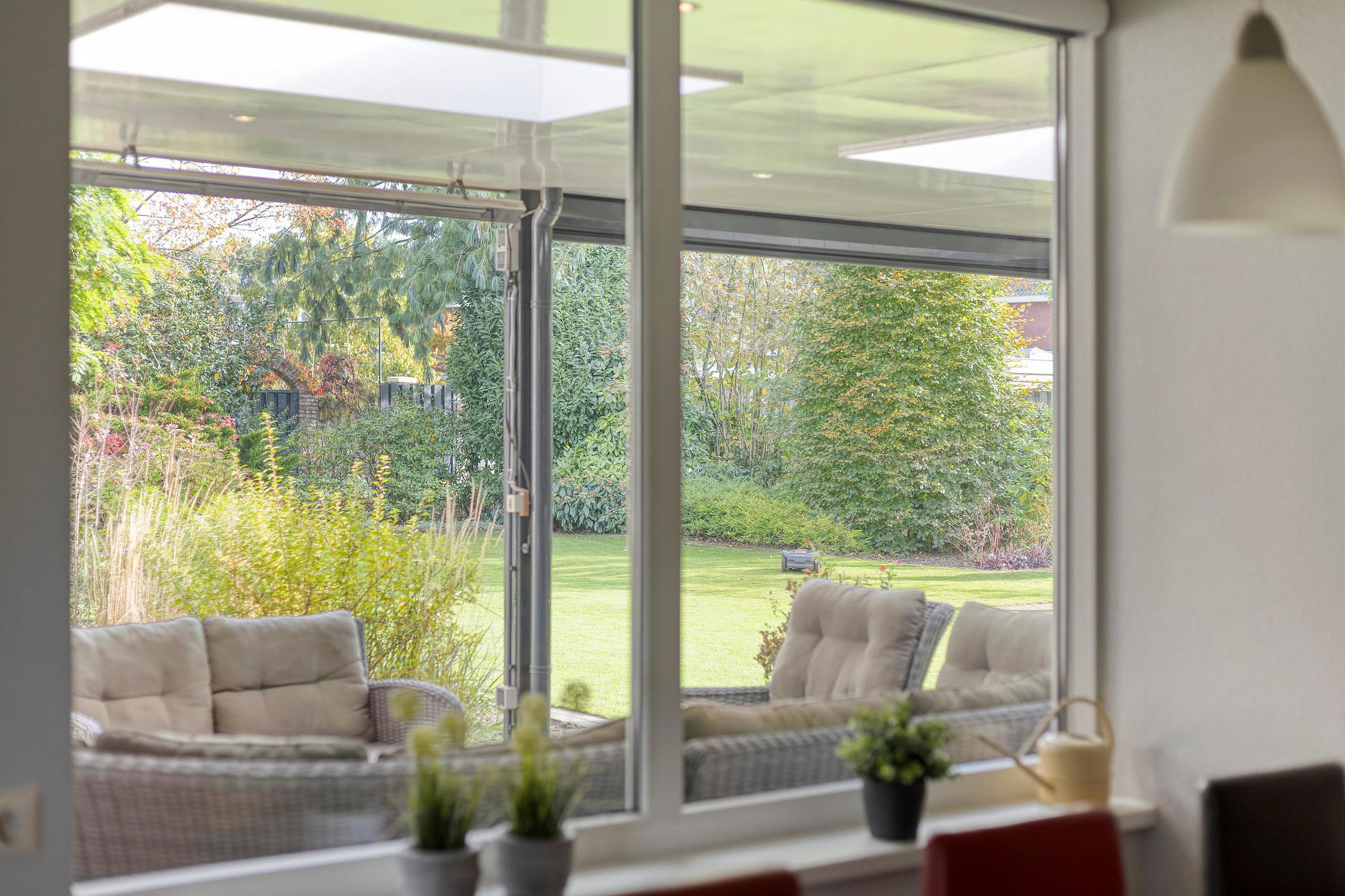 Een grote, verzorgde tuin, welke volop ruimte biedt om te ontspannen, te tuinieren of gezellige momenten met vrienden en familie door te brengen. De fraaie overdekte overkapping met screens zorgt ervoor dat je ook bij zon of wind comfortabel buiten kunt zitten en optimaal van het buitenleven kunt genieten. Tevens beschikt de tuin over een grondwater pomp en een sproeiinstallatie. Daarnaast beschikt de woning over een handige houten berging en een garage met eigen oprit.